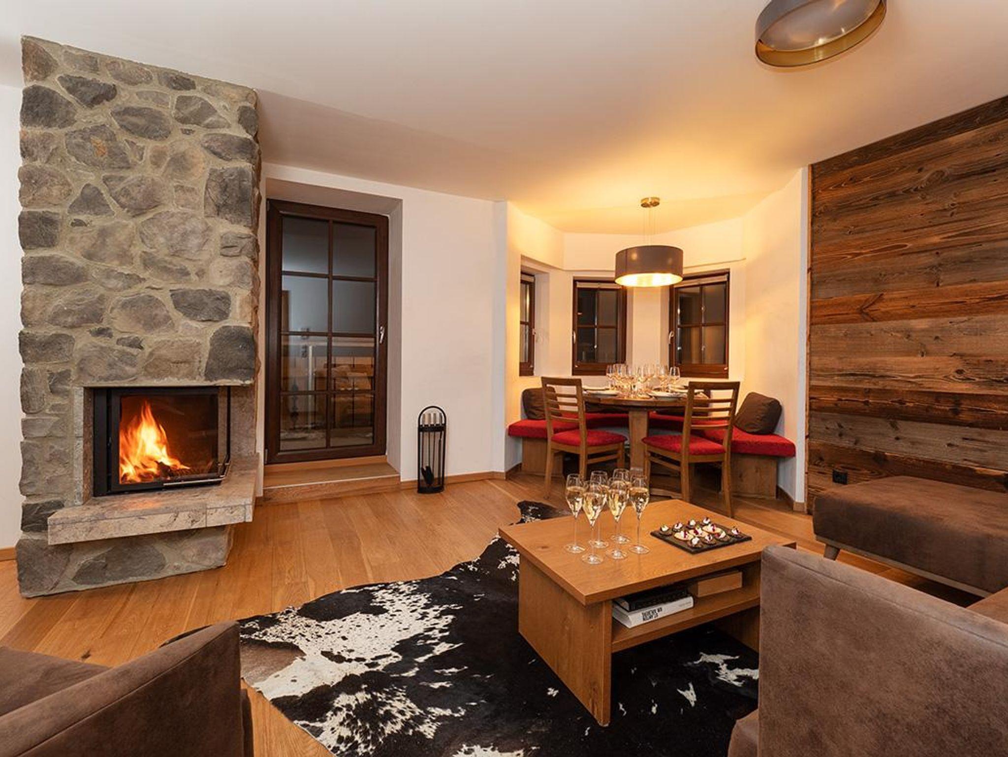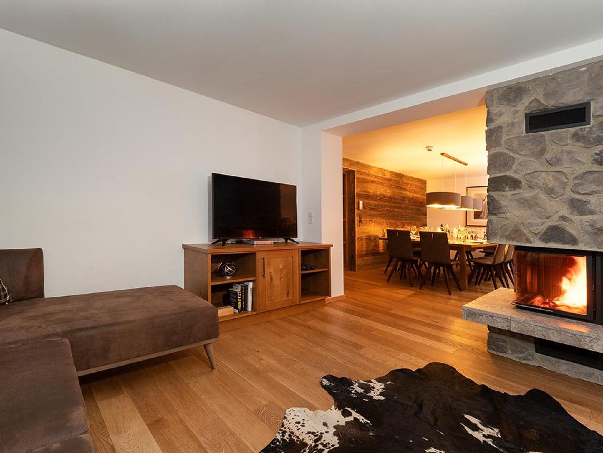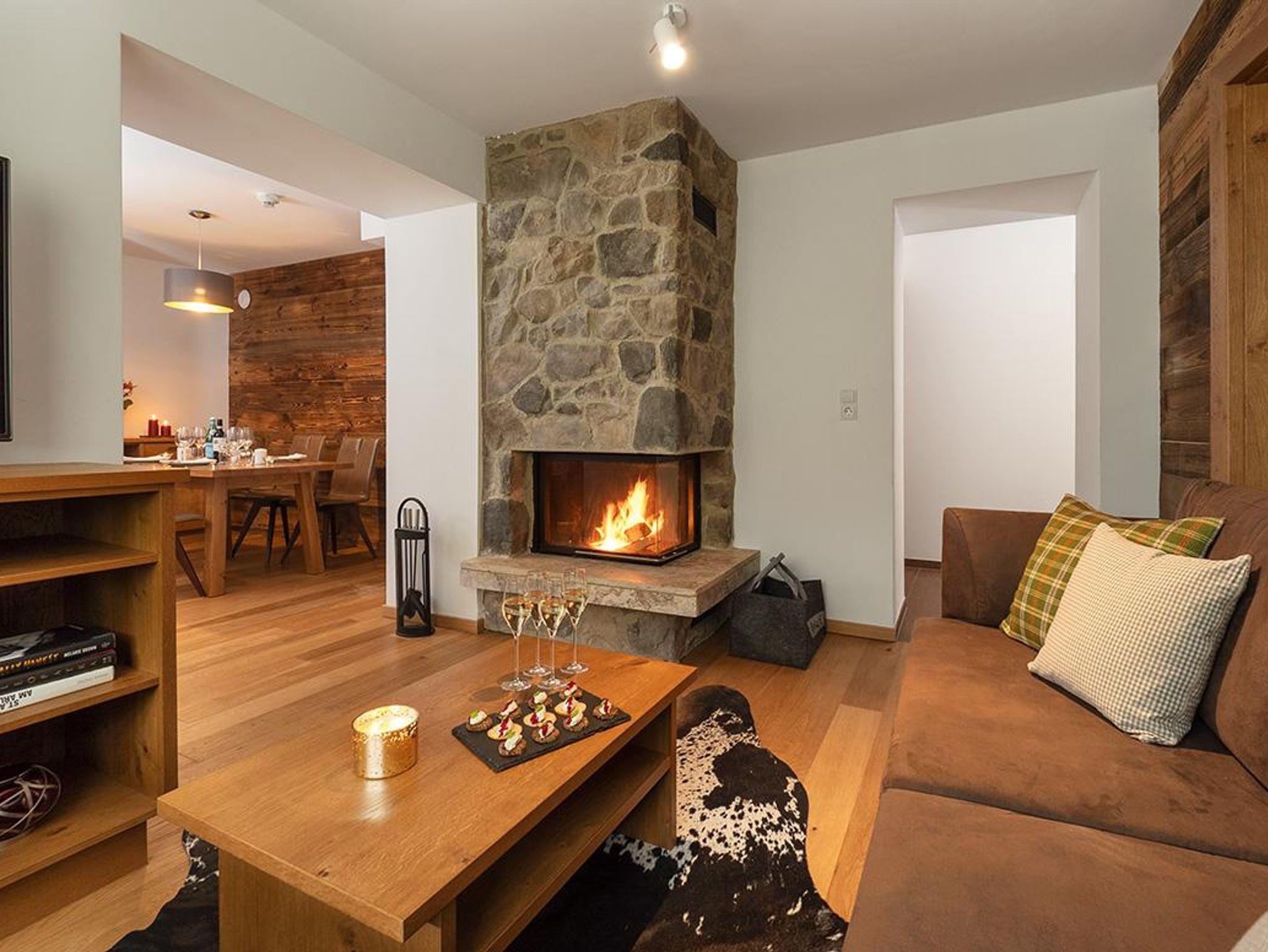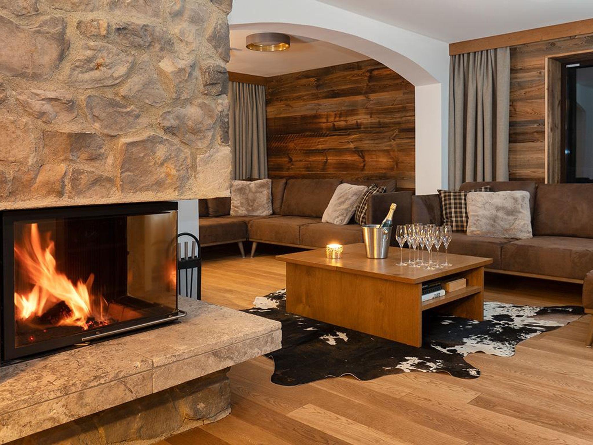 Die romantische Kaminfeuerstelle mit gemütlichen Sitzbereich, lässt Genießerherzen bei einem schönen Film oder einem gemeinsamen Glas Wein höherschlagen.