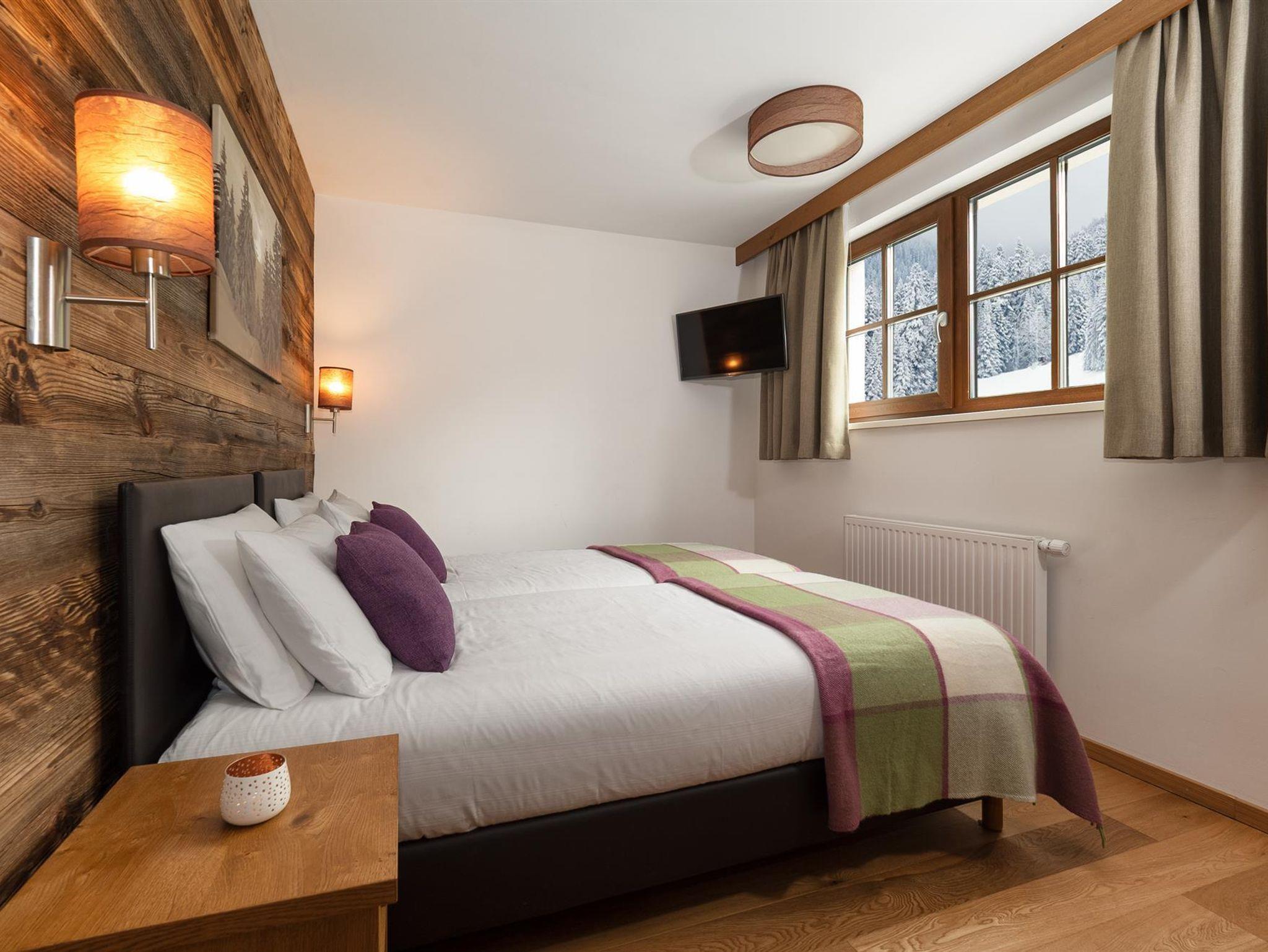 Das Chalet Viridi bietet Platz für bis zu 4 Personen auf einer Wohnfläche von 75m². Die zwei großzügigen, rustikalen Schlafzimmer sind mit einem bequemen, teilbaren Boxspring-Doppelbett, einem geräumigen Kleiderschrank und einem Nachttischchen ausgestattet. Jedes Schlafzimmer verfügt über ein eigenes modernes Badezimmer mit Waschbecken, Dusche oder Badewanne, WC, Haarföhn und einem Handtuchtrockner.