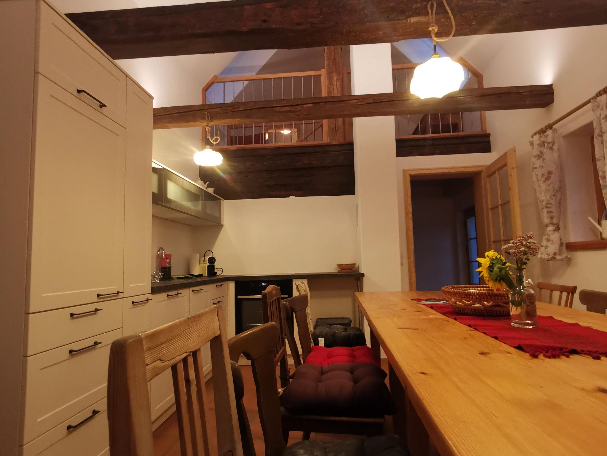Unsere Wohnküche ist komplett ausgestattet. Dusche und WC sind getrennt.