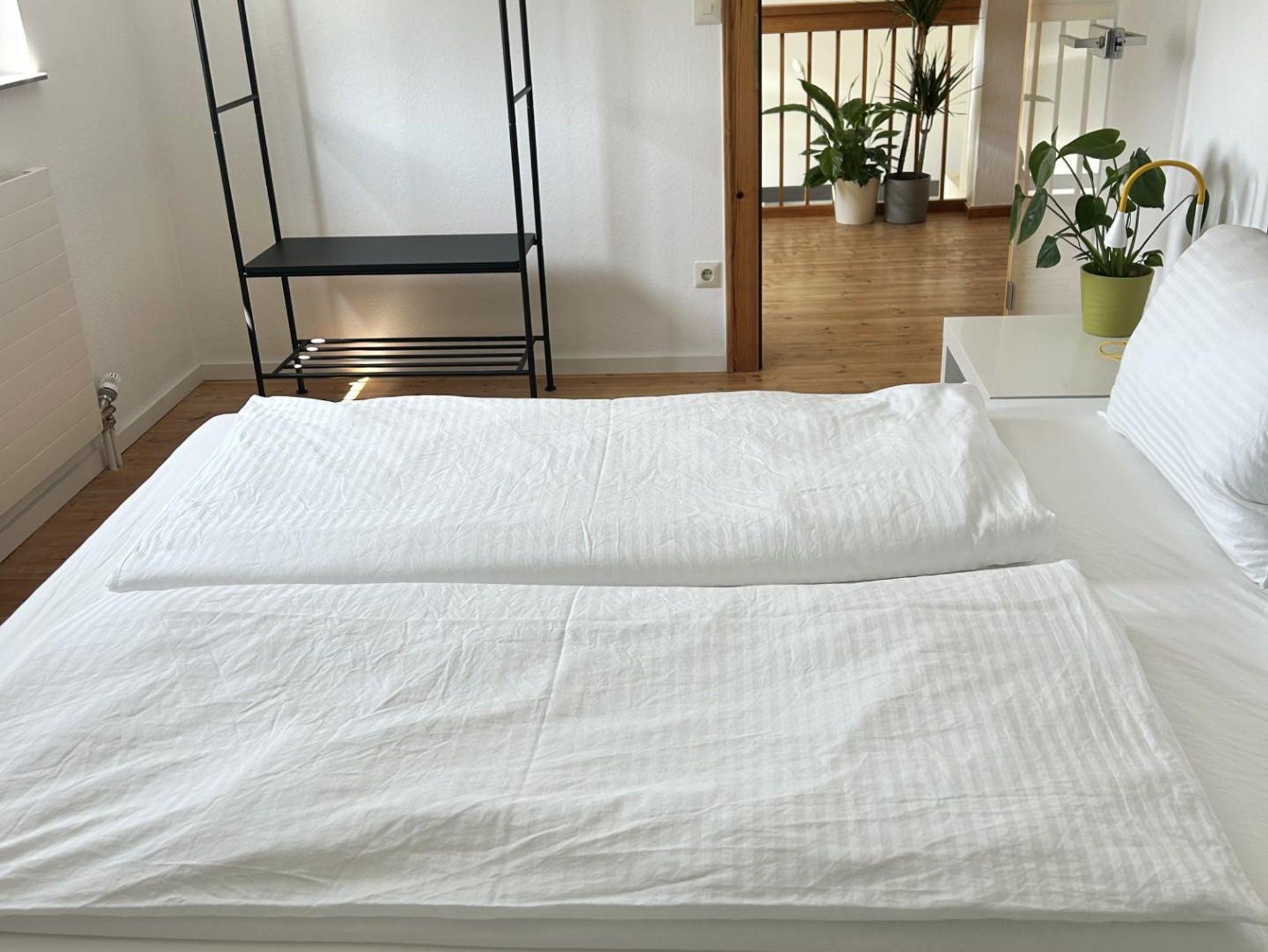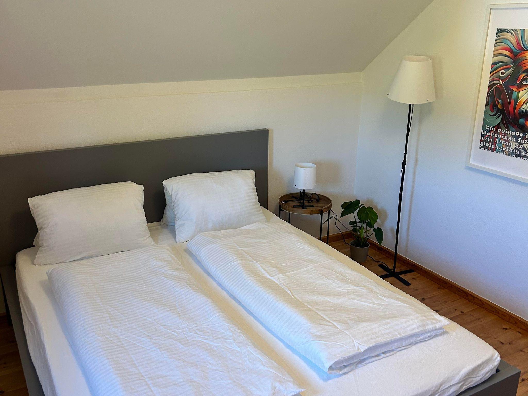 Freu dich auf erholsame Nächte in unseren zwei behaglichen Schlafzimmern, jeweils ausgestattet mit einem komfortablen Doppelbett und weicher Bettwäsche. Die Räume sind liebevoll eingerichtet und bieten den idealen Rückzugsort nach einem Tag am See oder einem Ausflug in die Umgebung – perfekt für Paare, Familien oder Freunde.