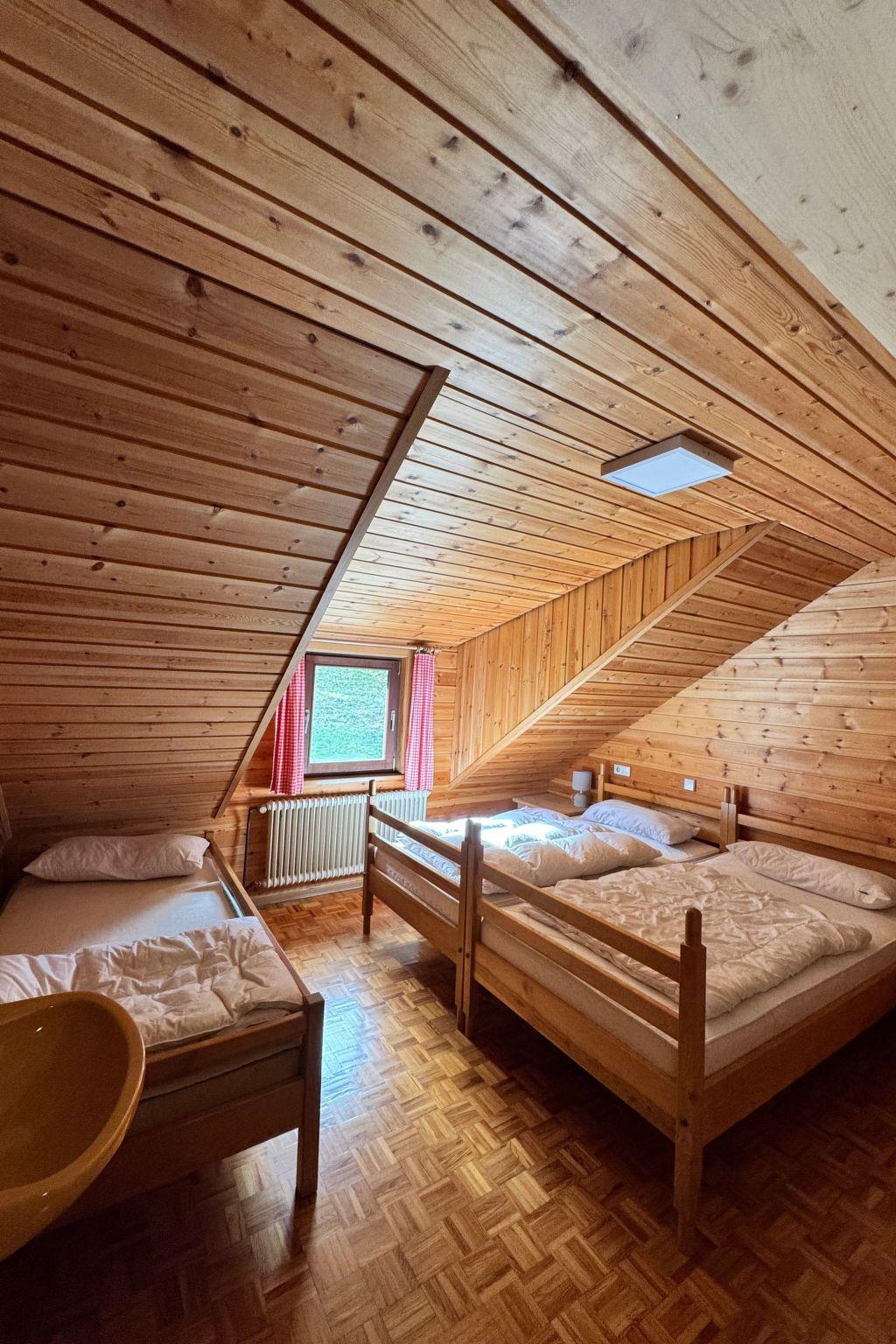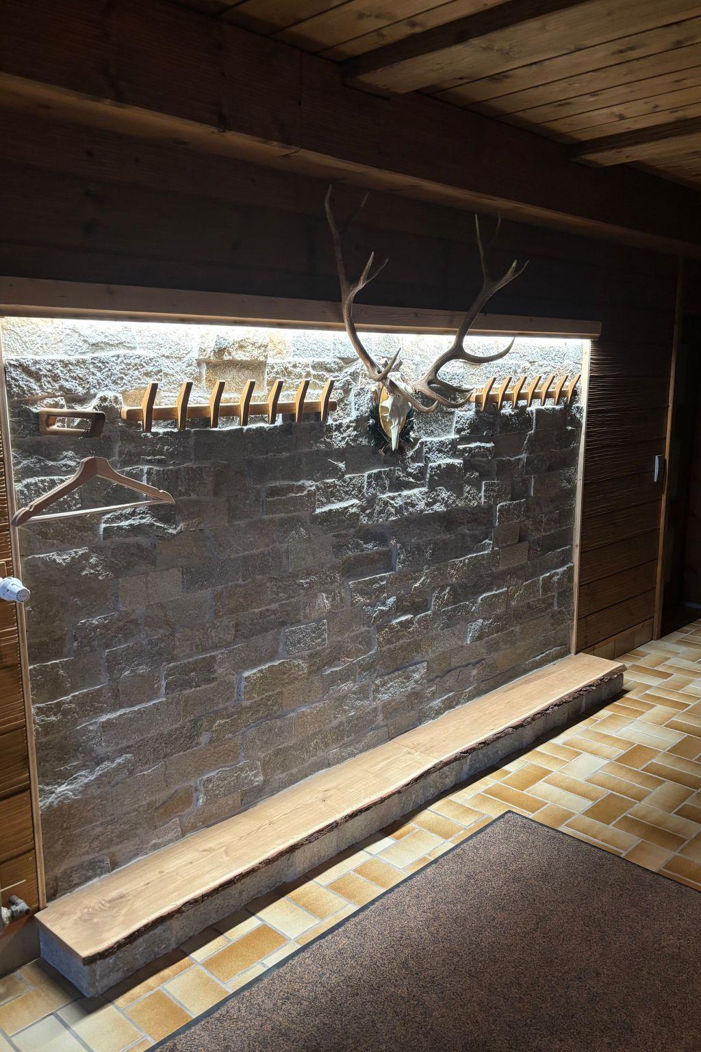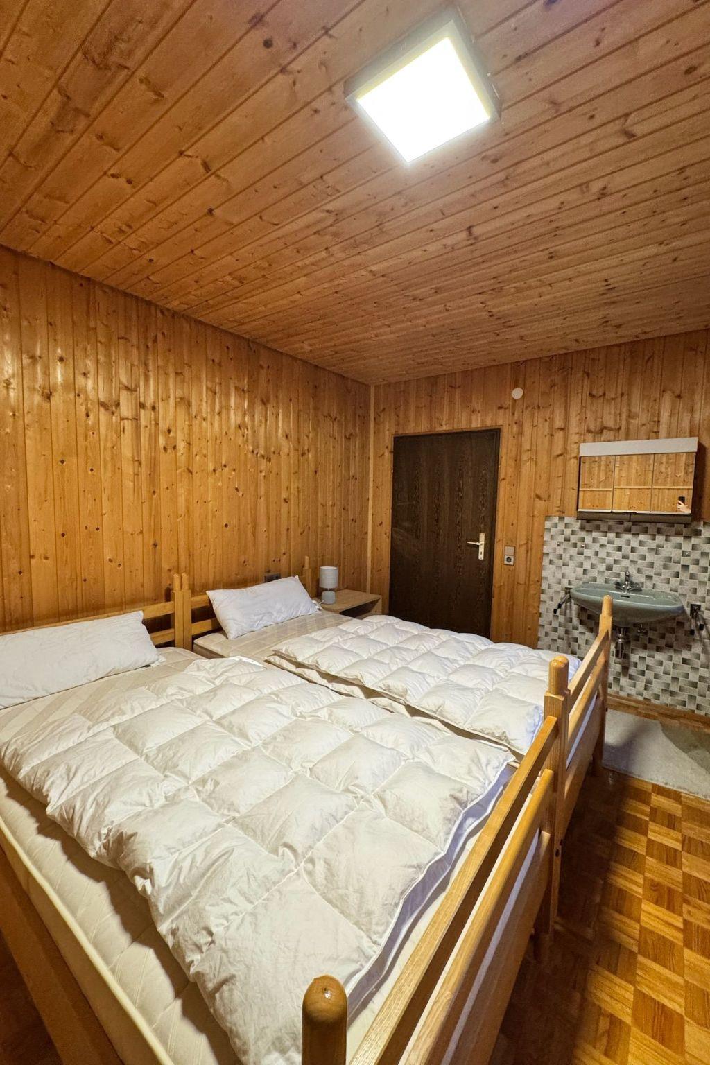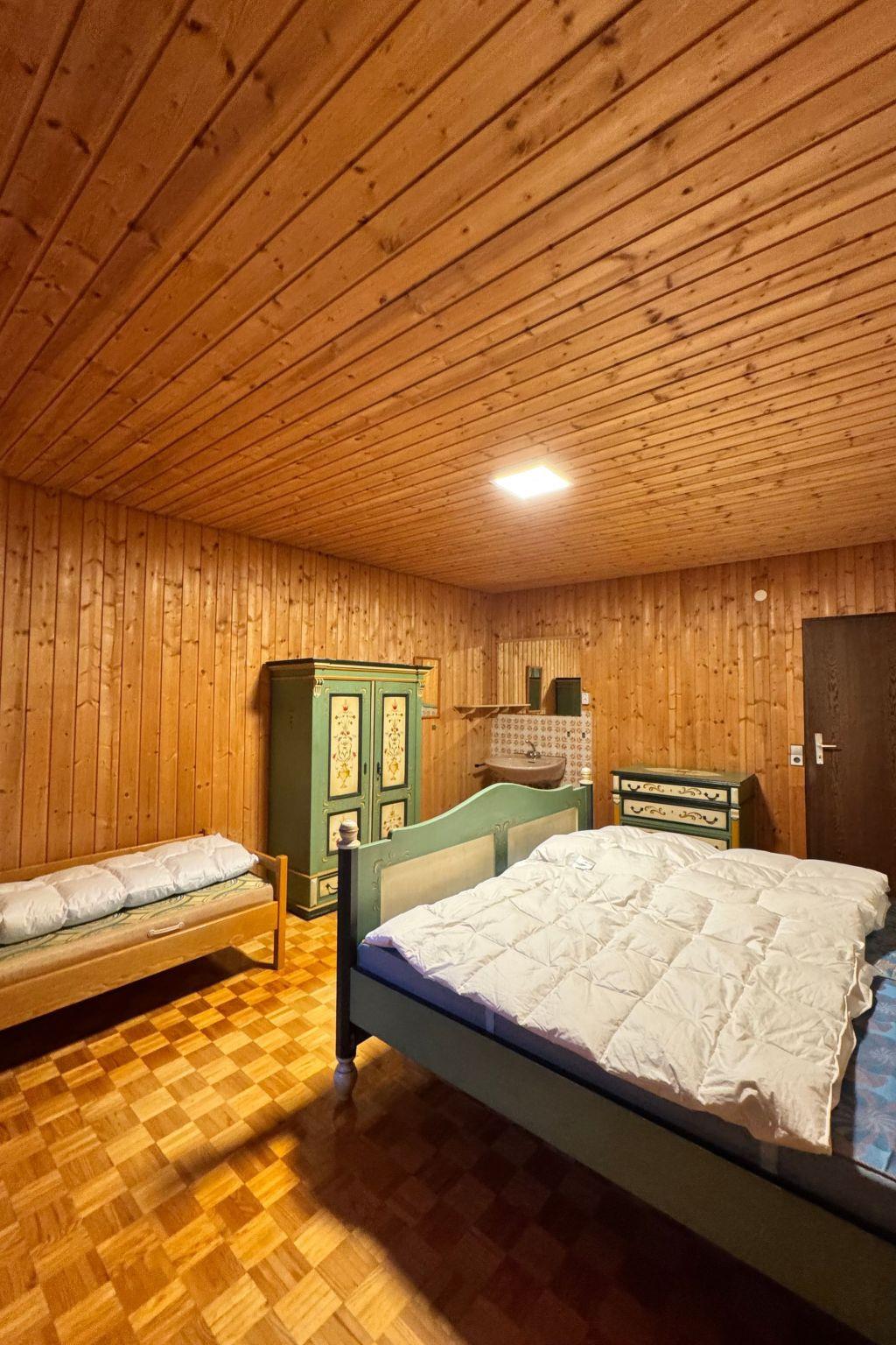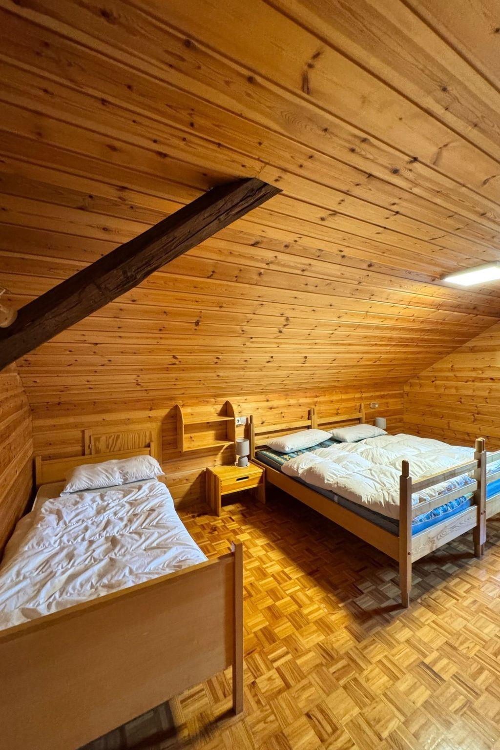 Das Interieur wurde liebevoll gestaltet, um einen angenehmen Aufenthalt zu gewährleisten. Mit insgesamt 9 Schlafzimmern, teilweise mit Doppelbetten und alle mit einem Waschbecken ausgestattet und zwei Badezimmern im Erdgeschoss mit jeweils drei Duschen (getrennt für Männer und Frauen) finden die Gäste hier viel Privatsphäre. Die Selbstverpflegung wird durch eine gut ausgestattete Küche mit modernen Annehmlichkeiten wie 2 Cerankochfeldern, 2 Öfen und einer Heißluftfritteuse erleichtert. Eine Waschmaschine und eine Infrarotsauna sowie ein gemütlicher Pelletofen im Aufenthaltsraum für kühle Tage sorgen ebenfalls für Komfort.