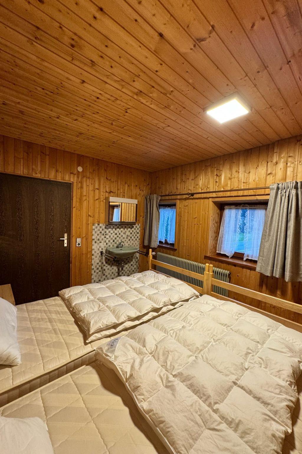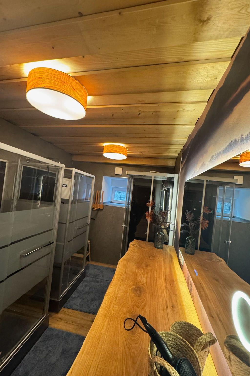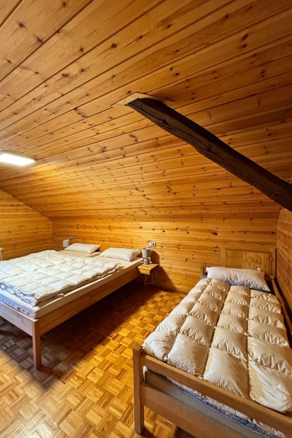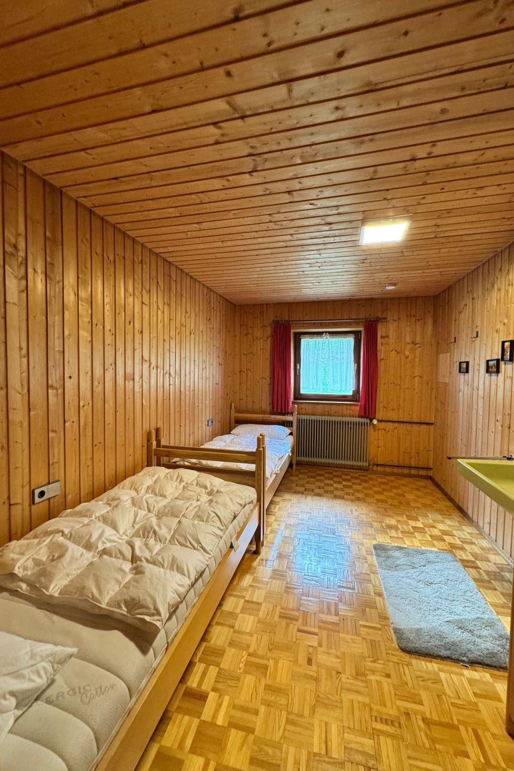 Das Interieur wurde liebevoll gestaltet, um einen angenehmen Aufenthalt zu gewährleisten. Mit insgesamt 9 Schlafzimmern, teilweise mit Doppelbetten und alle mit einem Waschbecken ausgestattet und zwei Badezimmern im Erdgeschoss mit jeweils drei Duschen (getrennt für Männer und Frauen) finden die Gäste hier viel Privatsphäre. Die Selbstverpflegung wird durch eine gut ausgestattete Küche mit modernen Annehmlichkeiten wie 2 Cerankochfeldern, 2 Öfen und einer Heißluftfritteuse erleichtert. Eine Waschmaschine und eine Infrarotsauna sowie ein gemütlicher Pelletofen im Aufenthaltsraum für kühle Tage sorgen ebenfalls für Komfort.