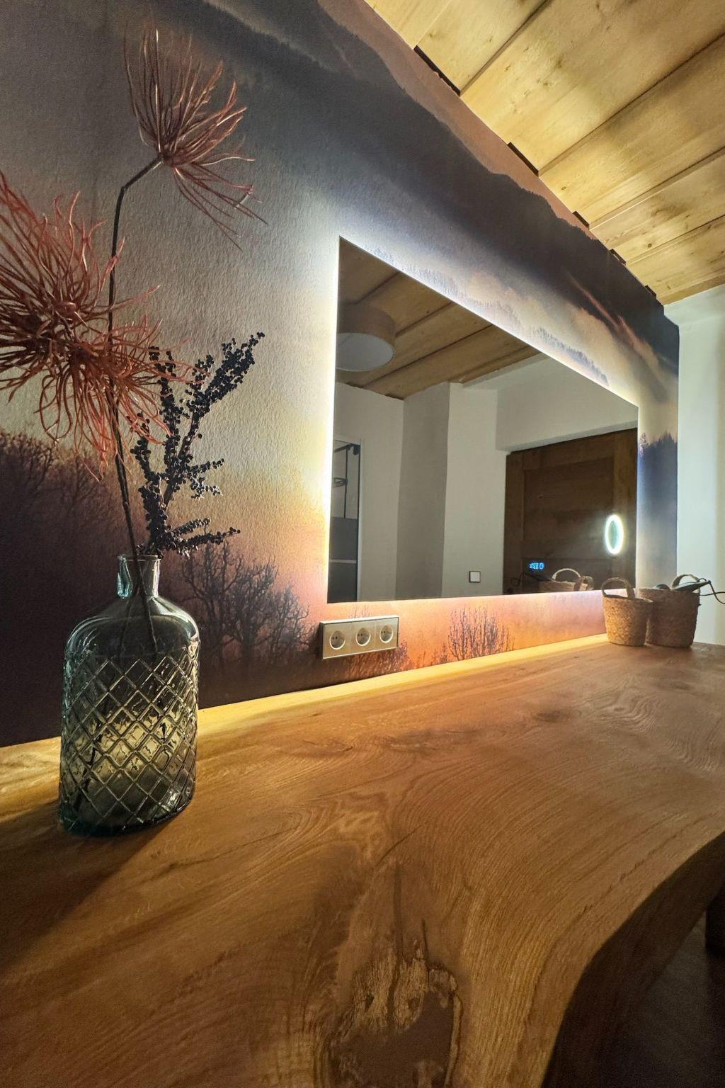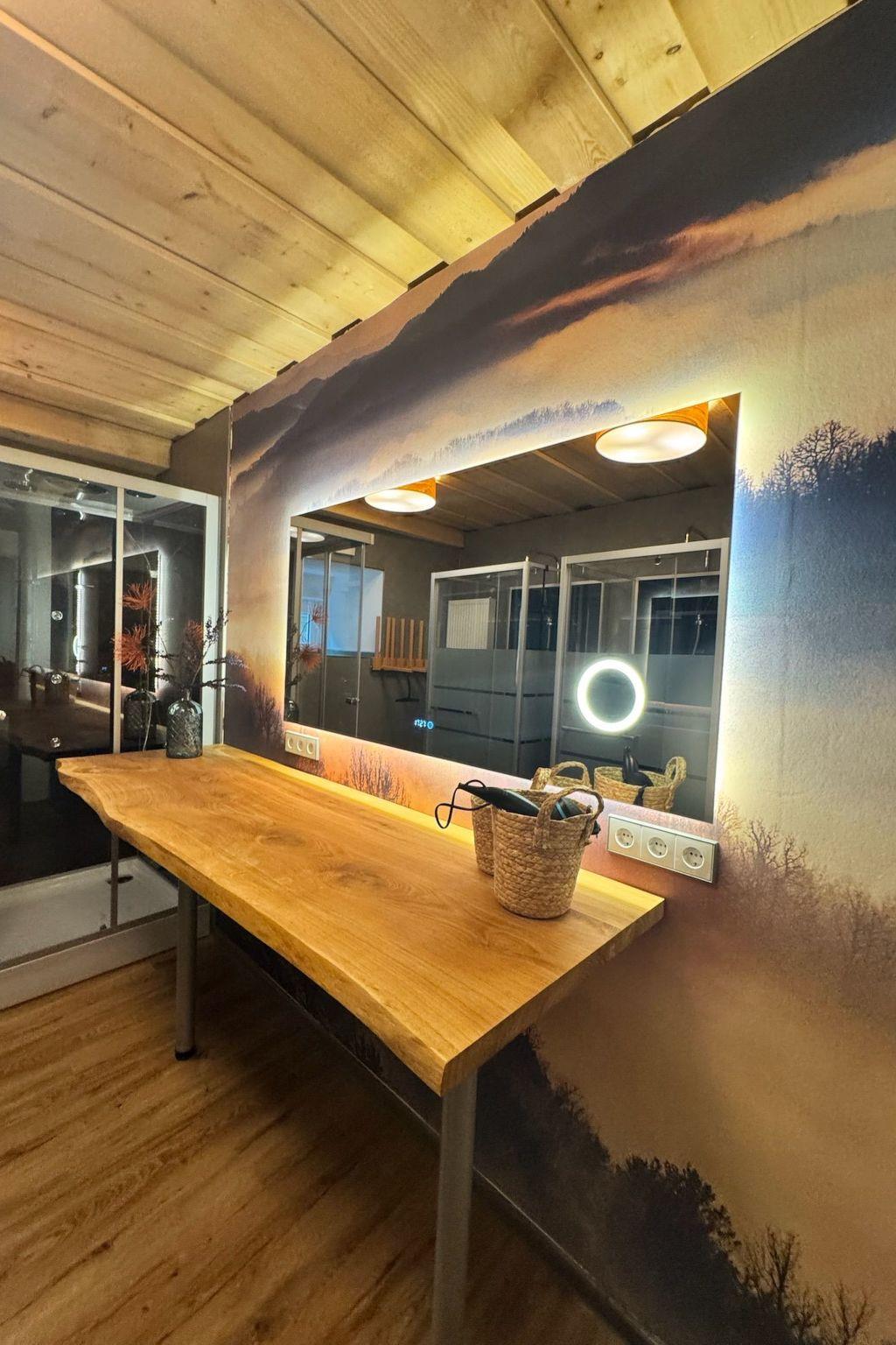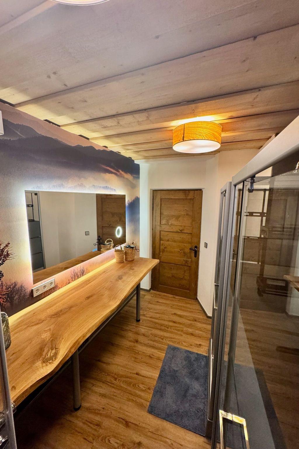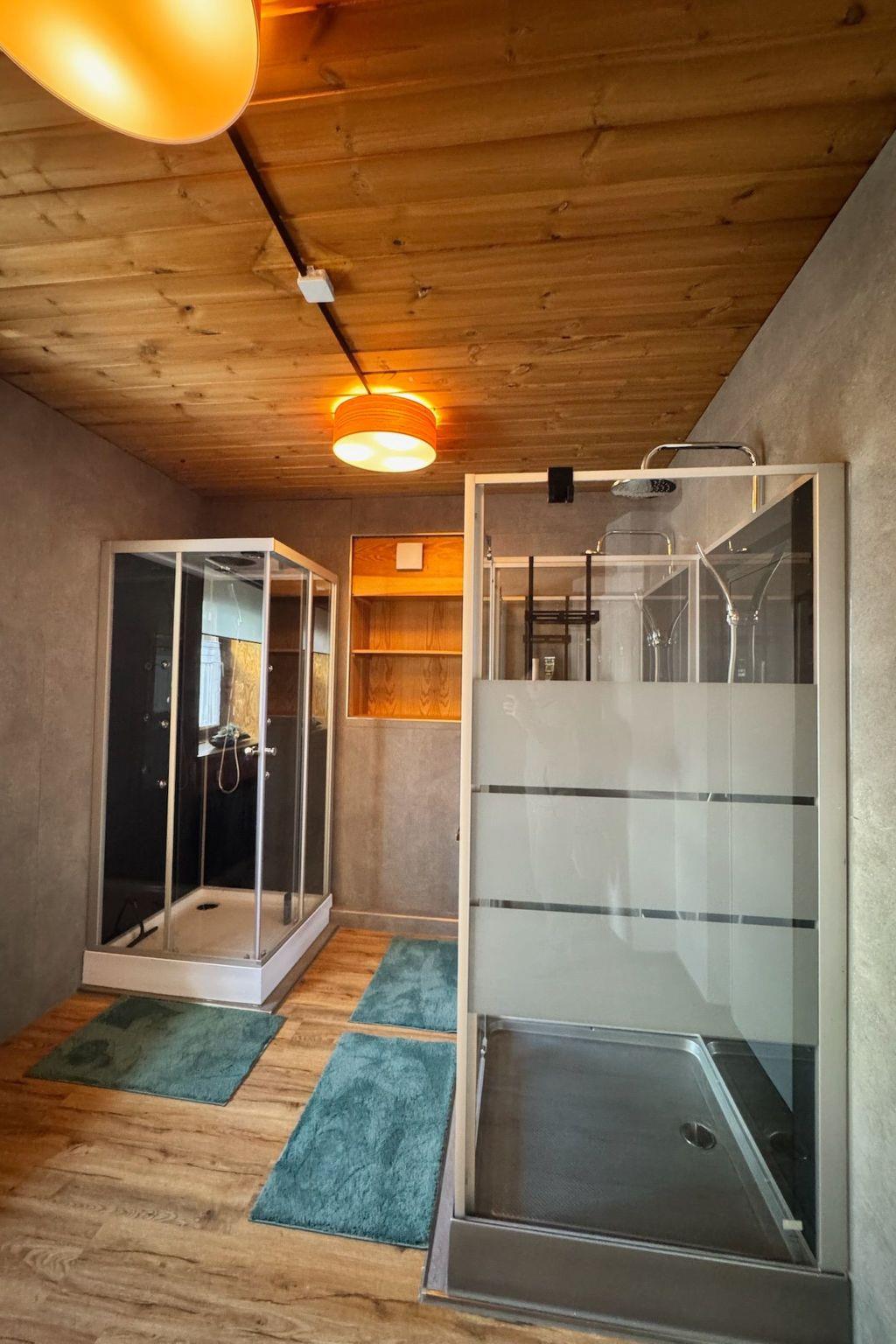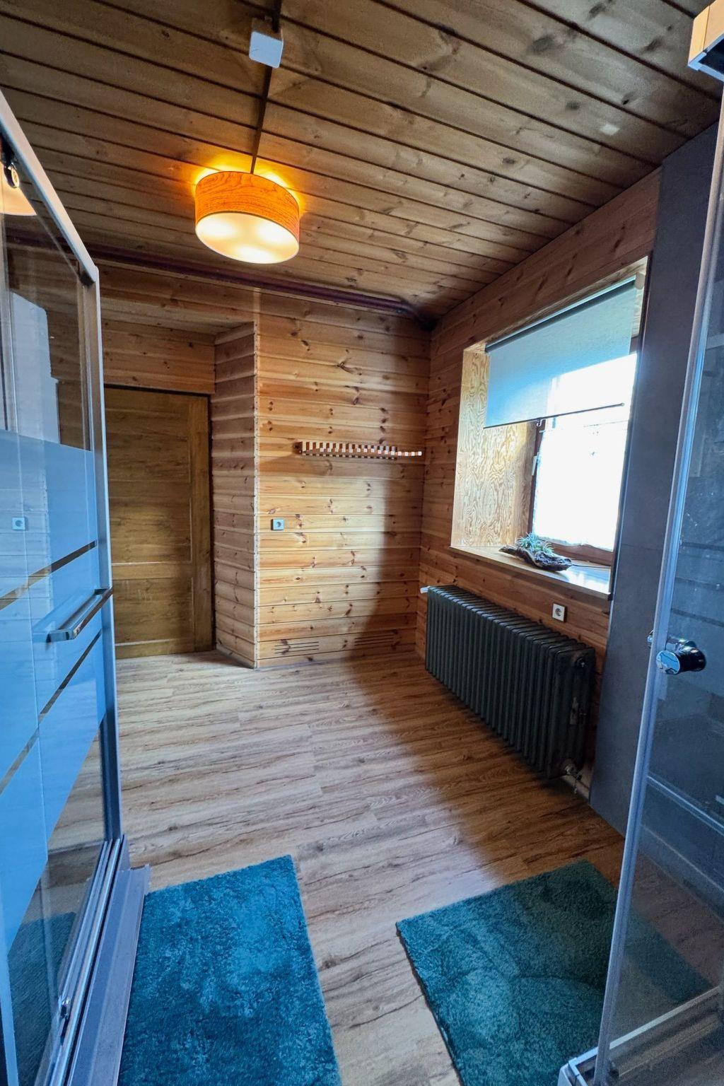 Das Interieur wurde liebevoll gestaltet, um einen angenehmen Aufenthalt zu gewährleisten. Mit insgesamt 9 Schlafzimmern, teilweise mit Doppelbetten und alle mit einem Waschbecken ausgestattet und zwei Badezimmern im Erdgeschoss mit jeweils drei Duschen (getrennt für Männer und Frauen) finden die Gäste hier viel Privatsphäre. Die Selbstverpflegung wird durch eine gut ausgestattete Küche mit modernen Annehmlichkeiten wie 2 Cerankochfeldern, 2 Öfen und einer Heißluftfritteuse erleichtert. Eine Waschmaschine und eine Infrarotsauna sowie ein gemütlicher Pelletofen im Aufenthaltsraum für kühle Tage sorgen ebenfalls für Komfort.