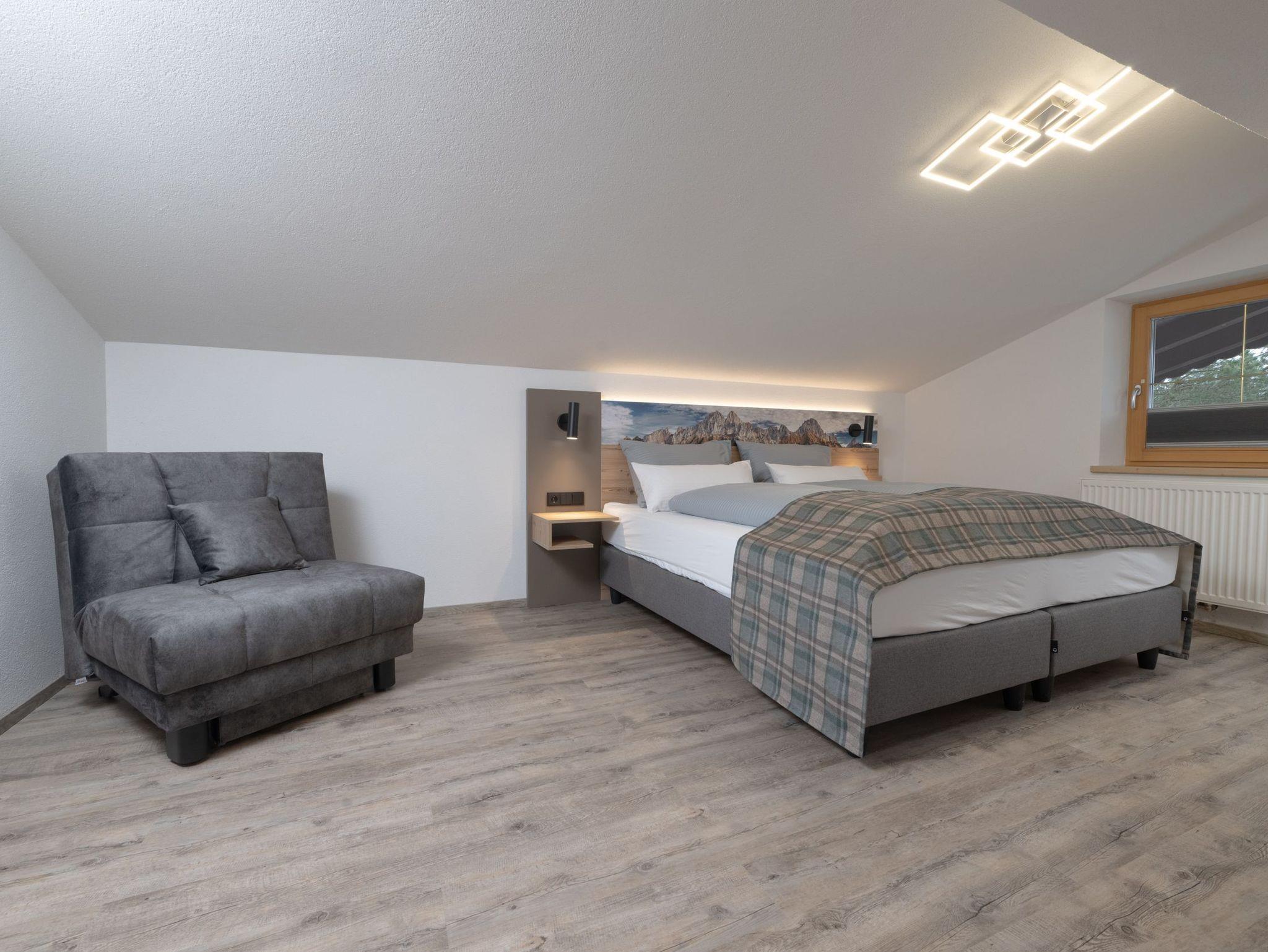 Sie blicken direkt in die umliegende Bergwelt und genießen den Komfort unserer hochwertig ausgestatteten Ferienwohnungen im rustikal-modernen Alpin-Style.