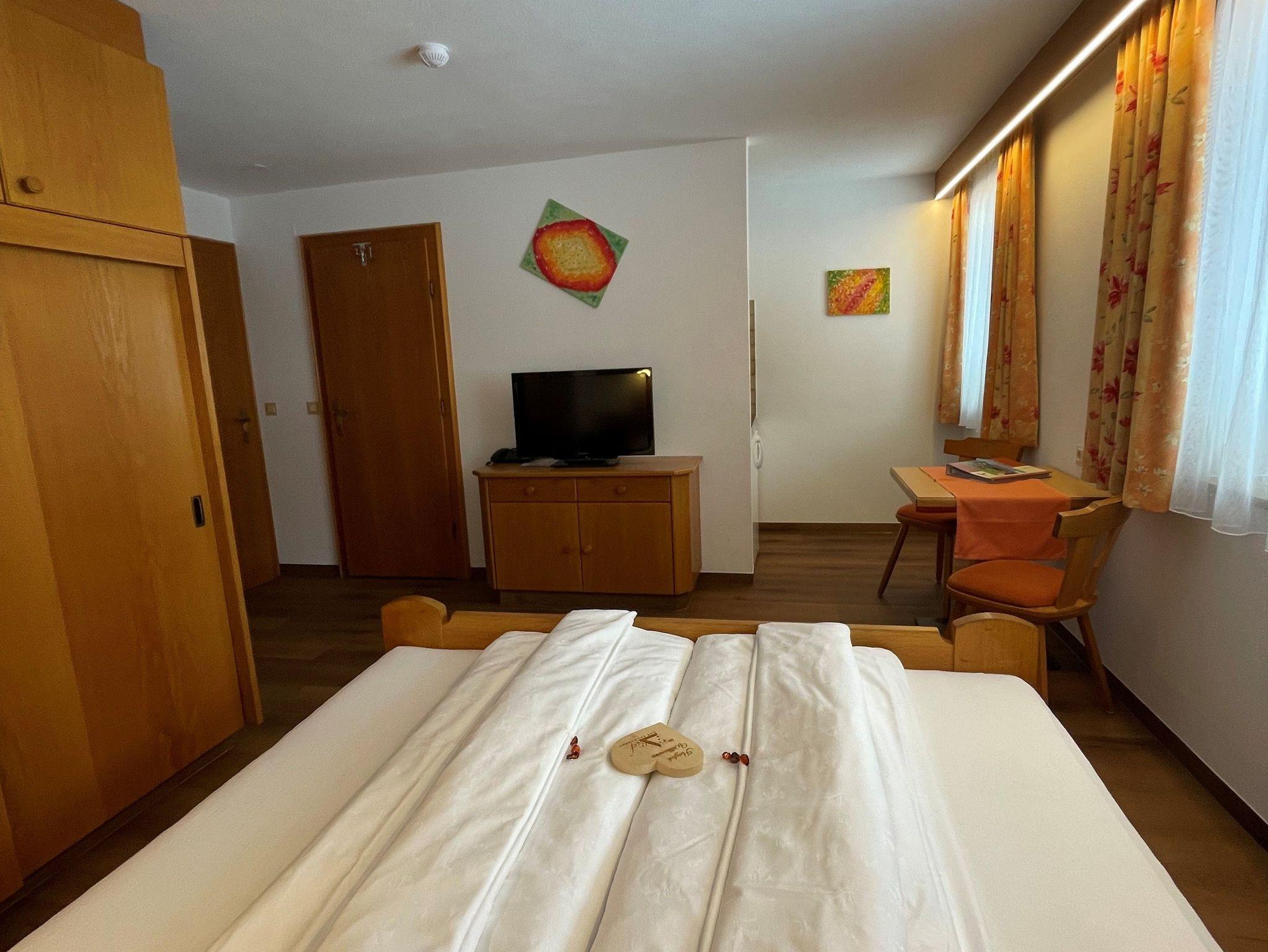 Diese Ferienwohnung verfügt über ein Schlafzimmer, ein Wohnschlafzimmer, Infrarotwärmeliege, DU/WC getrennt, Südbalkon , geräumige Küche mit Spülmaschine, Mikro, schnelles Internet (Glasfaser) 57m²