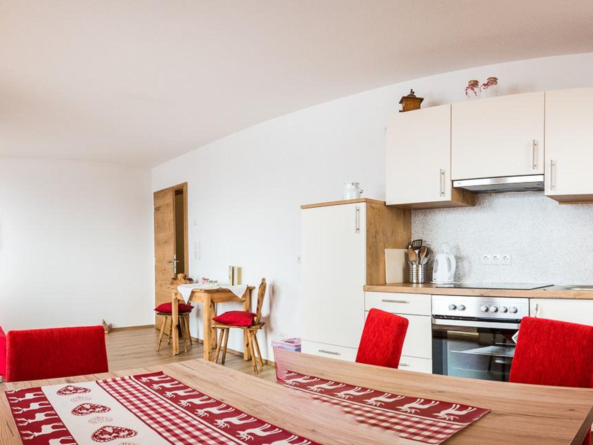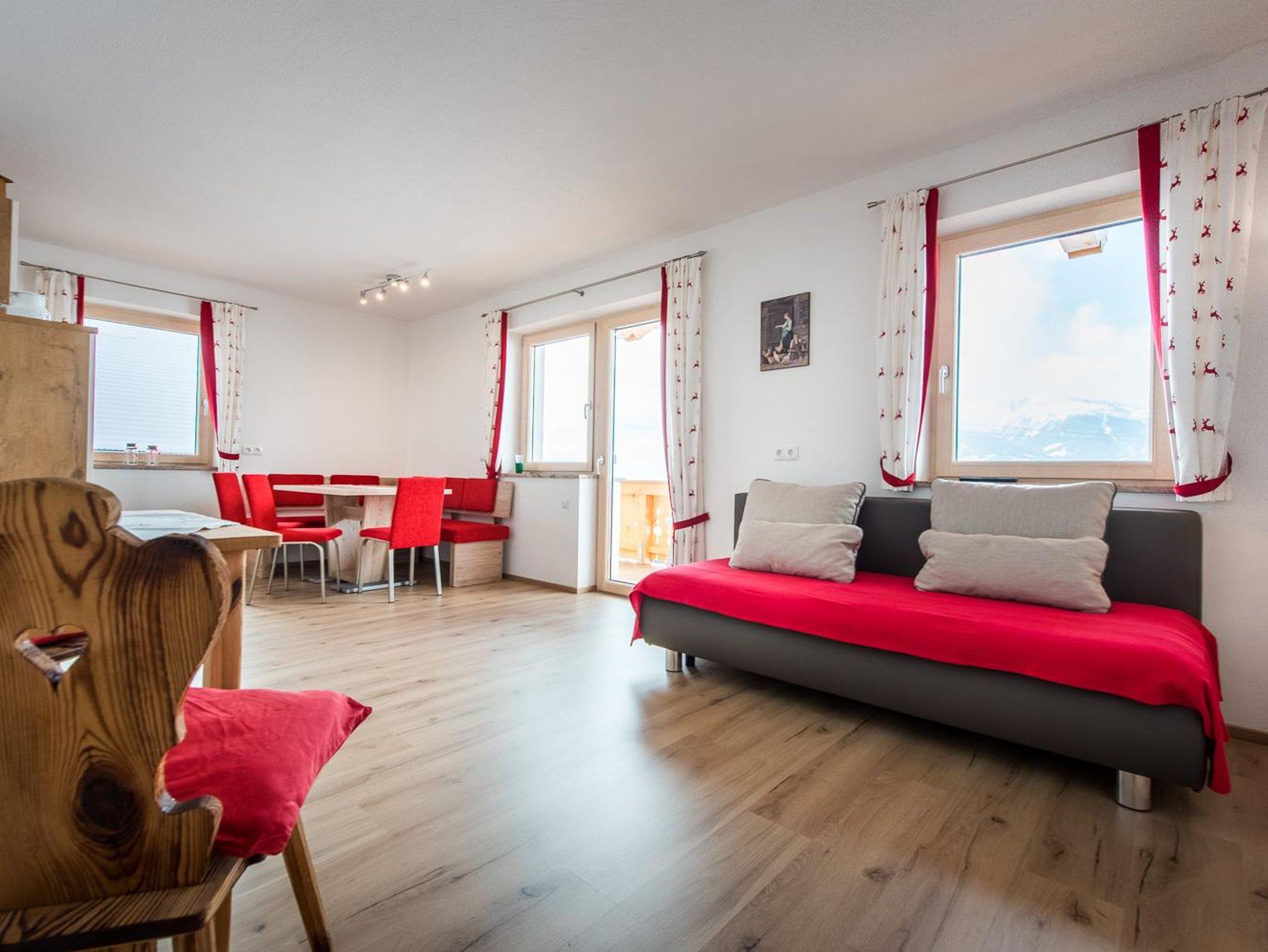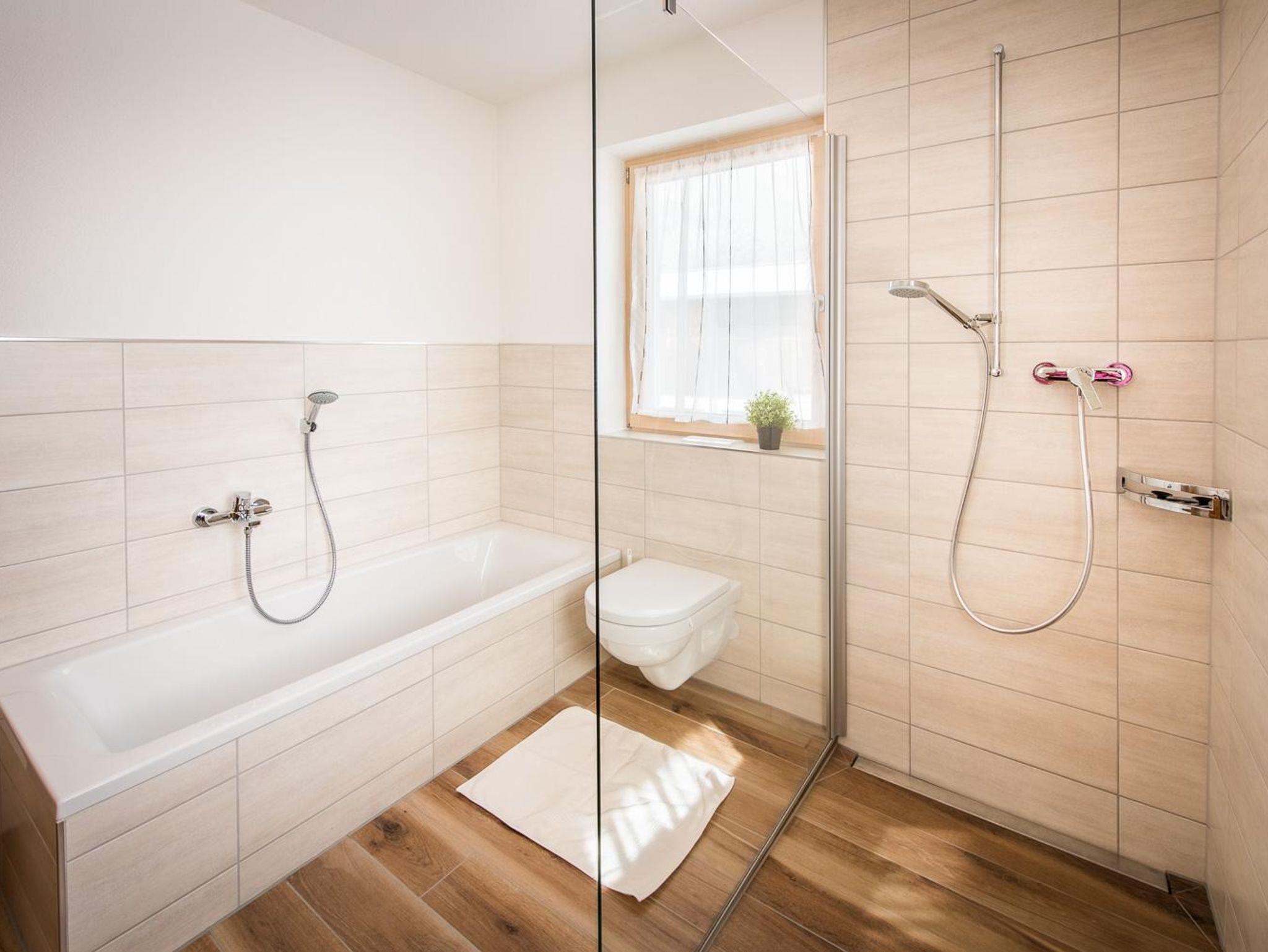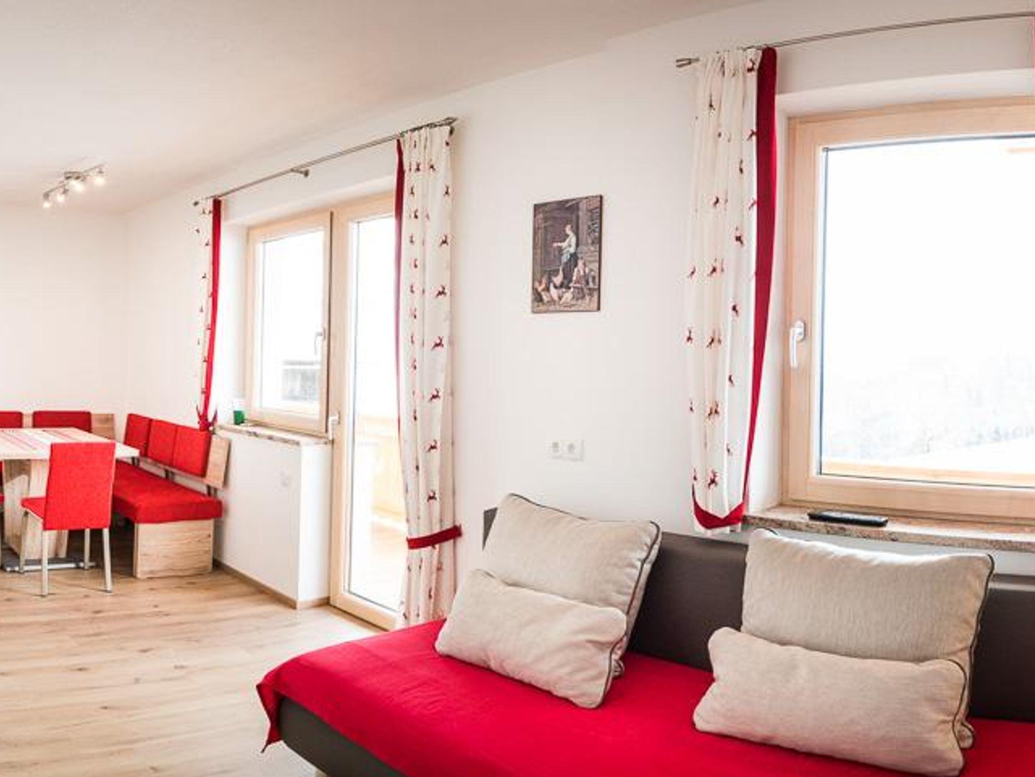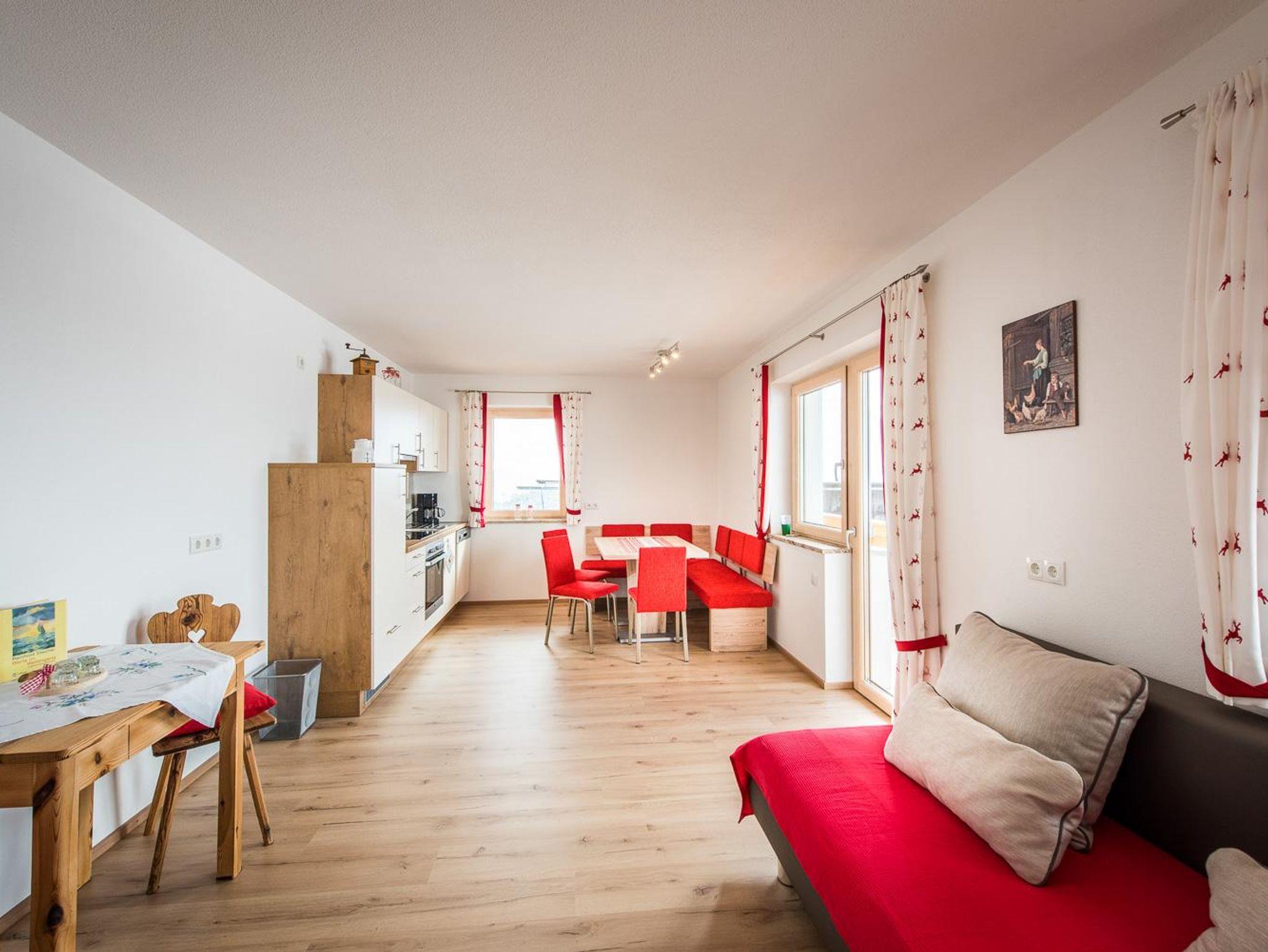 Die Ferienwohnung Kaiserblick ist eine wunderschöne große Wohnung im 1. Obergeschoß mit großen ost bis süd-west seitigem Balkon. Sie genießen einen wunderschönen Ausblick über die umliegenden Berge des Alpenhaupkamm und ins Karwendelgebirge. Die Wohnung hat einen großen Vorraum, zwei Doppelbettzimmer, Eine große Wohnküche ein Bad mit Badewanne, Dusche, Waschtisch, WC und ein separates WC. Die Wohnküche ist mit einem großen Küchenblock mit E-Herd mit Backrohr, Mikrowelle Dunstabzug Kühlschrank, Geschirrspühlmaschine, Kaffeemaschine, gemütlicher Sitzecke, einer Ausziehliege und Sat-TV ausgestattet.