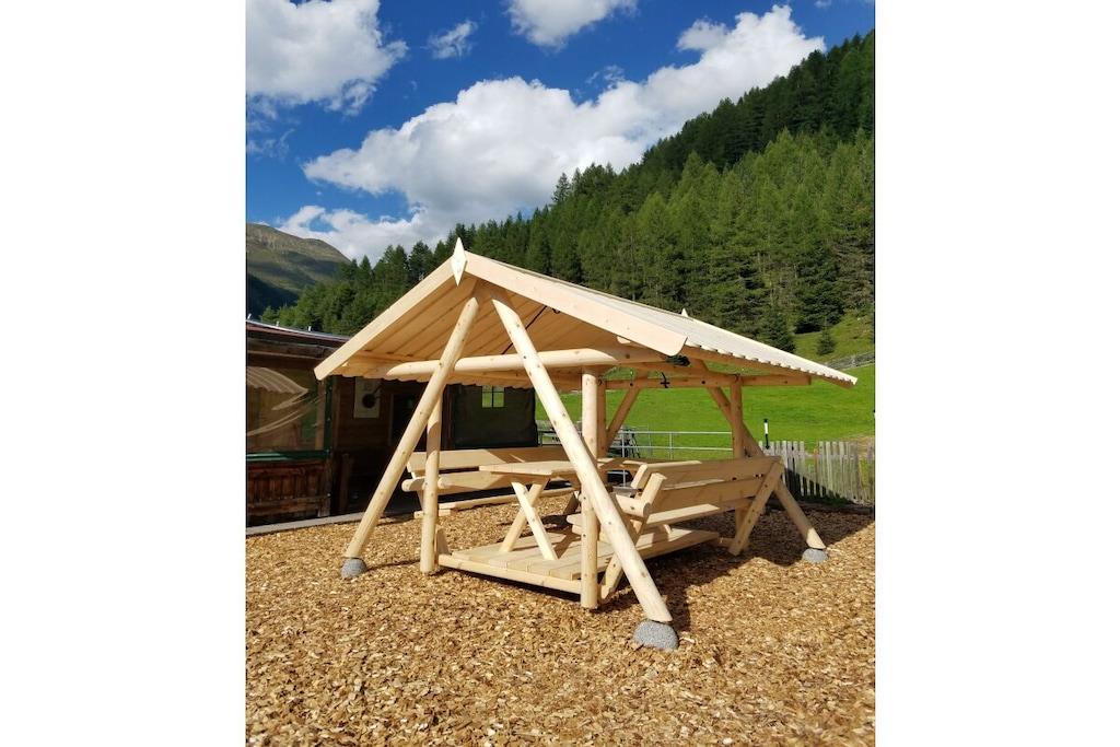 Appartement Edelweiss ist unser größtes Appartement von ca. 100 m² für 6-8 Personen. Die Ferienwohnung hat drei getrennte Schlafzimmer, jeweils mit Badezimmer mit Dusche/Bad, WC. Weiterhin verfügt es über Sat TV, Wohn- Esszimmer und eine modern ausgestattete Küche mit Spülmaschine. Im Parterre befindet sich der Aufenthaltsraum mit Küche für ca. 30 Personen. Es gibt einen großen Spielplatz, Streichelzoo, Sonnenterasse mit Loungeset. Zusätzlicher Service (gegen Bezahlung):Brötchenservice, Eier, Honig, Bauernbutter, hausgemachte Kaminwurz, Almkäse.