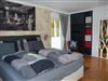 Großes Zimmer mit Boxspringbett und der Möglichkeit für ein Zustellbett für ein Kind. Das Zimmer befindet sich im Erdgeschoss und verfügt über eine Terrasse .