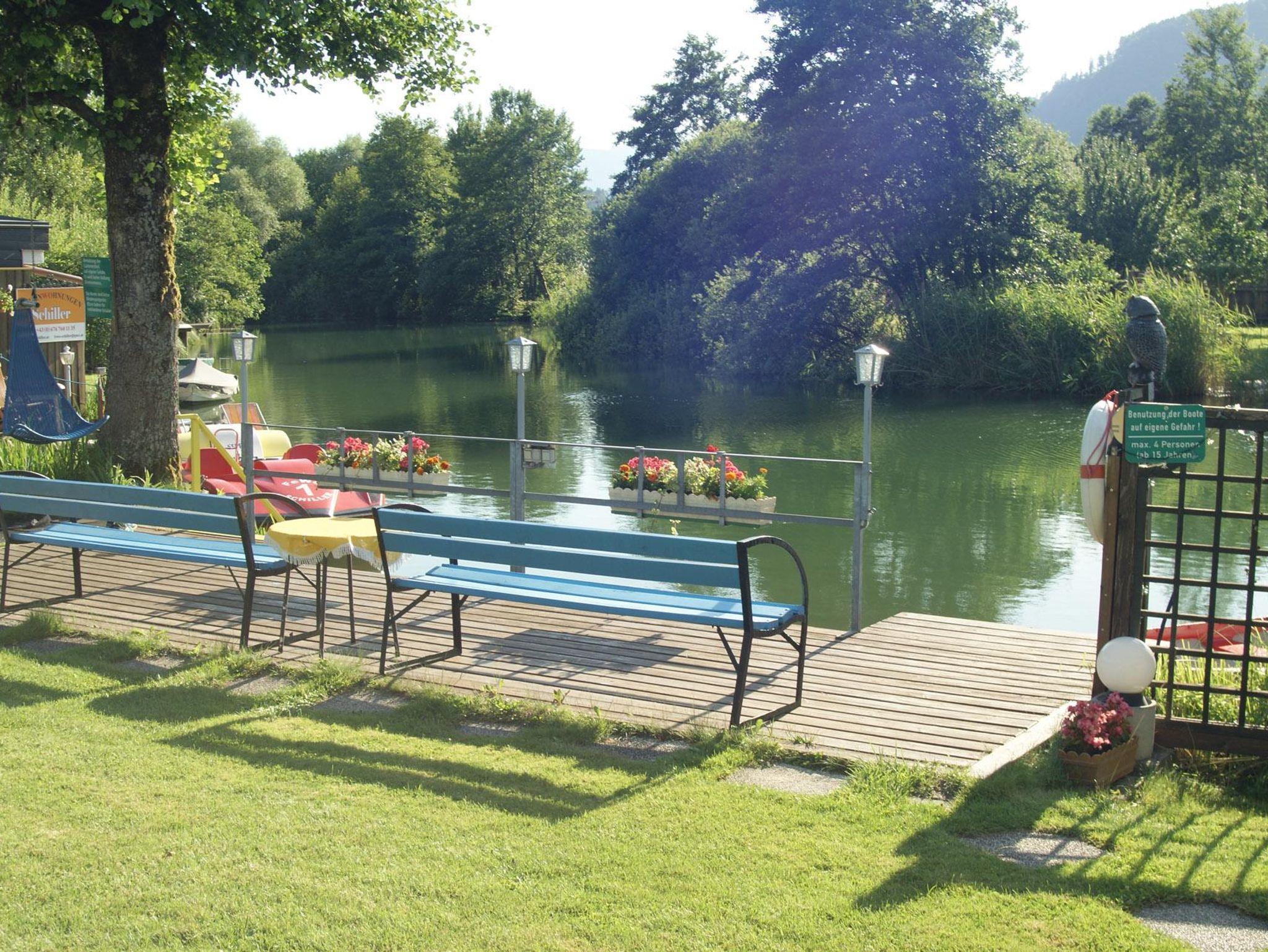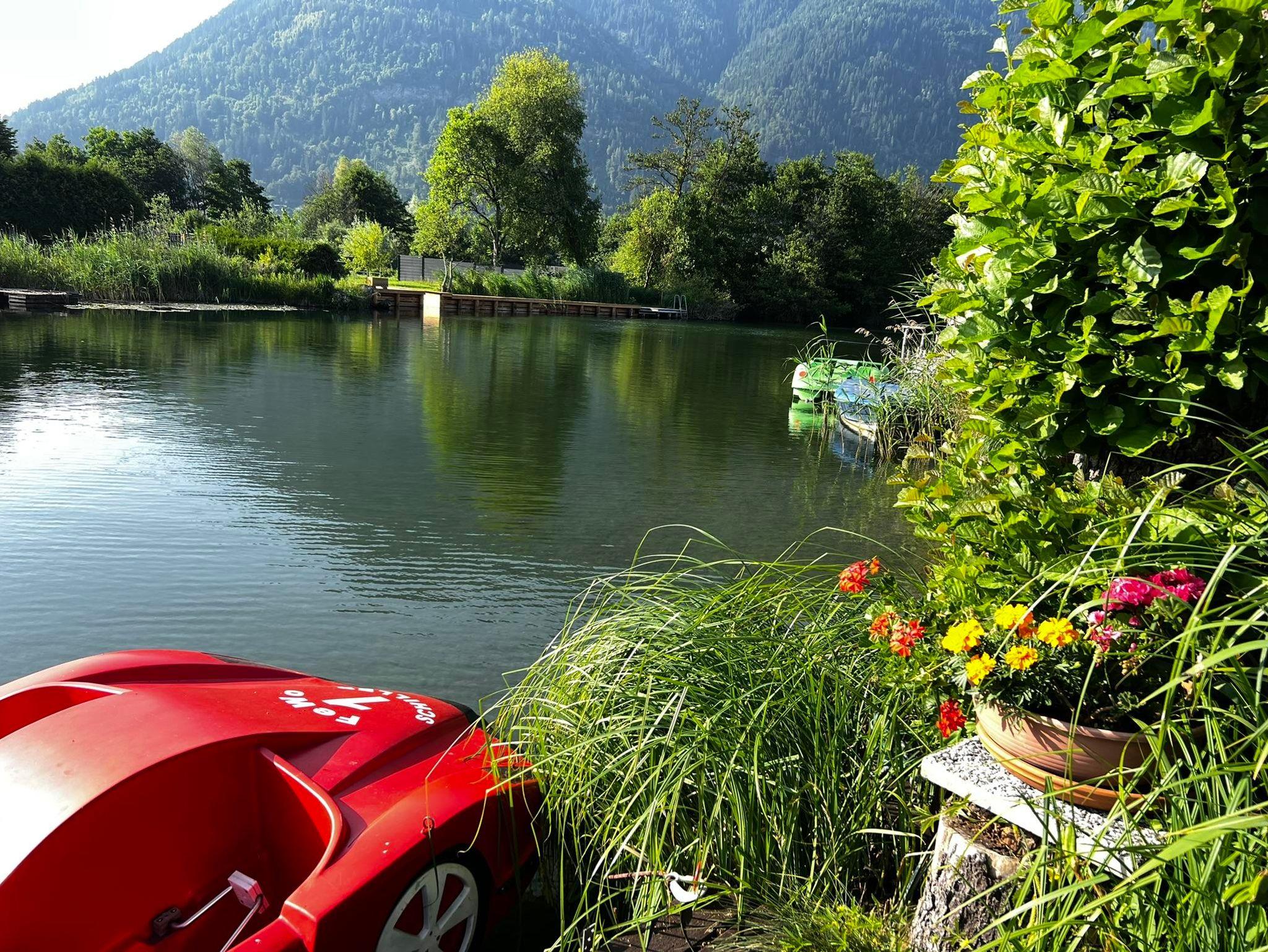Erleben Sie Freiheit bei Ferienwohnungen Schiller! Umgeben von der faszinierenden Natur Österreichs, bieten die Ferienwohnungen Schiller in Landskron einen unvergesslichen Rückzugsort. Direkt an einem idyllischen Fluss gelegen, können Sie das klare Wasser und die grüne Wiesenlandschaft in vollen Zügen genießen. Hier erwartet Sie nicht nur ein eigener Badestrand, sondern auch die Möglichkeit, die hauseigenen Tretboote kostenlos zu nutzen!