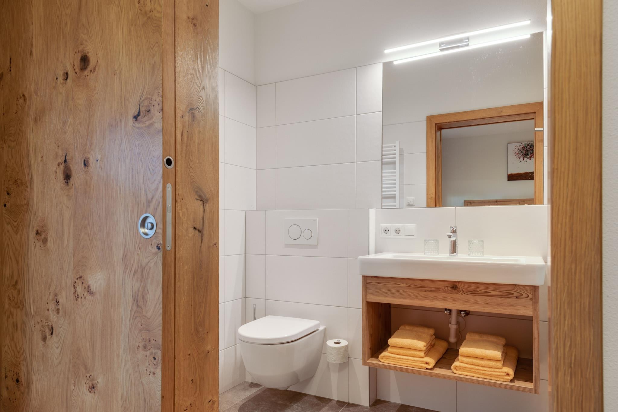 Auf der Grenze zwischen dem Salzburgerland und Tirol, im lebendigen Dorf Wald (Gemeinde Wald-Königsleiten), liegt auf der Sonnenseite des Tals dieses wunderschön gelegene Ferienhaus mit 2 Ferienwohnungen. Sie verfügen über beide Ferienwohnungen (für insgesamt 12 Personen), die im Erdgeschoss und 1. Stock gelegen sind. Sehr gut für gemeinsam reisende Familien oder Freunde geeignet. Der Vorteil eines Ferienhauses, aber trotzdem Privatsphäre für alle. Die Ferienwohnungen sind über ein zentrales Treppenhaus miteinander verbunden. Jede Ferienwohnung verfügt eine attraktives und mit Liebe zum Detail eingerichtetes Wohnzimmer mit großer Essecke und moderner offener Küche und bietet eine Aussicht auf die umliegenden Berge des Nationalparks Hohe Tauern. Vom Wohnzimmer aus haben Sie Zugang zum wunderschönen Balkon. In der Ferienwohnung im Erdgeschoss verfügen Sie über 2 wunderschöne Schlafzimmer und 2 moderne Badezimmer. Und in der Ferienwohnung im 1. Stock über 3 Schlafzimmer und 3 moderne Badezimmer. Und nach einem Tag Wandern, Radfahren oder Skifahren können Sie sich in der eigenen Sauna herrlich entspannen. In der direkten Umgebung finden Sie ein schönes Hallenbad, verschiedene Möglichkeiten zum Essen und Einkaufen sowie den Skibus zum Skigebiet. Durch die zentrale Lage stehen Ihnen innerhalb von 15 Autominuten 3 bekannte Skigebiete zur Verfügung: die Zillertal-Arena (140 km Pisten), die Wildkogel-Arena (62 km Pisten) und die Kitzbüheler Alpen (180 km Pisten). Mit der Salzburg-Superskikarte haben Sie Zugang zu allen Gebieten und können sogar einen Ausflug nach Zell am See, Kaprun und Saalbach-Hinterglemm unternehmen. Im Sommer gibt es sehr viele Möglichkeiten Ihren Urlaub zu gestalten, Wander- und Mountainbikemöglichkeiten im Überfluss, viele Sehenswürdigkeiten in sowohl Tirol wie auch im Salzburgerland, einen wunderschönen Stausee in der Nähe von Gerlos und vergessen Sie nicht, die höchsten Wasserfälle Europas im nahegelegenen Krimml zu besuchen.