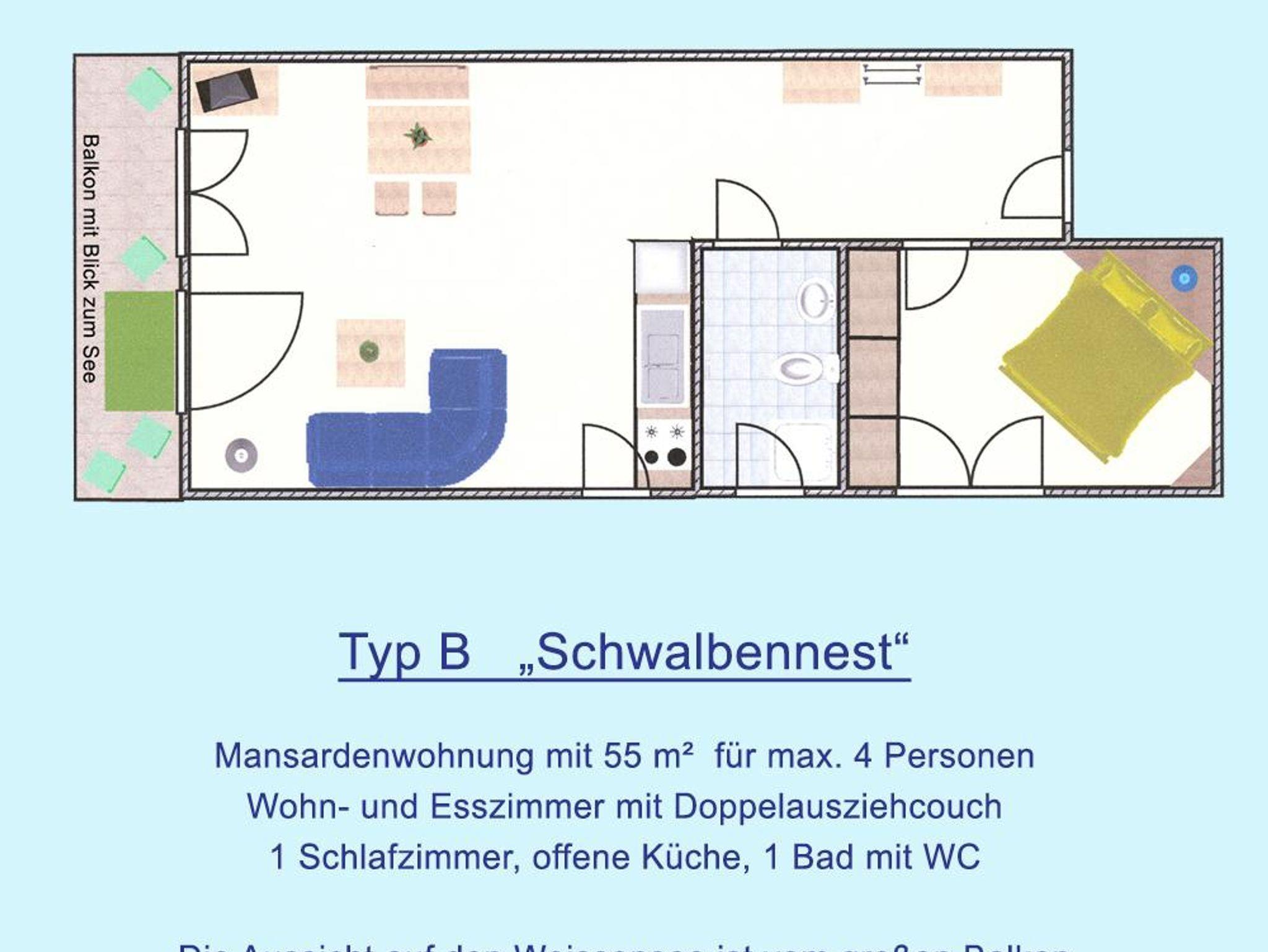 Gemütliche großzügige Wohnung (55 m²) im Dachgeschoss mit Balkon und Seeblick