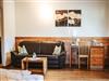 • Sitzecke mit Couch und Schreibtisch mit Sessel