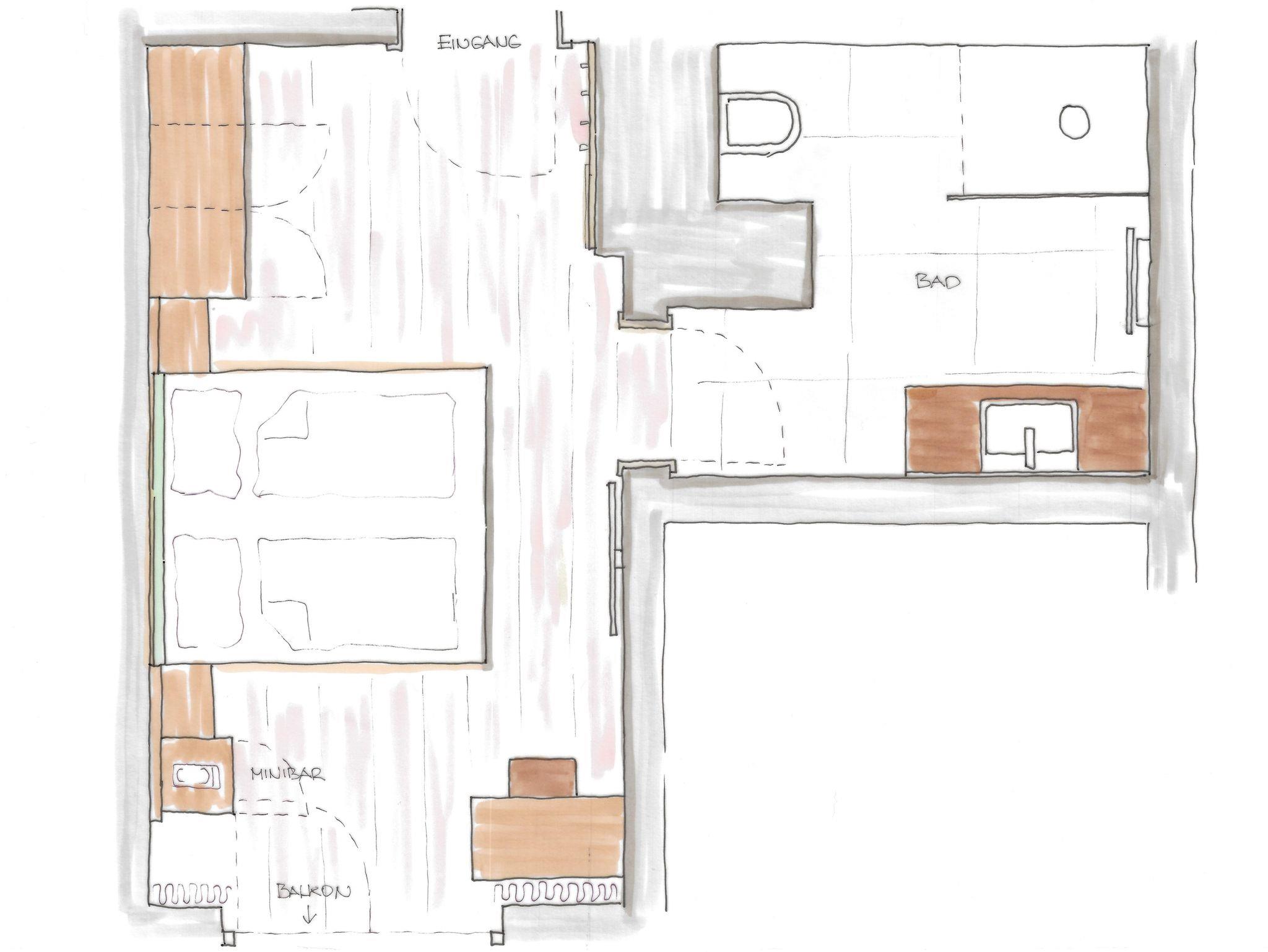 Neu renovierte Doppelzimmer für 1-2 Personen mit ca. 22m² im Haupthaus (Fertigstellung Ende Mai 2025).