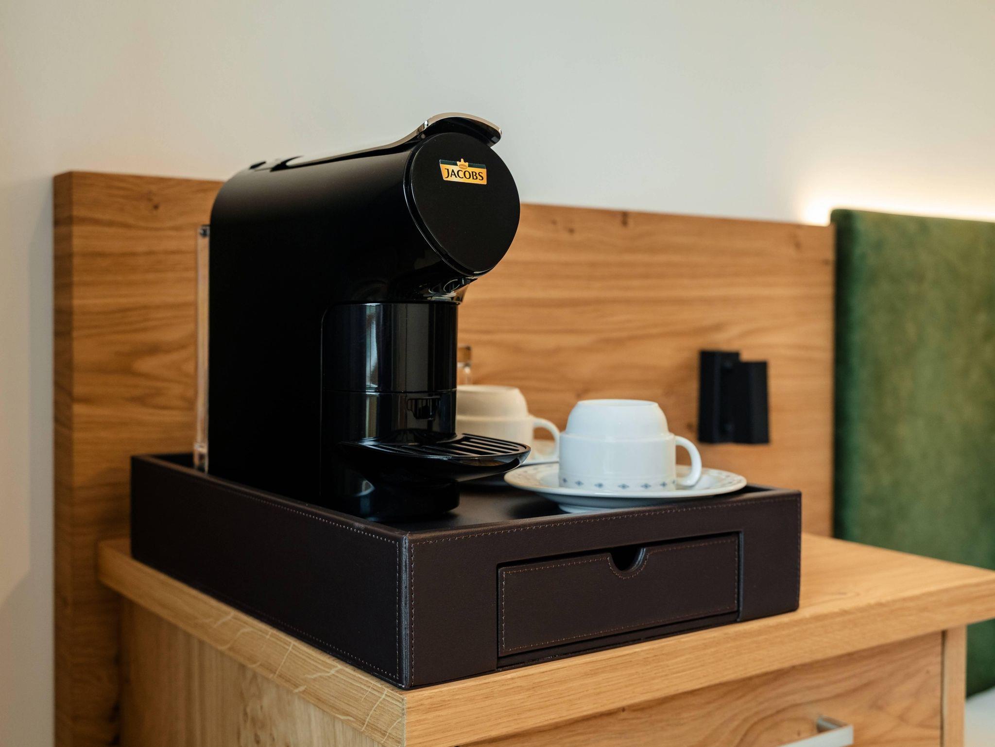 Einen kleinen Kühlschrank, Kapselkaffeemaschine und Heißwasser - die Erstausstattung ist inkl.