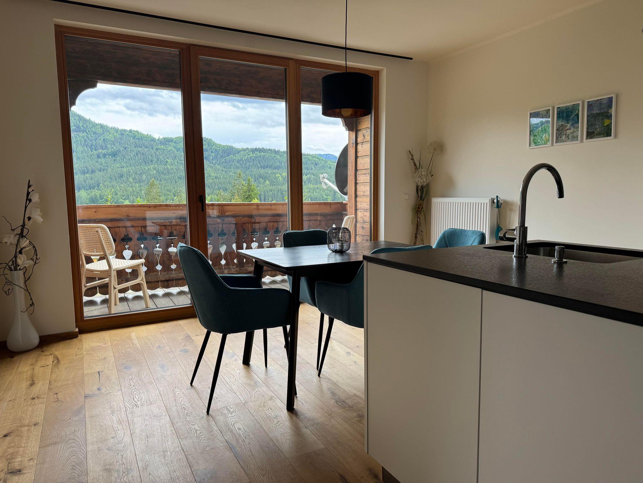 Die Wohnung verfügt über zwei Schlafzimmer mit je einem Doppelbett. Ein gemütlicher Wohnraum mit kuschligem Sofa, eine offene, bestens ausgestattete Küche, ein Essplatz mit Aussicht und ein komfortables Badezimmer bieten beste Voraussetzungen für einen schönen, erholsamen Urlaub.