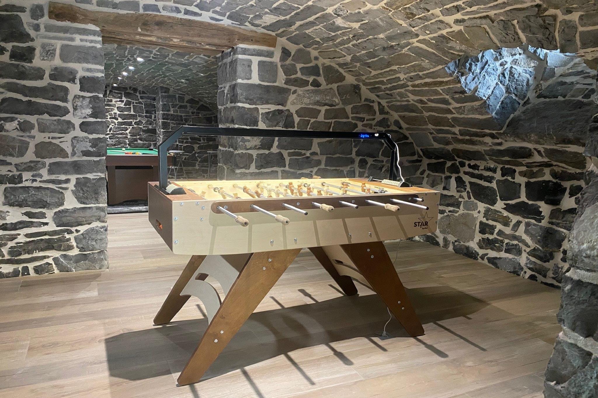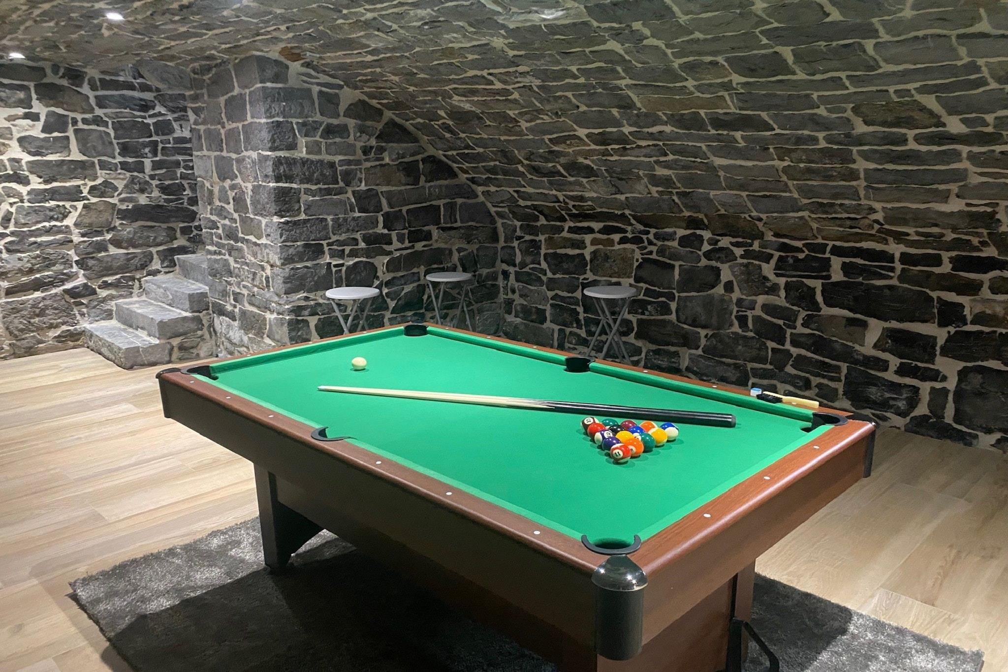 Dieses kürzlich renovierte Ferienhaus in Achet bietet mit seinen 4 Schlafzimmern einen gemütlichen, funktionalen Raum für bis zu 9 Gäste und ist somit ideal für Familien oder Gruppen. Der eingezäunte Garten, die Terrasse und der Grill laden zum Entspannen im Freien und gemeinsamen Essen unter dem Sternenhimmel ein. Der nur 100 Meter entfernte Fluss Bocq bietet eine ruhige Kulisse für Morgen- oder Abendspaziergänge. Im Inneren erwarten Sie ein geräumiges Wohnzimmer mit Kamin, eine moderne offene Küche und ein Spielzimmer mit Glasboden – ein cleveres Design, mit dem Eltern ihre Kinder im Auge behalten können. Eine Hängematte lädt zu entspannten Nachmittagen ein, während der Bouleplatz und das Trampolin Spaß für Jung und Alt versprechen. Die Terrasse mit Gartenmöbeln lädt zum Sonnenbaden oder für einen ruhigen Abend ein. In der Nähe können Sie die Zitadelle von Dinant und das Schloss Vêves erkunden, die beide weniger als eine Autostunde entfernt sind, oder die Höhlen der Region erkunden, um einen Blick auf die Naturwunder Belgiens zu werfen. Genießen Sie italienische Köstlichkeiten im Les délices d'Italie – Cantina italiana, asiatische Fusion-Küche im Le Bonheur oder regionale belgische Küche in der La Brasserie Du Five Nations. Dieses Haus ist ein idealer Ausgangspunkt für Abenteuer und Entspannung.