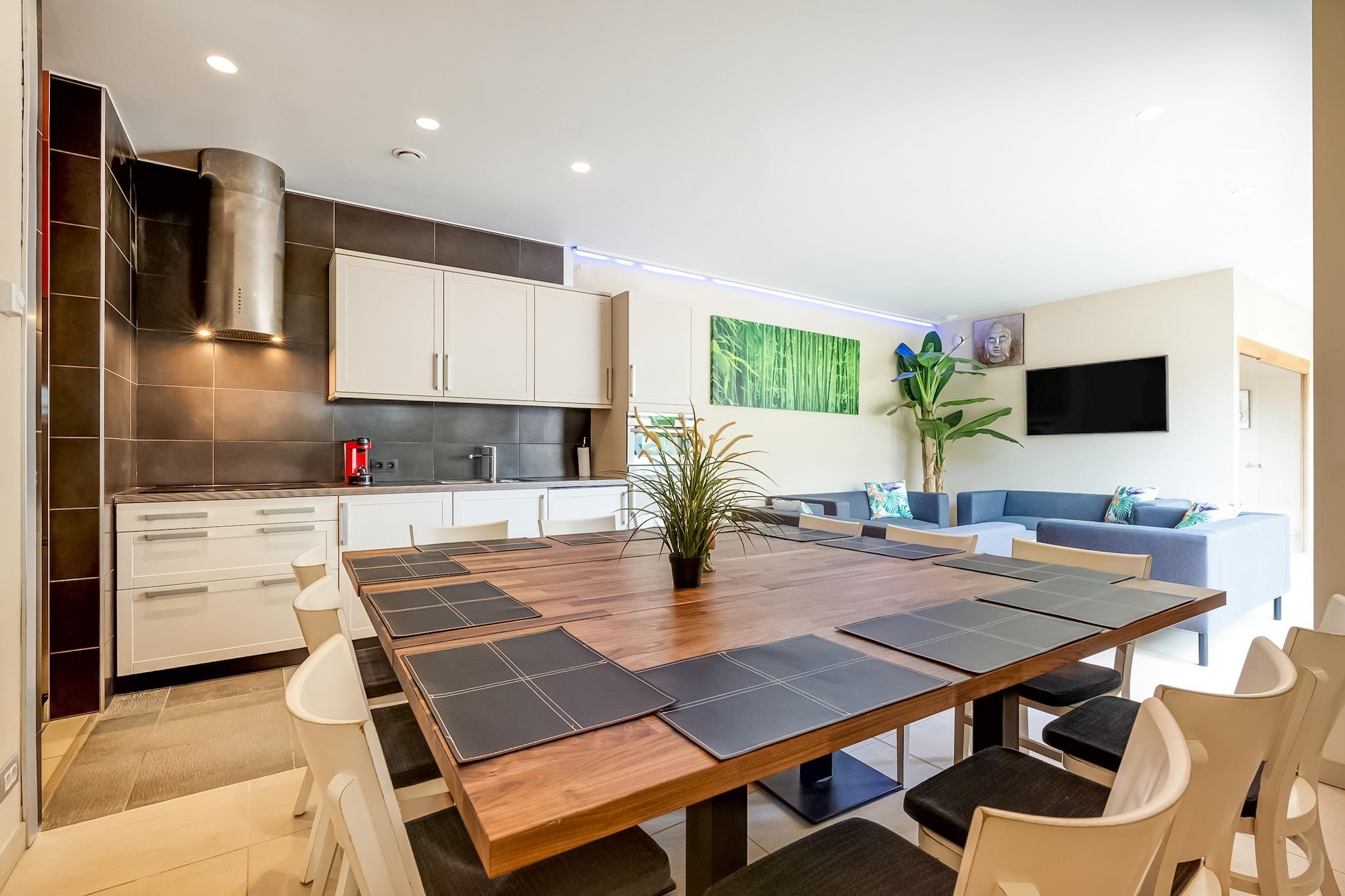 Wellness & Komfort in einzigartiger Umgebung Dieses wunderschön renovierte Ferienhaus in Avelgem, einst ein privates Erholungszentrum, bietet heute einen ruhigen Rückzugsort für bis zu sechs Erwachsene und zwei Kinder. Genießen Sie luxuriöse Wellnesseinrichtungen wie einen privaten Pool, eine wohltuende Sauna, ein Außensprudelbad und Massageduschen – alles für die Erholung von Körper und Seele. Mit gemütlichen Innenräumen, einer voll ausgestatteten Küche, Streaming-Diensten und liebevollen Details wie einem Hochstuhl und einem Kinderbett ist dieses Haus ideal für einen erholsamen Urlaub mit Familie oder Freunden. Abenteuer in Westflandern In ruhiger und dennoch verkehrsgünstiger Lage sind Sie nur eine kurze Autofahrt von den kulturellen Highlights Kortrijk, Ronse, Tournai und Waregem entfernt. Outdoor-Fans genießen direkten Zugang zu malerischen Wander-, Rad- und Mountainbike-Strecken – darunter auch die Strecken der berühmten Flandern-Rundfahrt. Unternehmen Sie eine entspannte Haz-Bootsfahrt auf der Schelde oder erkunden Sie den ruhigen Bossuit-Kortrijk-Kanal. Roller können Sie in der Nähe mieten und so die umliegende Landschaft auf unterhaltsame und flexible Weise erkunden. Entspannen, Essen & Abschalten Entspannen Sie auf der privaten Terrasse mit stilvollem Lounge-Set, Sonnenschirm und Gartenmöbeln – perfekt für sonnige Nachmittage oder einen ruhigen Abend unter der Markise. Die Villa verfügt über eine voll ausgestattete Küche für selbst gekochte Mahlzeiten. In den umliegenden Städten finden Sie außerdem reizvolle Restaurants mit regionaler belgischer Küche. Bitte beachten Sie: Haustiere sind nicht erlaubt. Ein später Check-out ist auf Anfrage und gegen Aufpreis möglich.