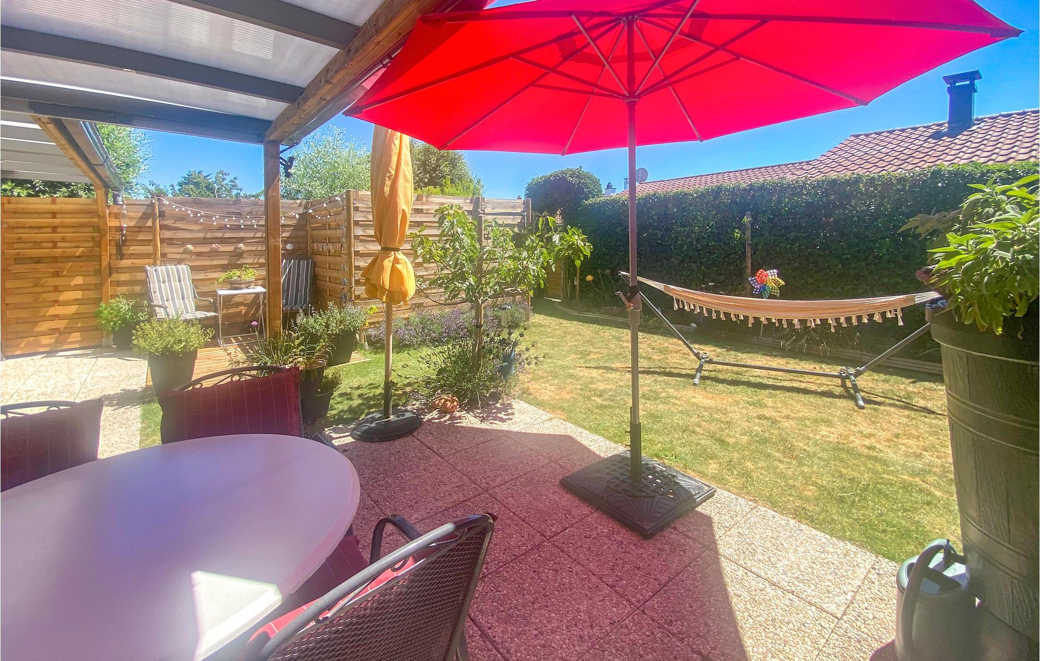 Aufgrund der vielen verfügbaren Einrichtungen eignet sich dieses Ferienhaus ganzjährig für einen komfortablen Urlaub mit der ganzen Familie. Das Ferienhaus befindet sich in einer gepflegten Residenz mit beheiztem Außenpool und Spielplatz. Das Wohnzimmer ist hübsch eingerichtet mit Sitzecke, Fernseher, Pelletofen und Klimaanlage. Die Küche ist mit vielen Geräten ausgestattet, darunter ein Geschirrspüler, ein Backofen, eine Mikrowelle und eine Senseo-Kaffeemaschine. Draußen können Sie den schönen Garten mit teilweise überdachter Terrasse, Gartenmöbeln, Sonnenliegen, Hängematte und Grill genießen. Haustiere sind herzlich willkommen, der Garten ist komplett eingezäunt.