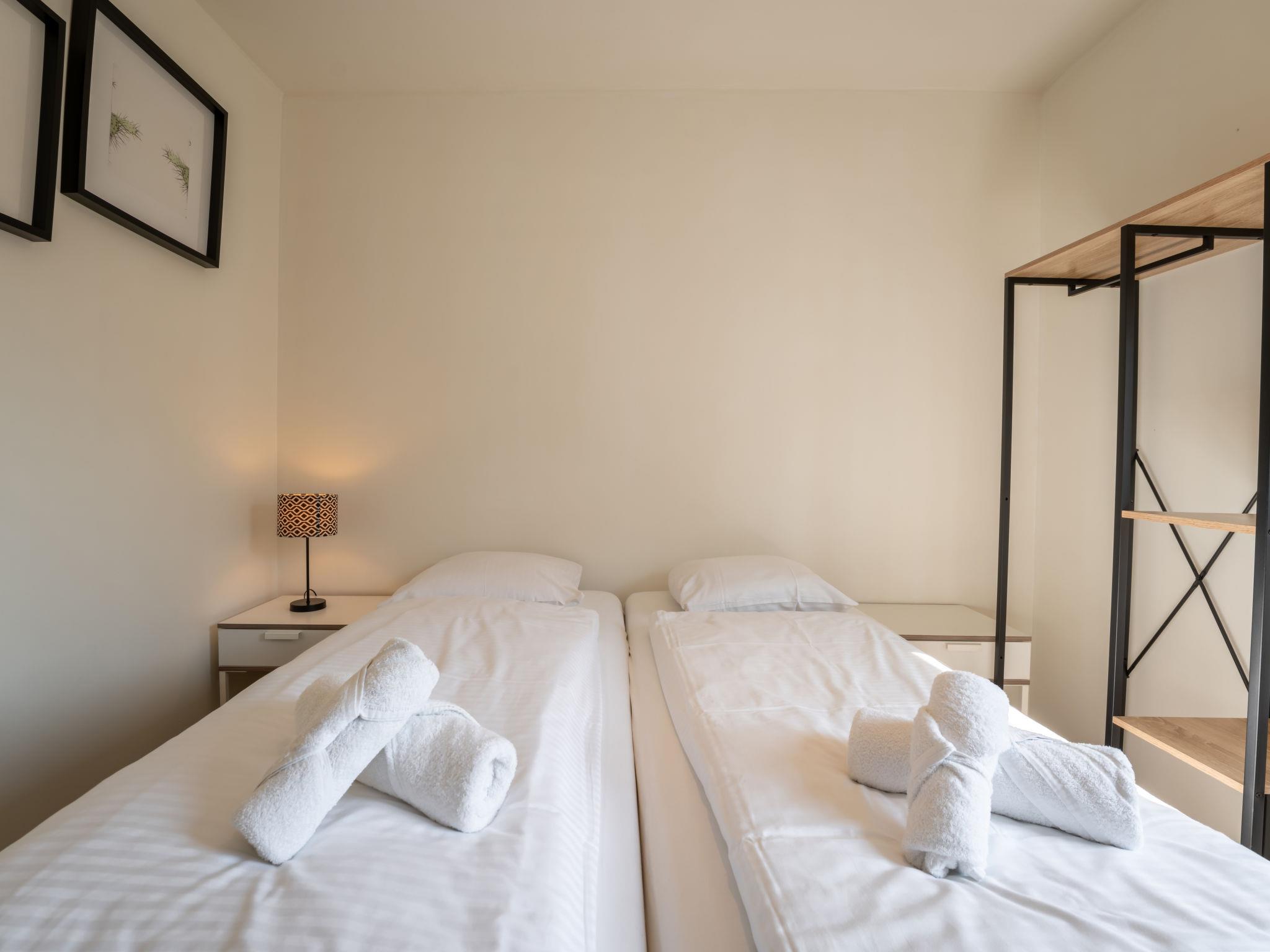 "New Dahlia 6 with parking", 3-Zimmer-Haus 44 m2. Komfortabel und modern eingerichtet: offenes Wohn-/Esszimmer mit Esstisch, sep. WC, Digital-TV, Internationale TV-Sender und Klimaanlage. Ausgang zur Terrasse. 1 Doppelzimmer mit 1 Bett (160 cm, Länge 200 cm), Dusche/WC. 1 Doppelzimmer mit 2 Betten (80 cm, Länge 200 cm), Dusche. Offene Küche (Geschirrspüler, 4 Induktionskochplatten, Toaster, Wasserkocher, Tiefkühler, elektrische Kaffeemaschine, Kombinationsmikrowelle). Heizung. Terrassenmöbel. Zur Verfügung: Haartrockner. Internet (WLAN, gratis). Parkplatz (1 Auto). Bitte beachten: Nichtraucher-Haus. Maximal 1 Haustier/Hund erlaubt. TV nur NL, FR. Rauchmelder, Feuerlöscher.