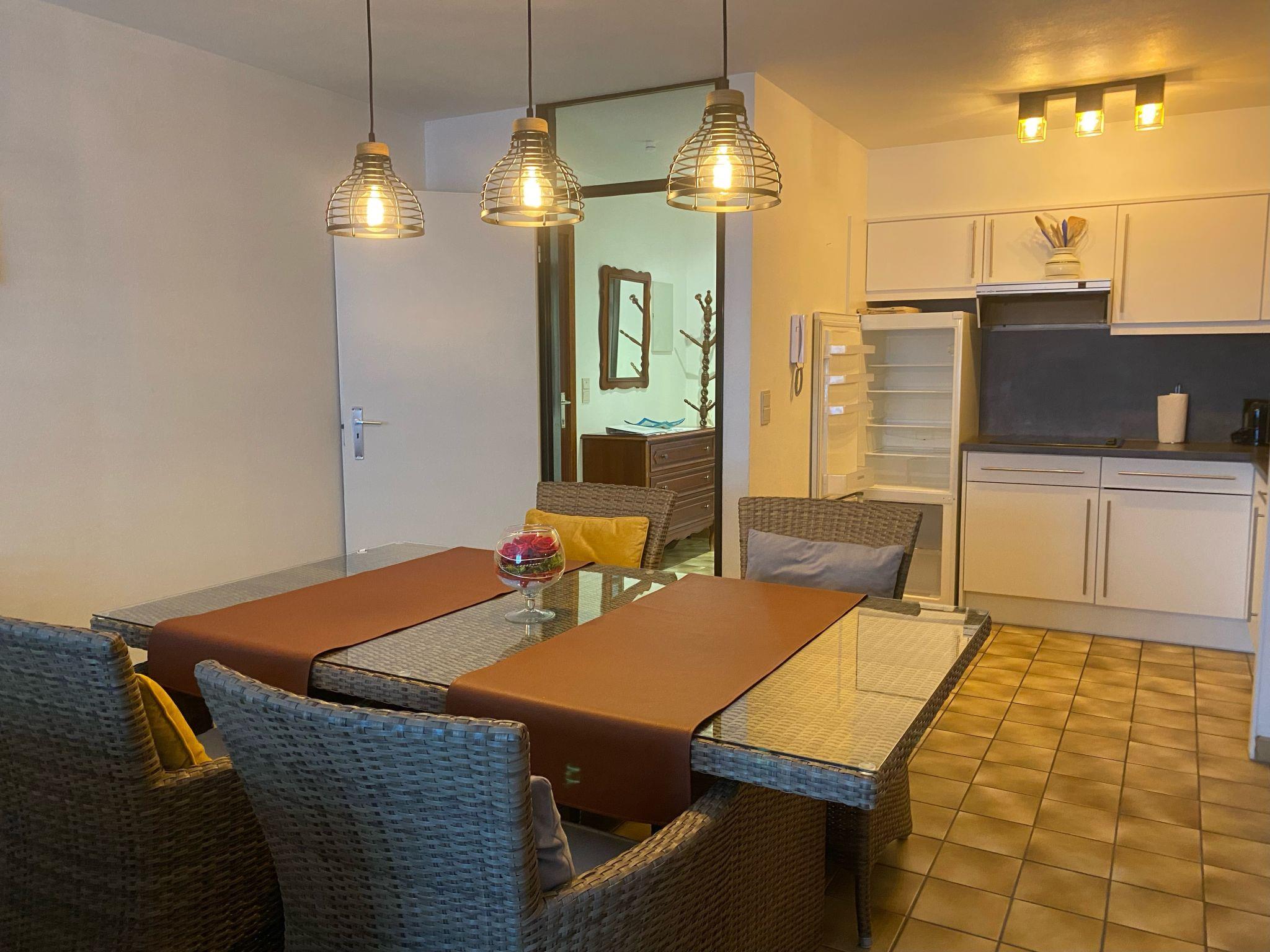 "Astrid 103 with balcony", 2-Zimmer-Wohnung 60 m2 im 1. Stock. Objekt geeignet für 2 Erwachsene + 2 Kinder. Zweckmässig eingerichtet: Eingang mit sep. WC und E-Heizung. Wohn-/Esszimmer mit Esstisch, TV, Internationale TV-Sender, Flachbildschirm, Radio, CD und DVD. 1 Zimmer mit 1 x 2 Etagenbetten (90 cm, Länge 200 cm), 1 Doppelbett (140 cm, Länge 200 cm). Offene Küche (Geschirrspüler, 4 Glaskeramikplatten, Toaster, Wasserkocher, Mikrowelle, elektrische Kaffeemaschine). Dusche. Heizung. 2 Balkone 3 m2, Südwestlage und Nordostlage. Balkonmöbel. Zur Verfügung: Internet (WLAN, gratis). Maximal 1 Haustier/Hund erlaubt. LD382881