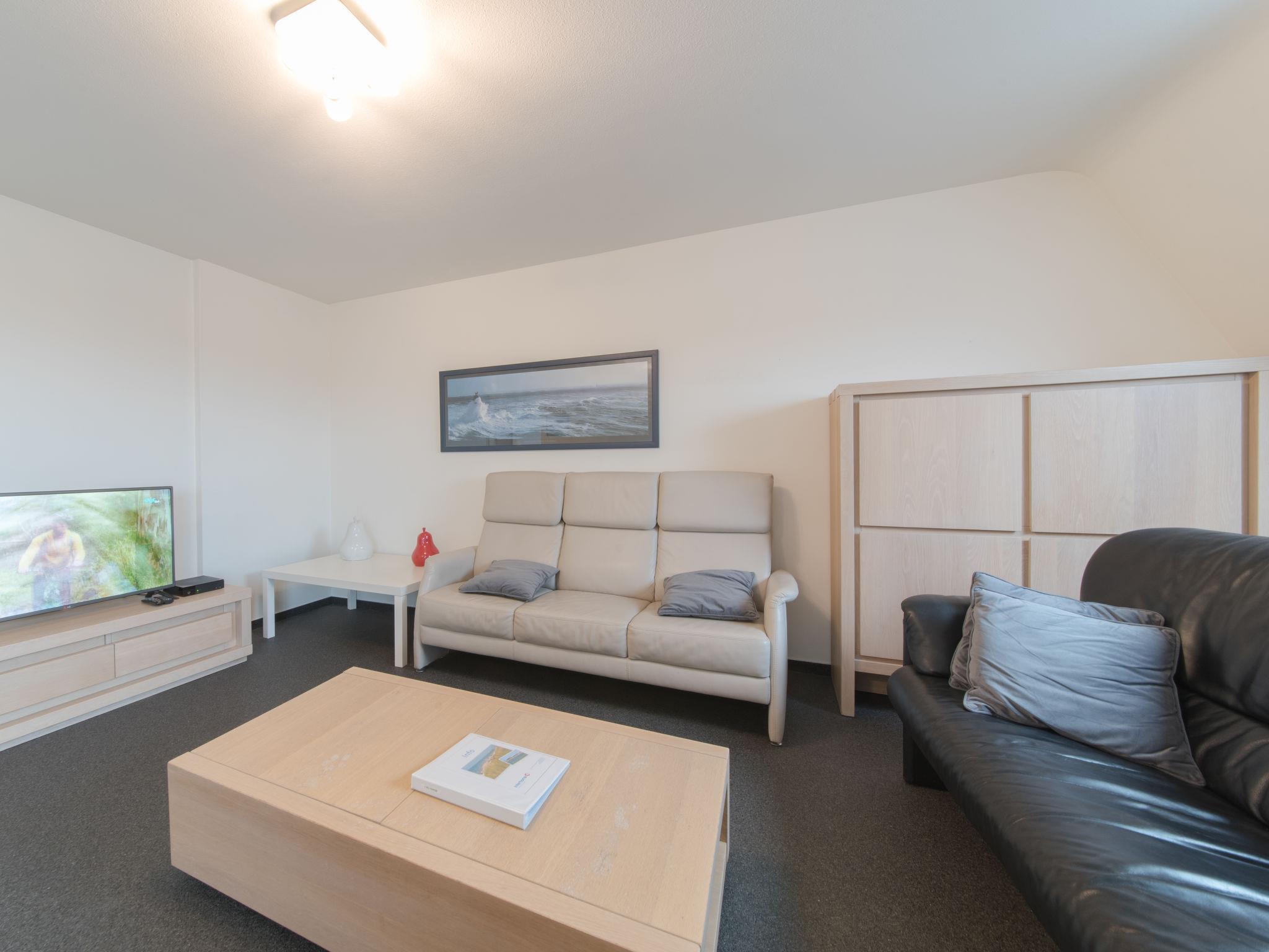 "Strandhuis with balcony", 3-Zimmer-Wohnung 106 m2 im 5. Stock. Komfortabel eingerichtet: Eingang mit sep. WC und E-Heizung. Offenes Wohn-/Esszimmer mit Esstisch, Digital-TV und E-Heizung. Ausgang zum Balkon. Offene Küche (Backofen, Geschirrspüler, 4 Glaskeramikplatten, Mikrowelle, Tiefkühler, elektrische Kaffeemaschine). Obergeschoss: 1 grosses Doppelzimmer mit 1 Doppelbett (160 cm, Länge 200 cm). 1 grosses Zimmer mit 3 Betten (90 cm, Länge 200 cm). Bad/Dusche/WC, Doppelwaschbecken. Boiler (250 Liter). Balkon 5 m2, Nordwestlage. Sicht auf das Meer. Zur Verfügung: Internet (WLAN, gratis). Bitte beachten: Nichtraucher-Haus. LD378641