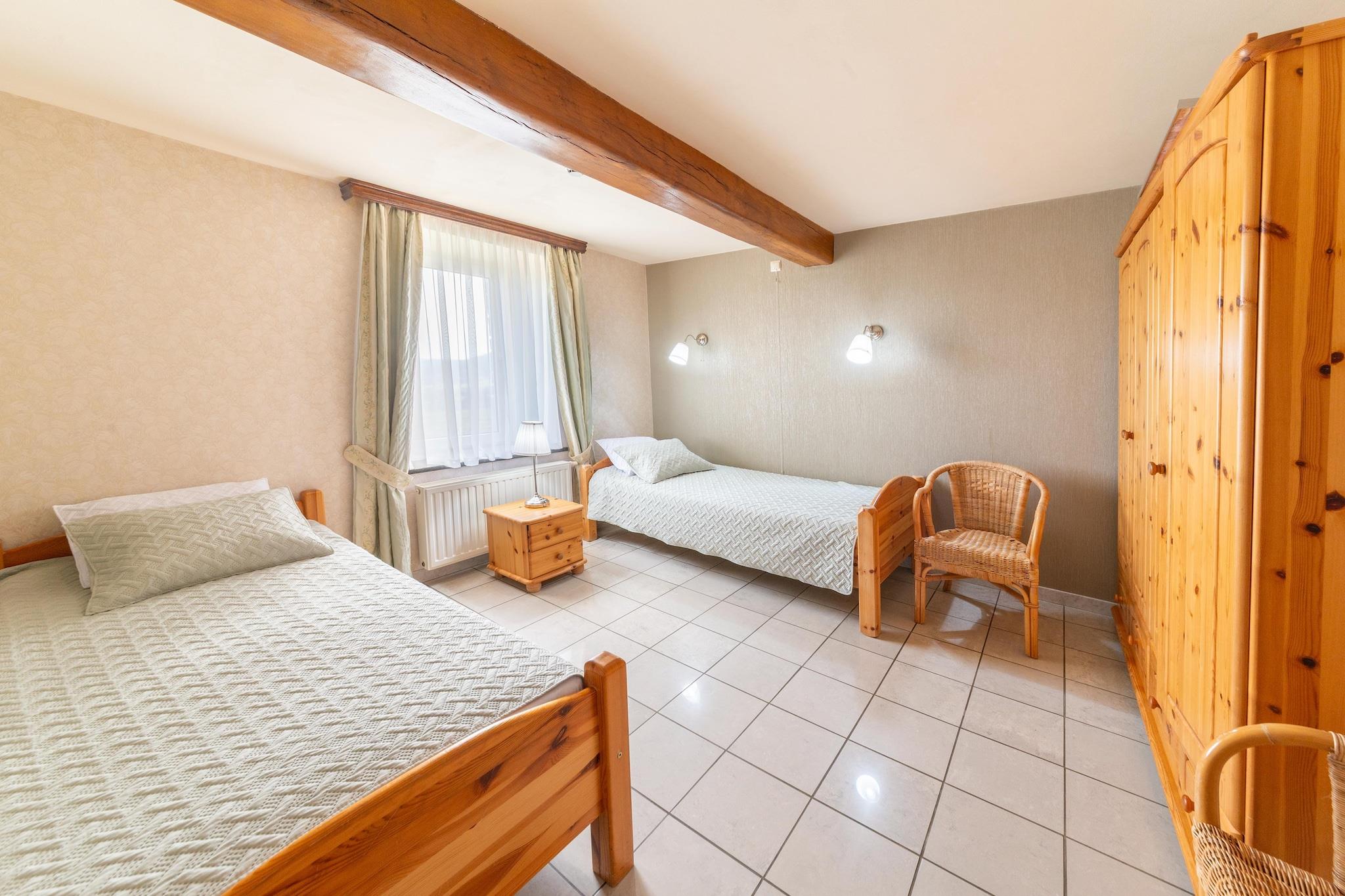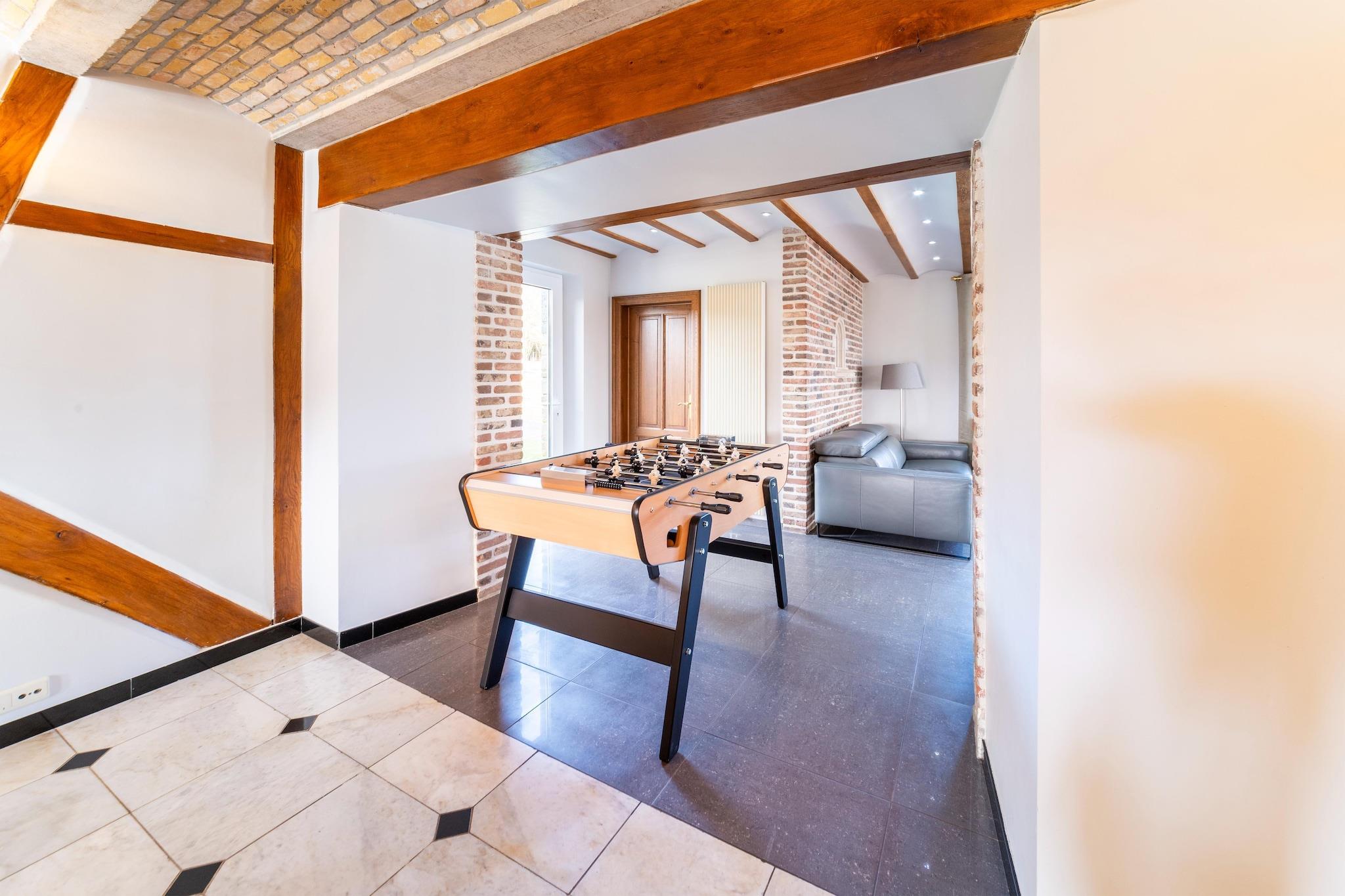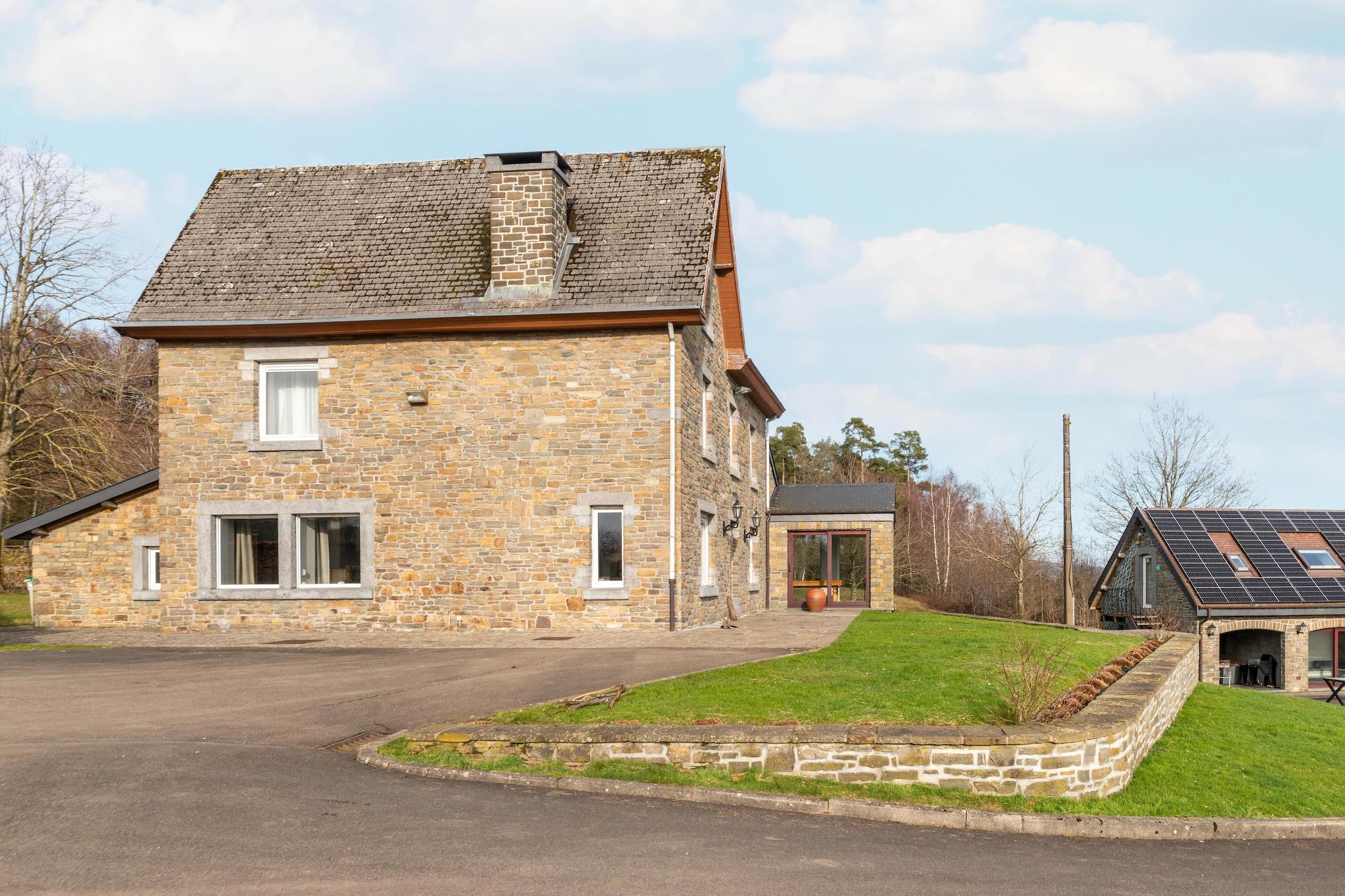 Dieses geräumige Ferienhaus mit 7 Schlafzimmern in Chevron ist ideal für größere Gruppen oder Familien mit bis zu 20 Personen. Genießen Sie einen privaten Pool, eine Sauna und ein Solarium sowie einen möblierten Garten mit Grillplatz für entspannte Nachmittage. Kostenloses WLAN, Zentralheizung und ein Kaminofen sorgen für ganzjährigen Komfort. Nur 100 m vom Wald entfernt, ist das Haus ideal zum Wandern und Radfahren. Ein See in 10 km Entfernung bietet sich für Tagesausflüge an. Das Stadtzentrum (5 km) mit seinen Geschäften und seinem lokalen Charme ist 12 km entfernt. Öffentliche Verkehrsmittel erreichen Sie nach 12 km. Im Haus erwarten Sie Billard, Tischtennis, ein Kicker-Tischfußball, eine Boulebahn und Spielgeräte für Kinder. Zwei voll ausgestattete Küchen auf separaten Etagen, eine Waschmaschine und ein Wäschetrockner bieten zusätzlichen Komfort. Ob Sie am Pool sonnenbaden oder gemeinsam essen gehen möchten – dieses Haus bietet einen komfortablen und abwechslungsreichen Aufenthalt in den belgischen Ardennen. Hinweis: Der Pool ist nur vom 15. Mai bis zum letzten Septemberwochenende geöffnet.