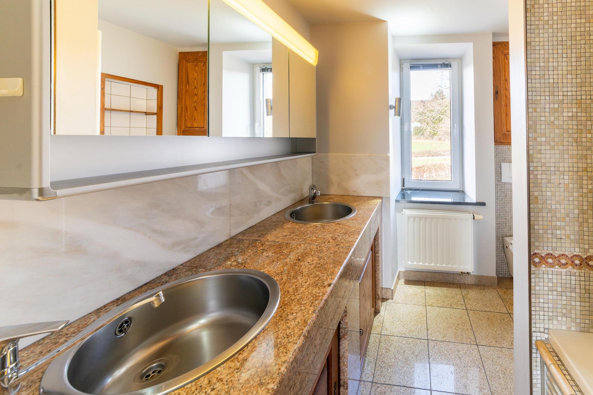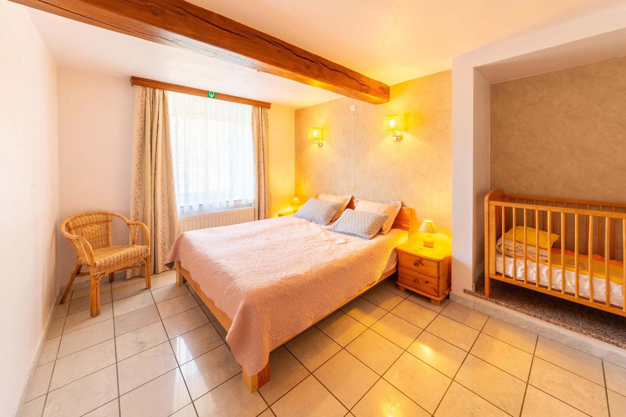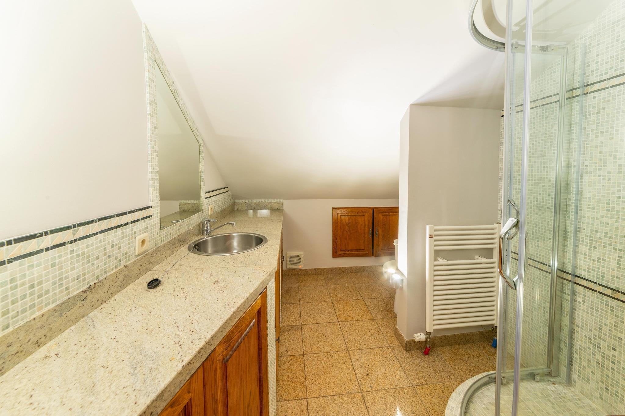 Dieses geräumige Ferienhaus mit 7 Schlafzimmern in Chevron ist ideal für größere Gruppen oder Familien mit bis zu 20 Personen. Genießen Sie einen privaten Pool, eine Sauna und ein Solarium sowie einen möblierten Garten mit Grillplatz für entspannte Nachmittage. Kostenloses WLAN, Zentralheizung und ein Kaminofen sorgen für ganzjährigen Komfort. Nur 100 m vom Wald entfernt, ist das Haus ideal zum Wandern und Radfahren. Ein See in 10 km Entfernung bietet sich für Tagesausflüge an. Das Stadtzentrum (5 km) mit seinen Geschäften und seinem lokalen Charme ist 12 km entfernt. Öffentliche Verkehrsmittel erreichen Sie nach 12 km. Im Haus erwarten Sie Billard, Tischtennis, ein Kicker-Tischfußball, eine Boulebahn und Spielgeräte für Kinder. Zwei voll ausgestattete Küchen auf separaten Etagen, eine Waschmaschine und ein Wäschetrockner bieten zusätzlichen Komfort. Ob Sie am Pool sonnenbaden oder gemeinsam essen gehen möchten – dieses Haus bietet einen komfortablen und abwechslungsreichen Aufenthalt in den belgischen Ardennen. Hinweis: Der Pool ist nur vom 15. Mai bis zum letzten Septemberwochenende geöffnet.