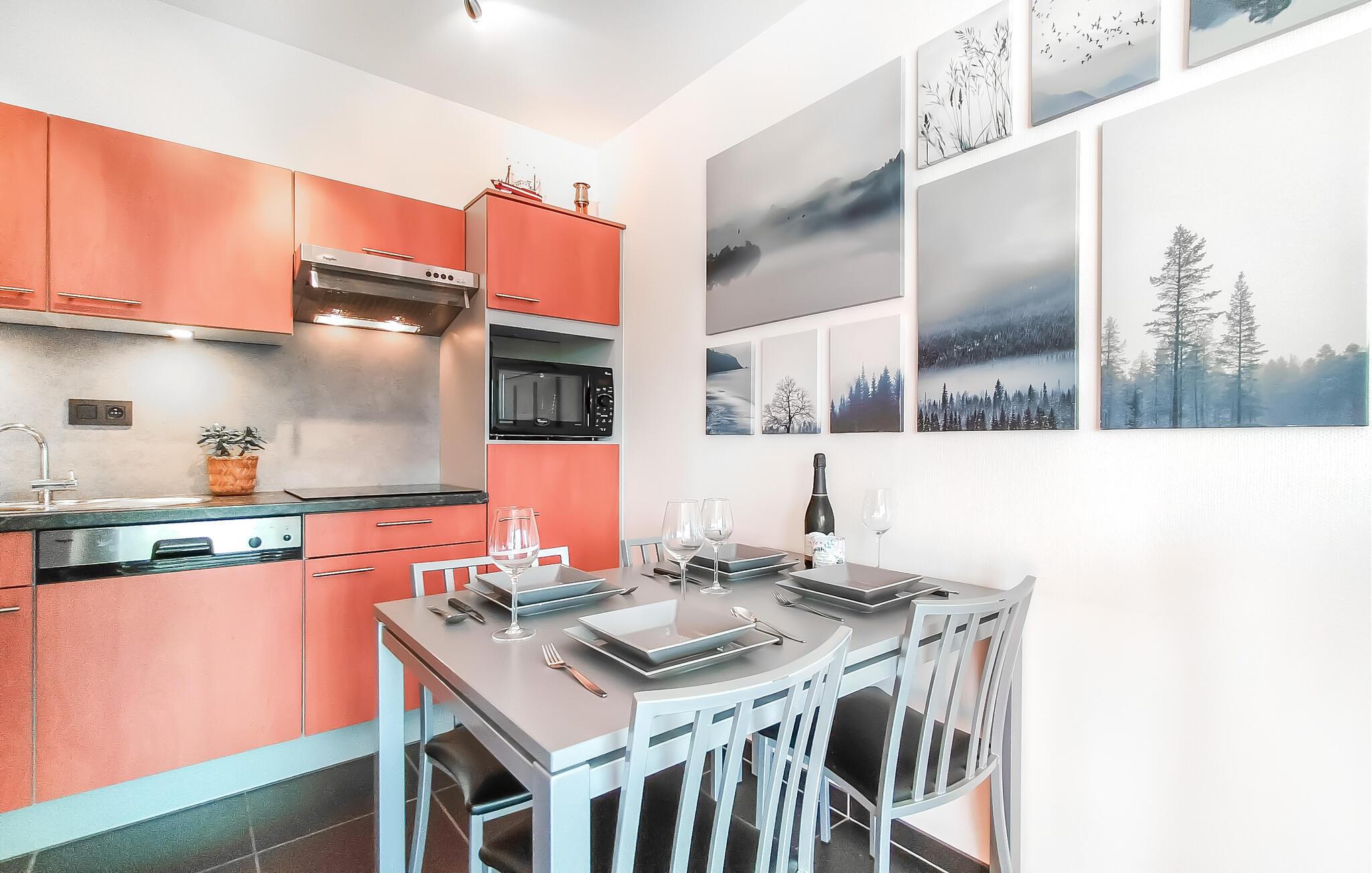 Willkommen in dieser Wohnung, die Sie und Ihre kleine Familie begeistern wird. Die Unterkunft besticht durch eine moderne Einrichtung und angenehme Farben. Vor allem die fast bodentiefen Panoramafenster werden Sie beeindrucken. Bereiten Sie gemeinsam ein leckeres Frühstück zu, das Sie mit Blick auf den grünen Park einnehmen können.