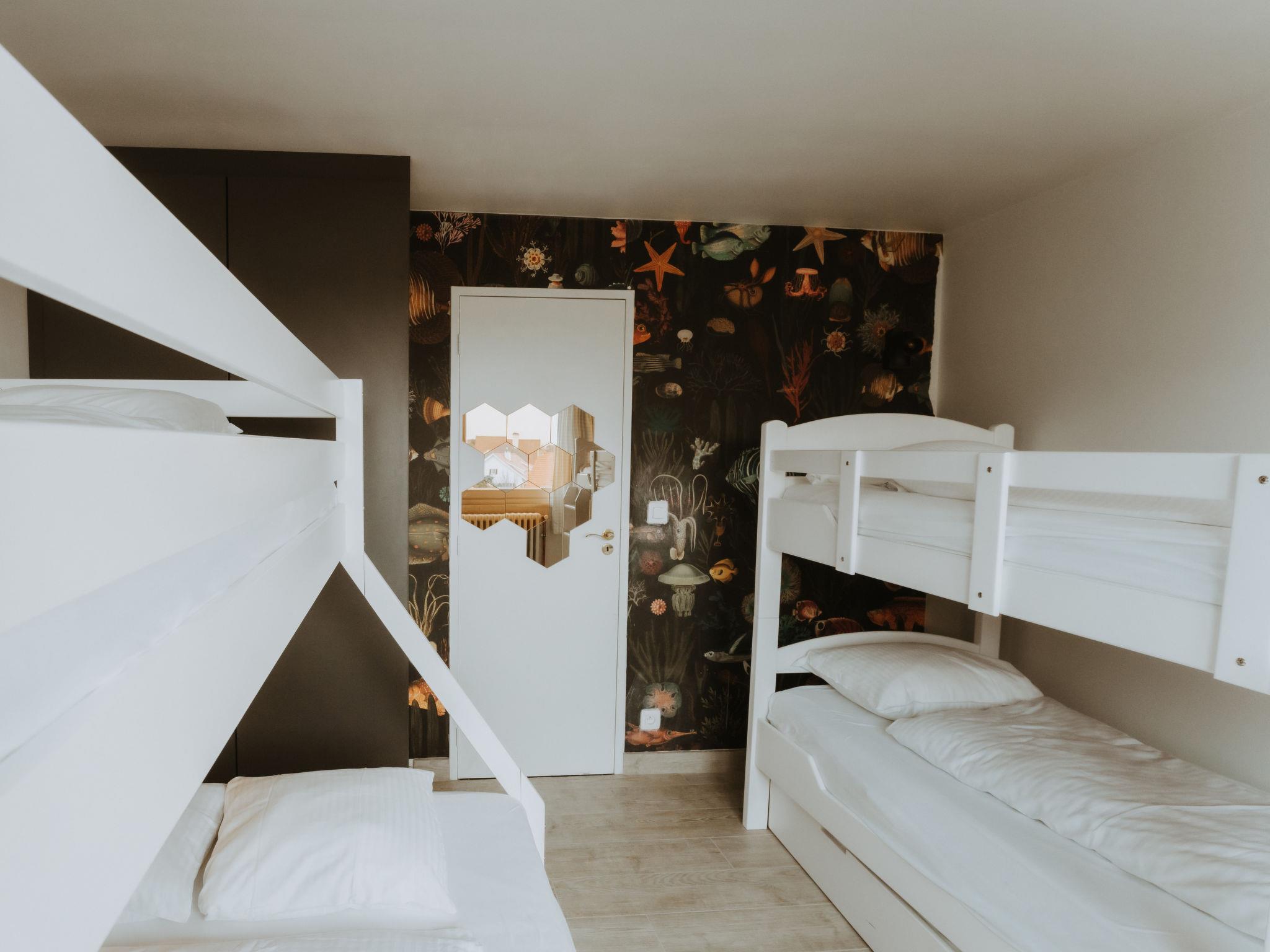 "Residence Du Parc with seaview", 4-Zimmer-Wohnung im Dachgeschoss. Objekt geeignet für 4 Erwachsene + 4 Kinder. Geräumig und hell, teilweise renoviert im Jahre 2022, modern und geschmackvoll eingerichtet: Eingang mit sep. WC. 1 Doppelzimmer mit 1 Doppelbett und Bad/WC. 1 Doppelzimmer mit 1 Doppelbett. 1 Kinderzimmer mit 6 Schlafmöglichkeiten. Küche (Backofen, Geschirrspüler, 4 Induktionskochplatten, Toaster, Wasserkocher, Mikrowelle, Tiefkühler, elektrische Kaffeemaschine). Dusche. Heizung. Herrliche Sicht auf das Meer. Zur Verfügung: Waschmaschine, Haartrockner. Internet (Wireless LAN, gratis). Bitte beachten: geeignet für Familien. Nichtraucher-Haus. Rauchmelder, Feuerlöscher.