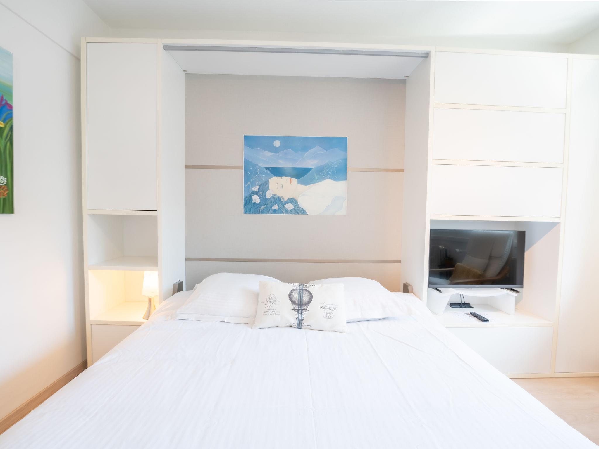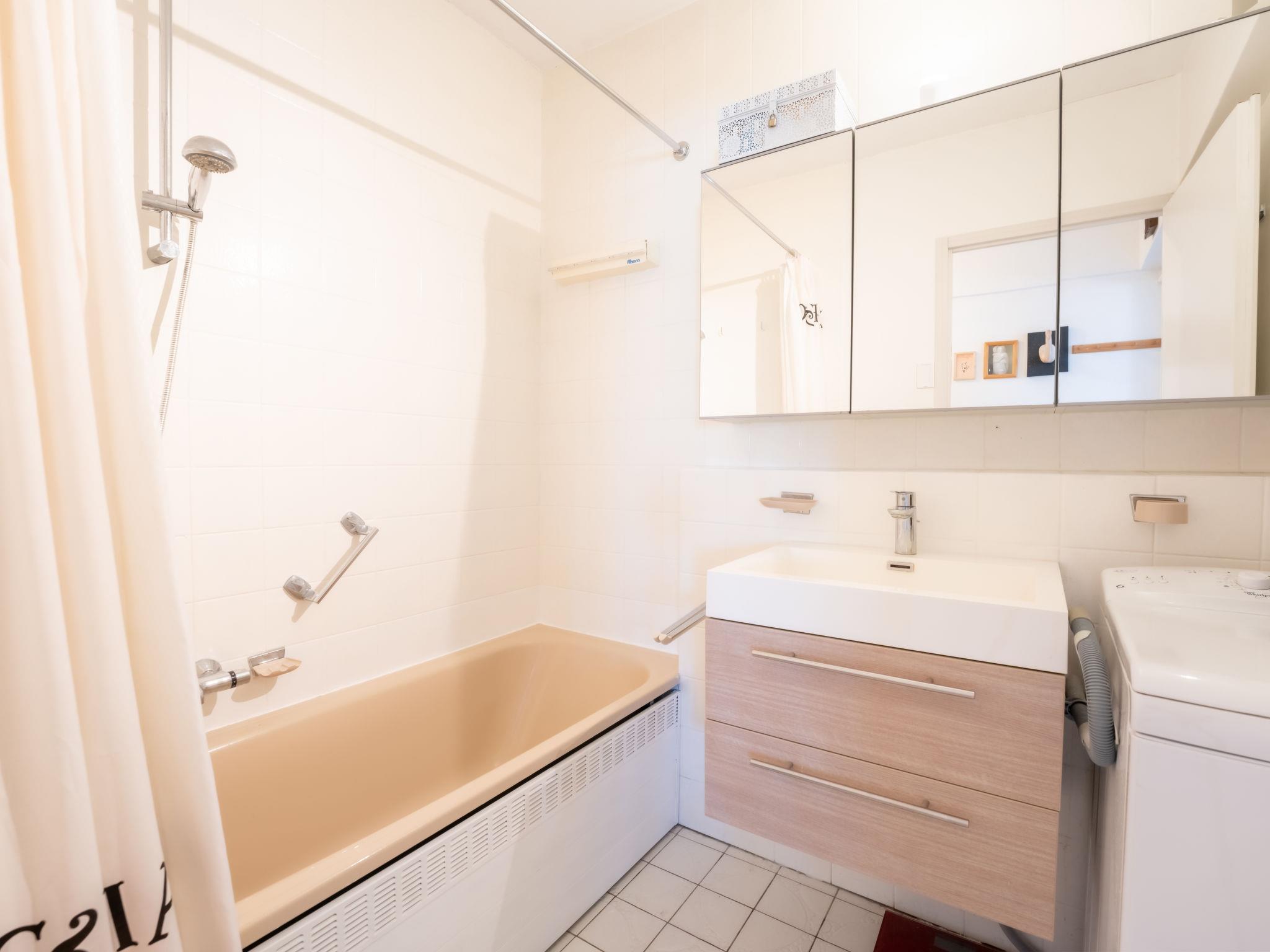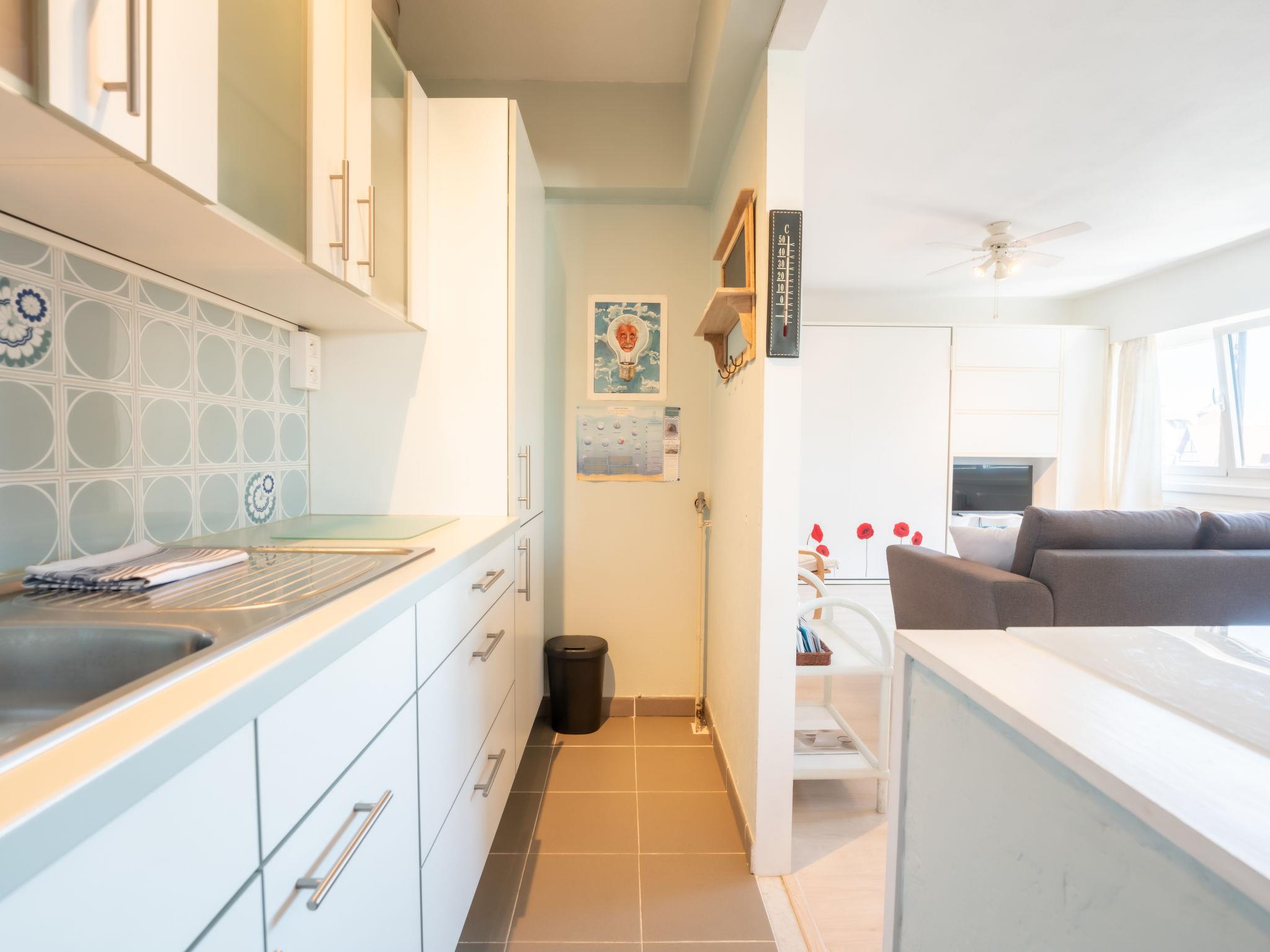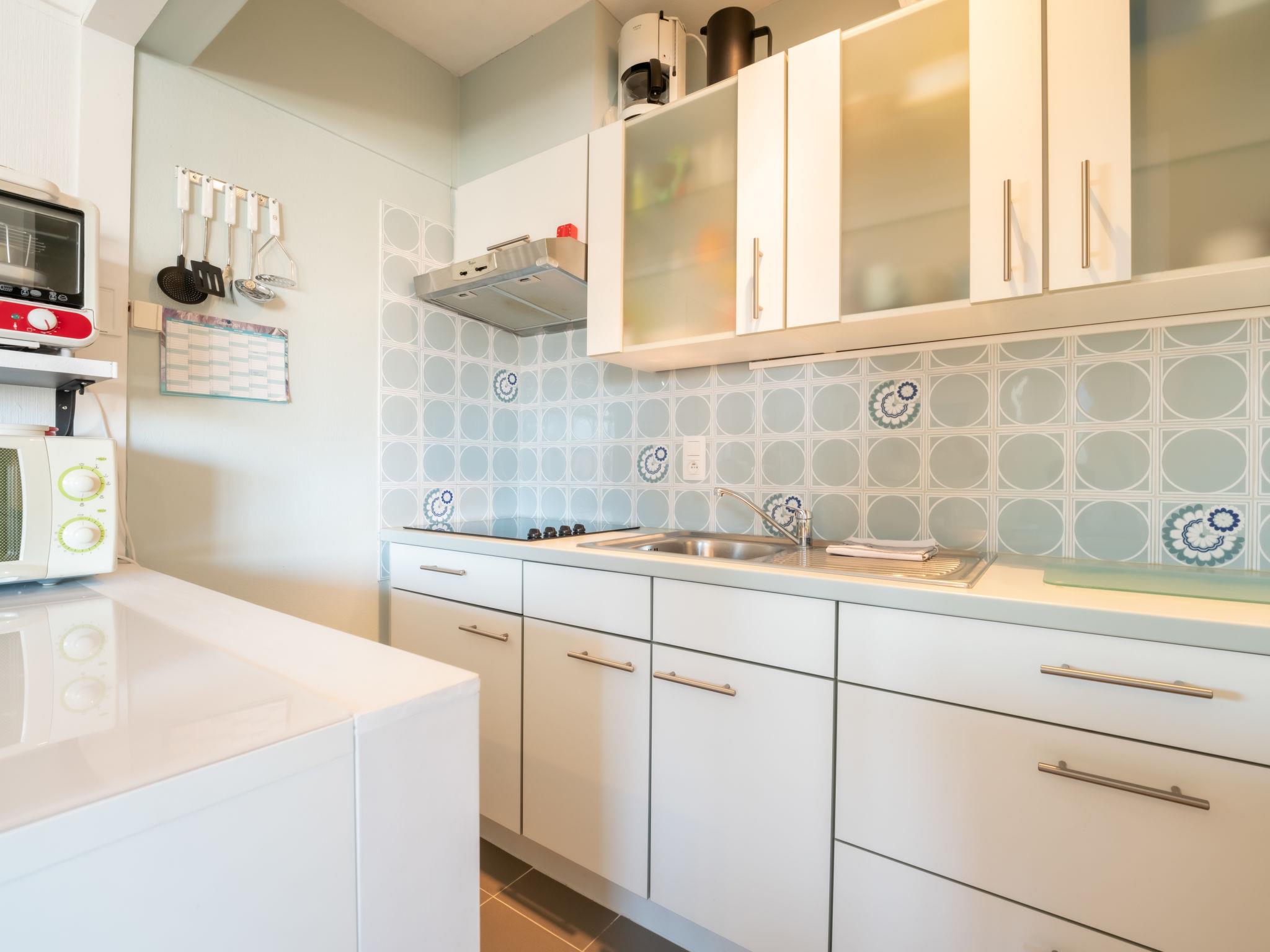 "Douceur de vivre nearby beach", 1-Zimmer-Studio 45 m2 im 4. Stock. Objekt geeignet für 2 Erwachsene + 1 Kind. Zweckmässig und gemütlich eingerichtet: Eingang mit sep. WC. Wohn-/Schlafzimmer mit 1 Diwanbett und 1 franz. Wandklappbett (1 x 160 cm, Länge 200 cm), Digital-TV, Internationale TV-Sender und Flachbildschirm. Offene Küche (Backofen, 4 Glaskeramikplatten, Toaster, Wasserkocher, Mikrowelle, elektrische Kaffeemaschine). Bad. Heizung. Zur Verfügung: Waschmaschine, Haartrockner. Internet (WLAN, gratis). Bitte beachten: geeignet für Familien. Nichtraucher-Haus. Maximal 1 Haustier/Hund erlaubt. Rauchmelder, Feuerlöscher.