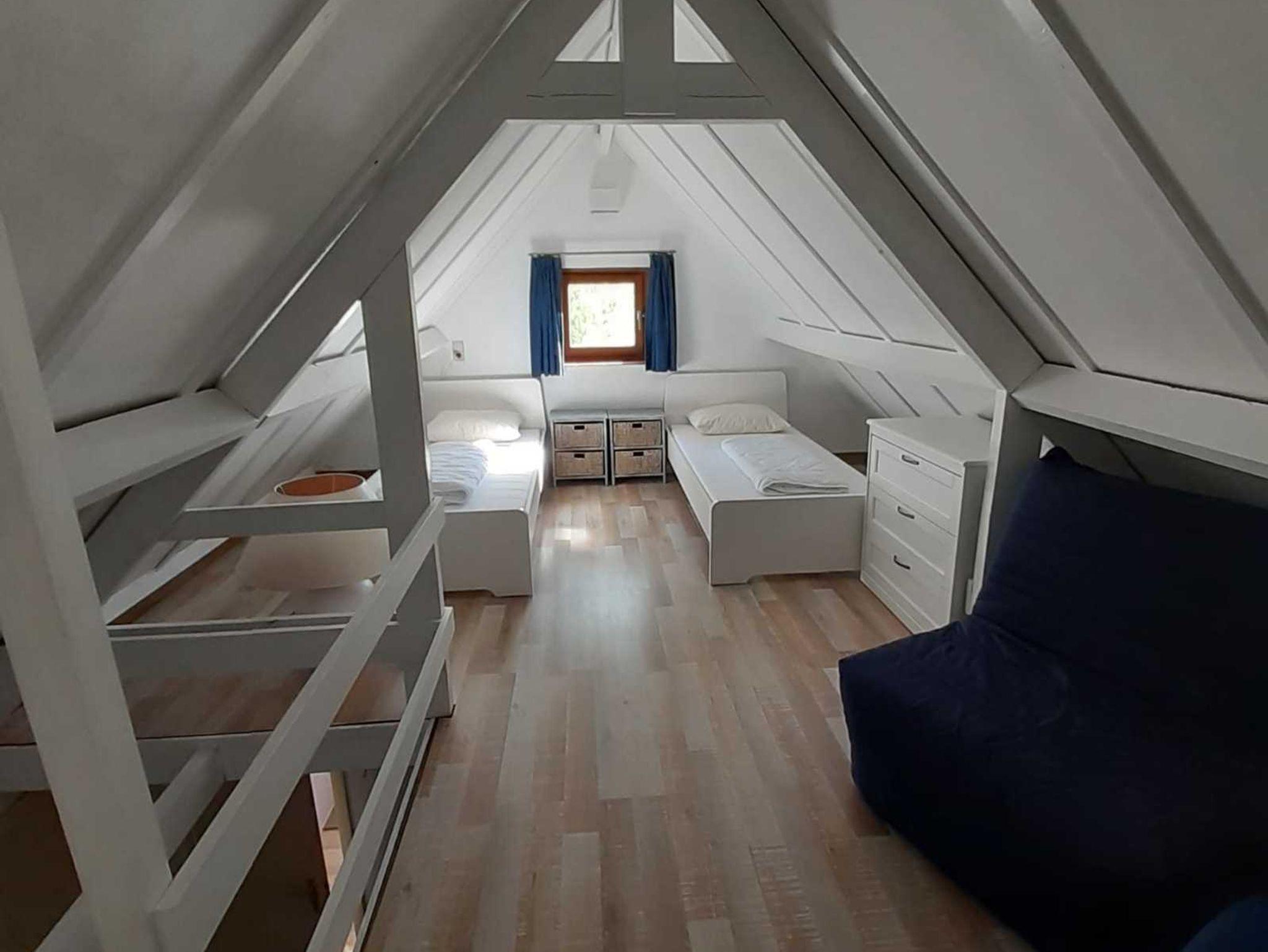 Die beiden Schlafzimmer sind jeweils mit zwei Einzelbetten (90 x 200cm) ausgestattet. Bettdecken und Kissen sind vorhanden; Bettwäsche muss jedoch selbst mitgebracht werden. Für Kinder bis 14 Jahre stehen zwei ausklappbare Sessel als Schlafgelegenheit zur Verfügung.
