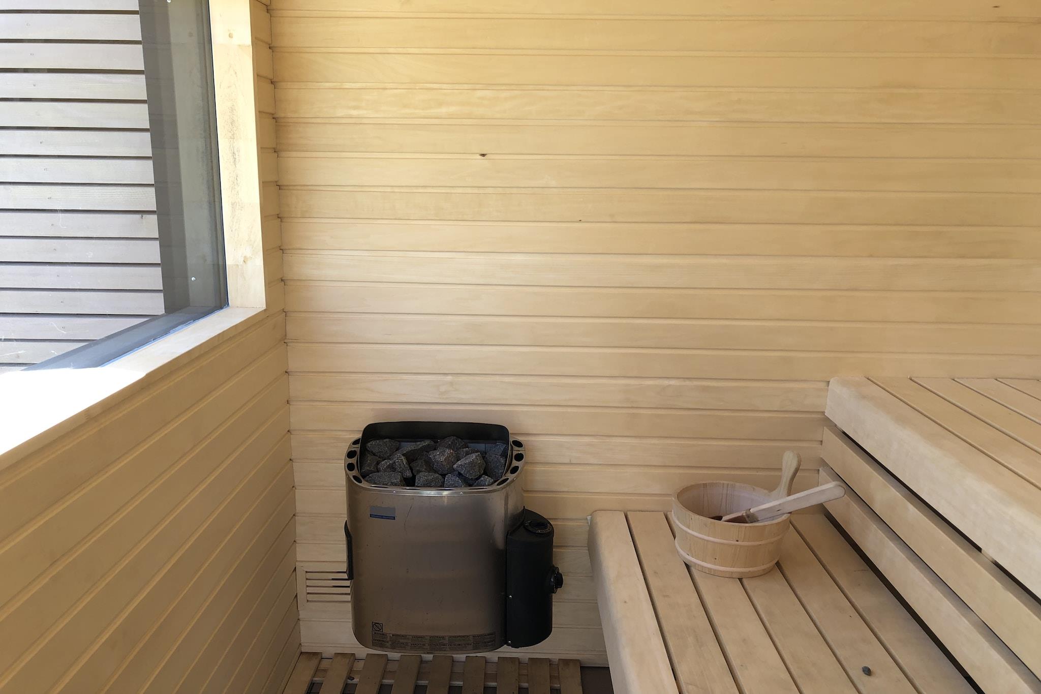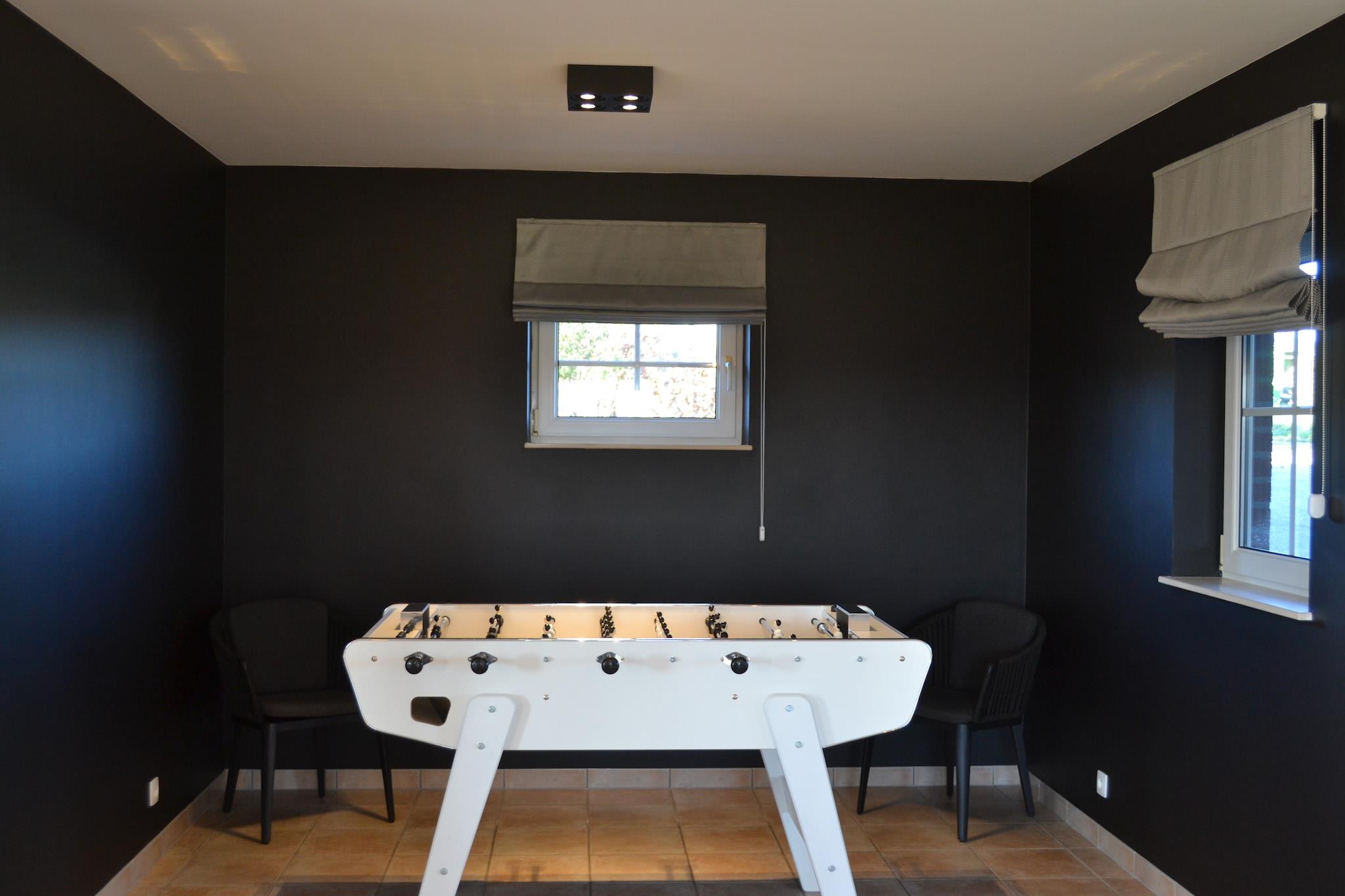 Parterre: (Wohnzimmer(TV(digital), Herd(Holz), Sitzecke, DVD-Spieler, Spielkonsole, Bar), offene Küche(Esstisch, Kochplatte(Ceranfeld), Wasserkocher, Kaffeemaschine(cups), Backofen, Kombi-Mikrowelle, Spülmaschine, Kühlschrank, Tiefkühlschrank), Spielzimmer(Tischfußball), Veranda(Sitzecke)) Zwischengeschoss: (Toilette, Waschraum(Trockner, Waschmaschine)) In der 1. Etage: (Schlafzimmer(2x Einzelbett(90 x 200 cm)), Schlafzimmer(Doppelbett(160 x 200 cm)), Schlafzimmer(Doppelbett(160 x 200 cm)), Schlafzimmer(2x Einzelbett(90 x 200 cm)), Schlafzimmer mit Badezimmer(2x Einzelbett, Dusche, Waschbecken), Badezimmer(Dusche, Waschbecken, Toilette), Badezimmer(Badewanne, Dusche, 2x Waschbecken)) Sauna(alleinige Nutzung), Heizung(Zentral), Terrasse(überdacht), Garten, Gartenmöbel, Grill, Parkplatz, Liegestühle, Sonnenschirm, Pool(alleinige Nutzung, erwärmt, geöffnet von Mai bis einschließlich Sep), Kinderbett