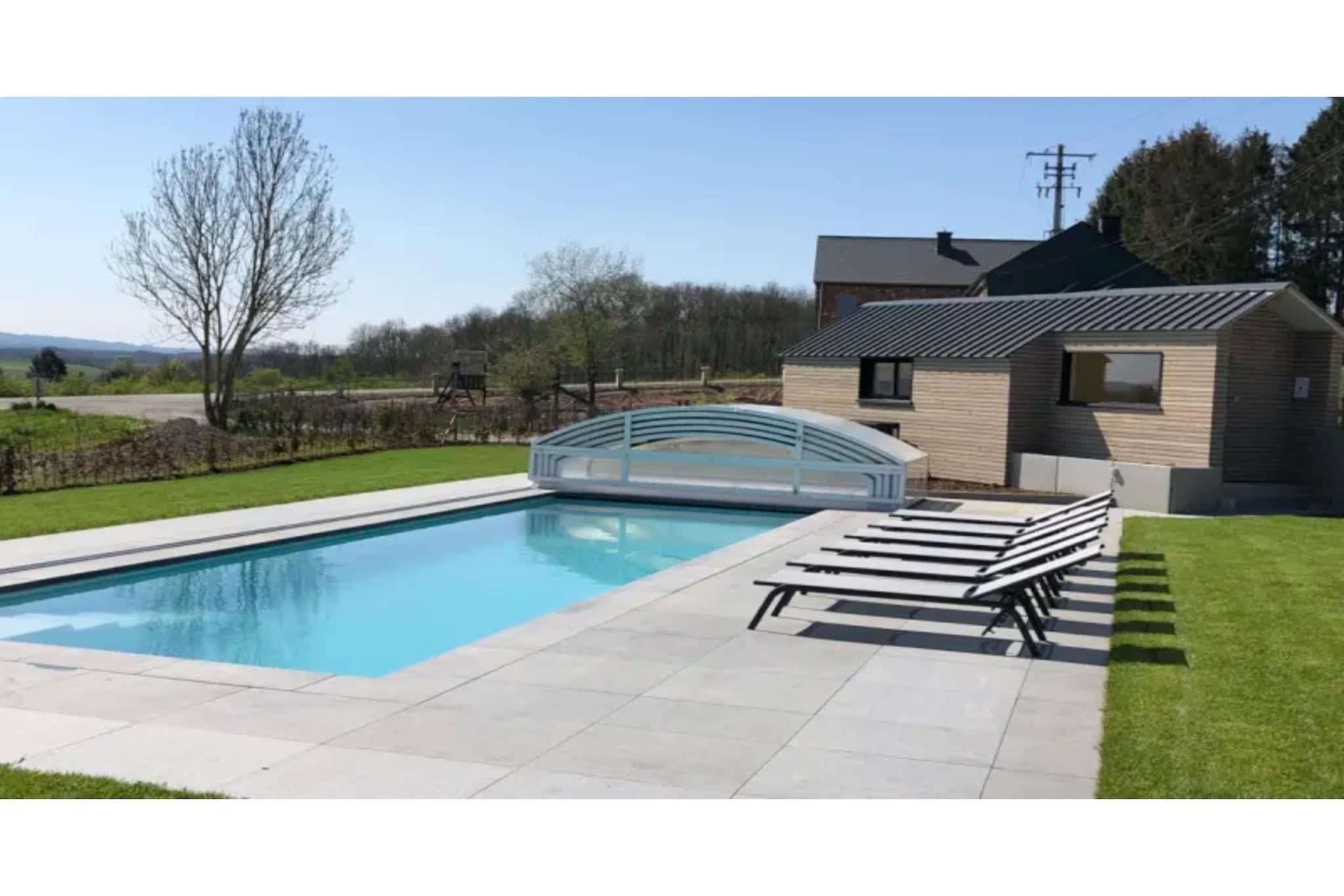 Dieses moderne Haus verfügt über einen beheizten Außenpool und einen außergewöhnlichen Blick auf das Tal von Durbuy. Es ist ideal für mehrere Familien. Die Immobilie befindet sich in einem ruhigen Dorf in der Nähe von Durbuy. Für diejenigen, die gutes Essen, eine reiche Geschichte, schöne Terrassen und hübsche Geschäfte zu schätzen wissen, ist Durbuy ein wahres Paradies. Die Region bietet zahlreiche Möglichkeiten zum Wandern, Mountainbiken, Kajakfahren auf der Ourthe und Reiten in den Wäldern. Die Unterkunft verfügt über ein geräumiges Wohnzimmer mit einer modernen Küche und einer separaten Ecke mit einem Tischfußballtisch. Das Schwimmbad ist von einer großen Terrasse mit Liegestühlen umgeben und von Mai bis ende September geöffnet. Entspannen Sie sich in der Sauna oder setzen Sie sich in den schönen Garten, der mit stimmungsvollen Möbeln ausgestattet ist. Parkplätze sind an der Unterkunft vorhanden.