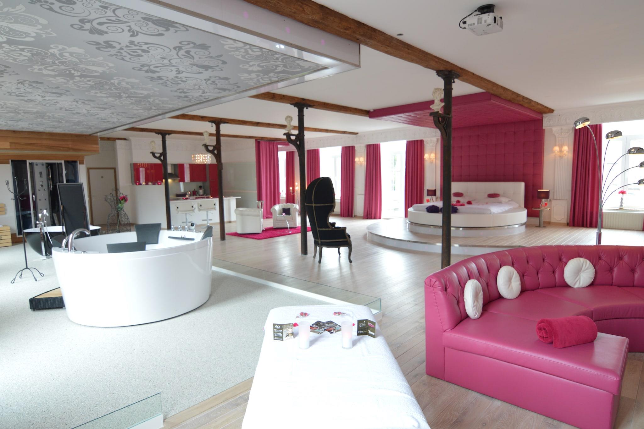 In der 2. Etage: (offene Küche(Kochherd(Ceranfeld), Backofen, Mikrowelle, Spülmaschine, Kühl-/Gefrierkombination), Wohn-/Schlafzimmer(Doppelbett, DVD-Spieler, Whirlwanne, Waschbecken), Badezimmer(Badewanne, Massagedusche, Infrarotsauna)) Garage