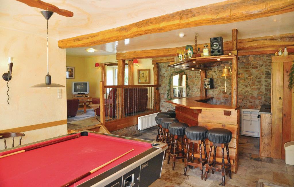 Das Ferienhaus Les liegt in dem Weiler Erpigny. Dieses typische Ardenner Bauernhaus wurde kürzlich renoviert und mit einem luxuriösen Interieur ausgestattet. Sie wohnen 15 km von La Roche, mit seiner mittelalterlichen Burgruine und dem umher spukenden Geist von Berthe, und von Durbuy, der kleinsten Stadt der Welt, wo jedes Wochenende etwas los ist, wie etwa Weihnachtsmärkte, eine große Feier zum Valentinstag, Flohmärkte und ein Schokoladen-Festival. Erpigny ist ein idealer Ausgangspunkt für Wanderungen und Radtouren. Sie finden hier eine Fülle an Rad- und Wanderwegen und viele Sehenswürdigkeiten. In einem Umkreis von 5 km können Sie eine traditionelle Chocolaterie besichtigen oder eine Fahrt mit einer originalen Ardenner Straßenbahn durch den Wald machen. Das Haus ist sehr schön eingerichtet und verfügt über ein großes Esszimmer mit offener Küche, sowie eine Bar mit Billardtisch, Kicker und anderen Spielen. Die gemütliche Lounge lädt ein zu einer geselligen Runde. Im Zwischengeschoss über dem Wohnzimmer ist eine Leseecke eingerichtet, wo Sie sich auch einmal in Ruhe zurückziehen können. Die kleineren Zimmer und Bäder liegen auf der ersten Etage. Auf der zweiten Etage ist ein Schlafsaal, wo man das Fachwerk aus Eichenbalken bewundern kann. In dem ehemaligen Backhaus ist eine Sauna eingerichtet. Der riesige umzäunte Garten bietet eine Süd-Terrasse und einen großen Spielbereich. Dieses Haus ist hauptsächlich bestimmt für Familien. Andere Gruppen können jedoch mit der Zustimmung des Eigentümers und mit einer eventuellen Erhöhung der Kaution akzeptiert werden. Gruppen von Personen unter 30 Jahren sind grundsätzlich nicht gestattet.