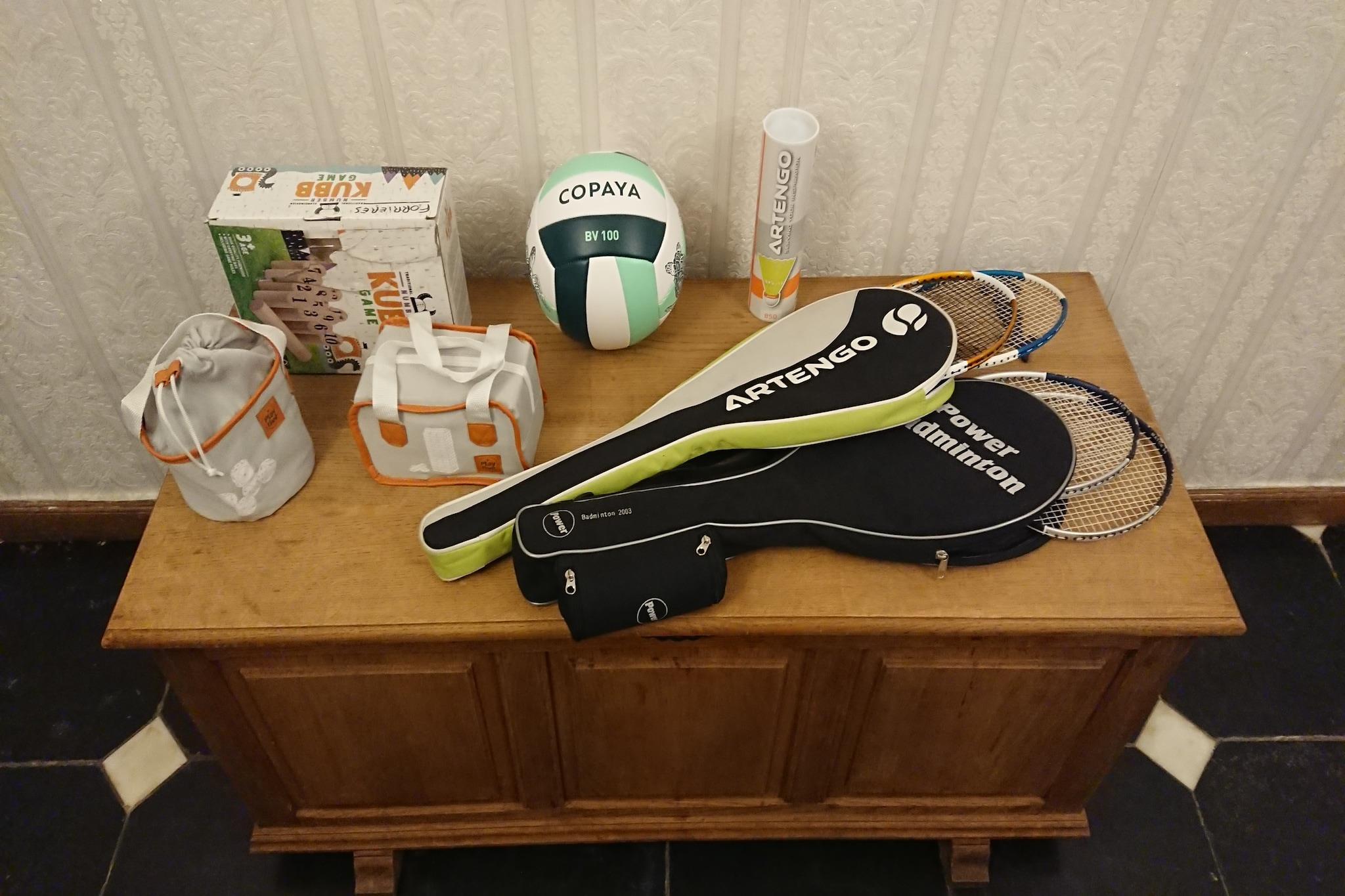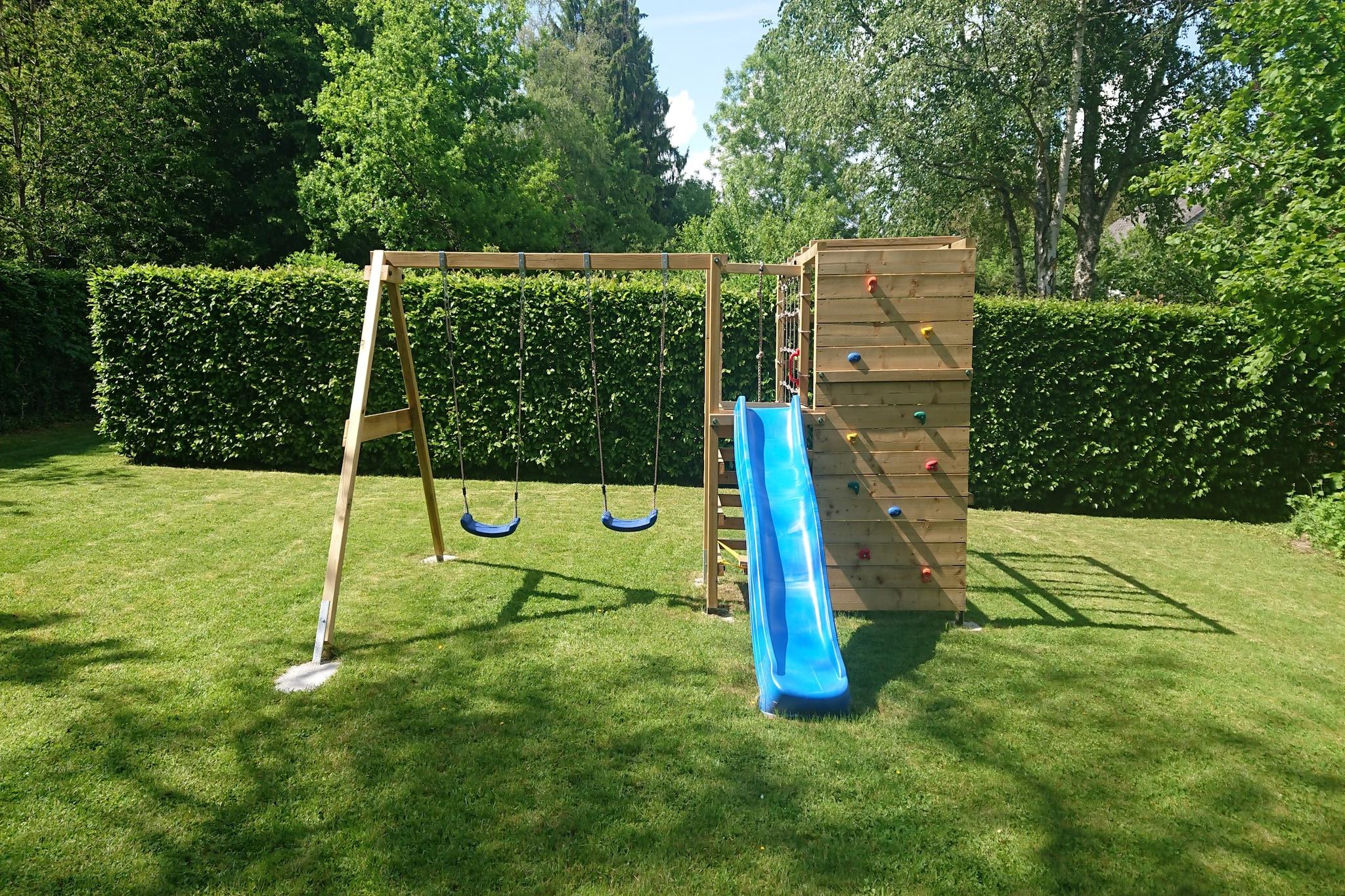 Parterre: (Wohnzimmer(TV, Kaminofen, DVD-Spieler), Esszimmer(Dekokamin), Küche(Kochherd(4 Kochplatten), Backofen, Mikrowelle, Spülmaschine, Kühl-/Gefrierkombination, Waschbecken), Toilette(Waschbecken), Spielzimmer(Dart, Billard, Gesellschaftsspiele), Wirtschaftsraum(Waschmaschine)) In der 1. Etage: (Schlafzimmer(4x Einzelbett(Bettdecke, 90 x 200 cm)), Schlafzimmer mit Badezimmer(Doppelbett(Doppelbettdecke, 140 x 200 cm), Dusche, Waschbecken), Schlafzimmer mit Badezimmer(4x Einzelbett(Bettdecke, 90 x 200 cm), Dusche), Badezimmer(Badewanne mit Dusche, Waschbecken), Toilette, Kinderbett, Hochstuhl) In der 2. Etage: (Schlafzimmer mit Badezimmer(2x Einzelbett, Dusche, Waschbecken), Schlafzimmer mit Badezimmer(2x Einzelbett, Dusche, Waschbecken), Toilette) Keller: (Sauna, Dusche, Toilette, Pool(alleinige Nutzung, überdacht, innen, 9 x 4 m.)) Freizeitraum, Kaminofen, Herd, streamingservice, Kaffeemaschine, Badewanne oder Dusche, Sauna, Heizung, Terrasse, Garten, Gartenmöbel, Grill, Parkplatz, Liegestühle, Sonnenschirm, Boulebahn, Rutsche, Plancha, Schaukel
