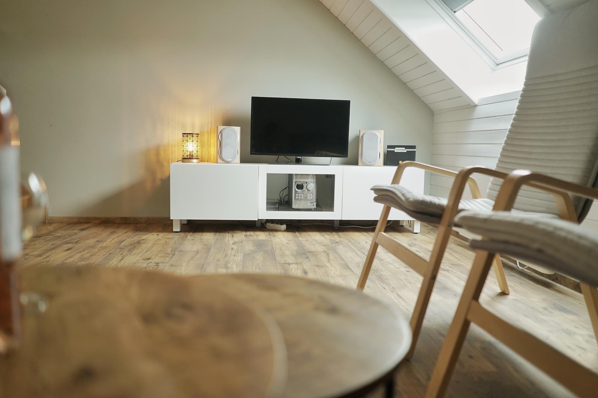 Umgeben von Grün und ruhigen Landstraßen bietet dieses gemütliche Ferienhaus in Hotton eine friedliche Auszeit in der Natur und ist dennoch nur eine kurze Autofahrt vom lebhaften Charme des nahegelegenen Durbuy entfernt. In ruhiger Lage gelegen, ist es ein Ort, an dem Familien zur Ruhe kommen, die frische Luft genießen und wertvolle Zeit miteinander verbringen können. Das moderne Design und die warme Atmosphäre sorgen dafür, dass Sie sich vom ersten Moment an wie zu Hause fühlen. Das Haus ist hell, praktisch und durchdacht für einen entspannten Aufenthalt eingerichtet. Das erste Stockwerk bildet das Herzstück des Hauses mit einem komfortablen Wohnbereich, der über einen Smart-TV, eine Sitzecke und einen Esstisch für gemeinsame Mahlzeiten oder Gesellschaftsspiele verfügt. Die offene Küche ist komplett ausgestattet mit allem, was Sie für unkompliziertes Kochen im Urlaub benötigen – vom schnellen Frühstück bis zum einfachen Familienessen. Ein modernes Badezimmer mit Dusche sorgt für zusätzlichen Komfort. Im Obergeschoss befindet sich das Schlafzimmer, das ideal für Familien ist und ein komfortables Doppelbett sowie ein Etagenbett bietet, das Kinder lieben werden. Gehen Sie hinaus auf die Terrasse und genießen Sie Mahlzeiten im Freien, schmeißen Sie an lauen Abenden den Grill an oder entspannen Sie einfach bei einer Tasse Kaffee und genießen Sie die Ruhe der Umgebung. Für zusätzlichen Komfort stehen Parkplätze direkt am Haus zur Verfügung. Von hier aus können Sie die natürliche Schönheit der Region erkunden. Wander- und Radwege befinden sich in unmittelbarer Nähe, und auch das Ufer der Ourthe ist nicht weit entfernt. Hotton ist bekannt für seine Höhlen und den charmanten Ortskern, während Durbuy mit Kopfsteinpflasterstraßen, Restaurants und vielfältigen Outdoor-Aktivitäten lockt. Dieses Ferienhaus ist ein komfortabler und familienfreundlicher Ausgangspunkt, um die Ardennen in Ihrem eigenen Tempo zu entdecken.