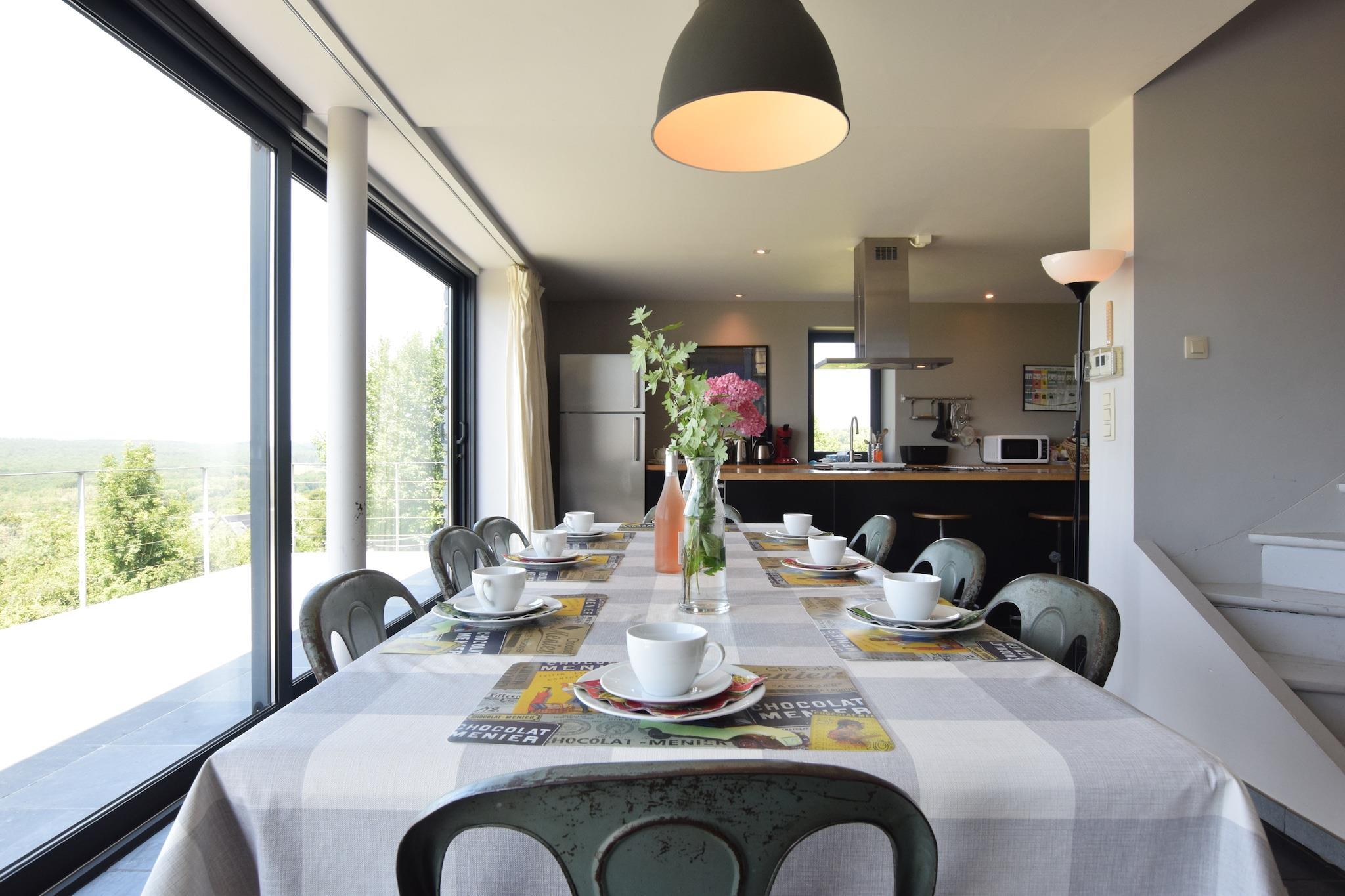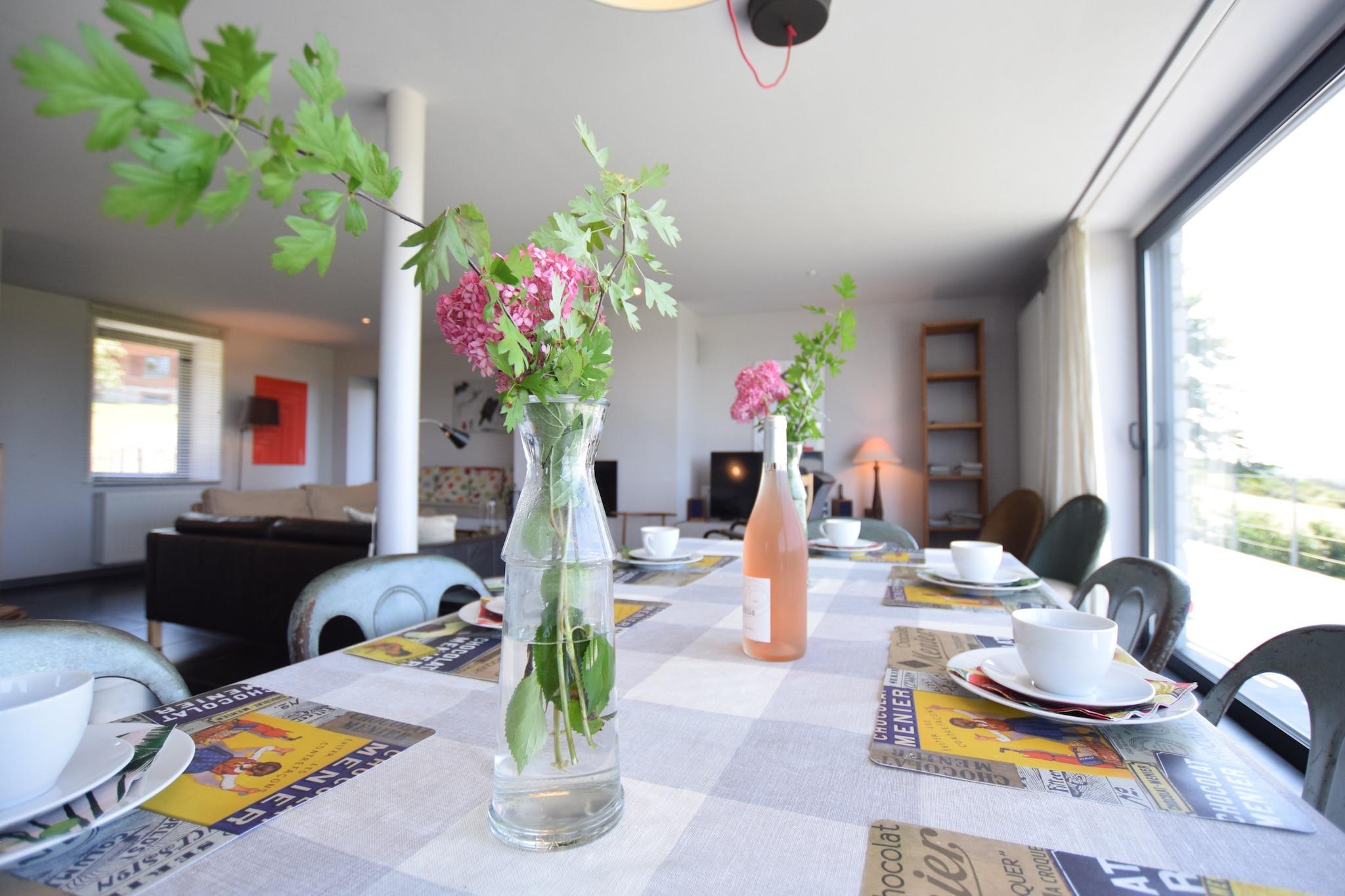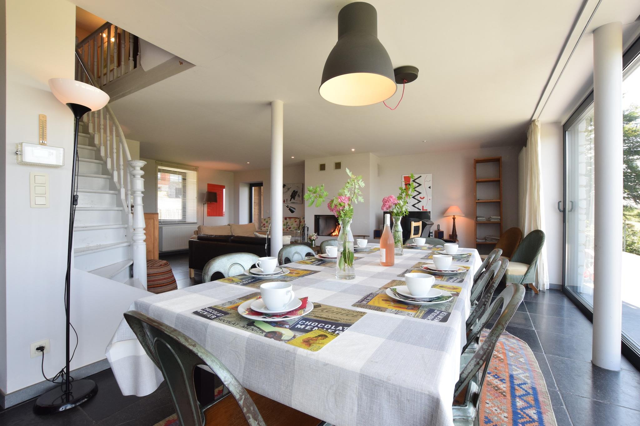 Parterre: (offene Küche(Wasserkocher, Toaster, Kochherd(5 Kochplatten, Gas), Kaffeemaschine(Filter, pads), Mikrowelle, Spülmaschine, Kühl-/Gefrierkombination), Wohn/Esszimmer(Doppelschlafcouch(Zwei Einzelbettdecken, 90 x 200 cm), TV, Esstisch, Kaminofen, DVD-Spieler, Stereoanlage), Toilette) In der 1. Etage: (Schlafzimmer(Einzelbett(90 x 200 cm), Einzelbett(90 x 200 cm)), Schlafzimmer mit Badezimmer(Einzelbett(90 x 200 cm), Einzelbett(90 x 200 cm), Badewanne mit Dusche, 2x Waschbecken, Toilette), Schlafzimmer mit Badezimmer(Einzelbett, Einzelbett(90 x 200 cm), Dusche, Waschbecken), Badezimmer(Dusche, 2x Waschbecken), Toilette) In der 2. Etage: (Schlafzimmer(Einzelbett(90 x 200 cm), Einzelbett(90 x 200 cm), Waschbecken), Spielzimmer(TV, Stereoanlage)) Souterrain: Terrasse, Garten(alleinige Nutzung), Gartenmöbel, Grill, Parkplatz, Trampolin, Boulebahn, Tischtennisplatte, Kinderbett, Hochstuhl