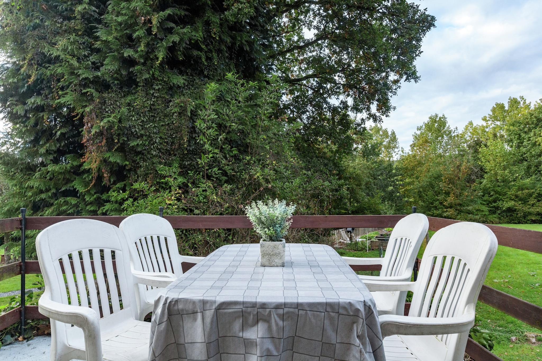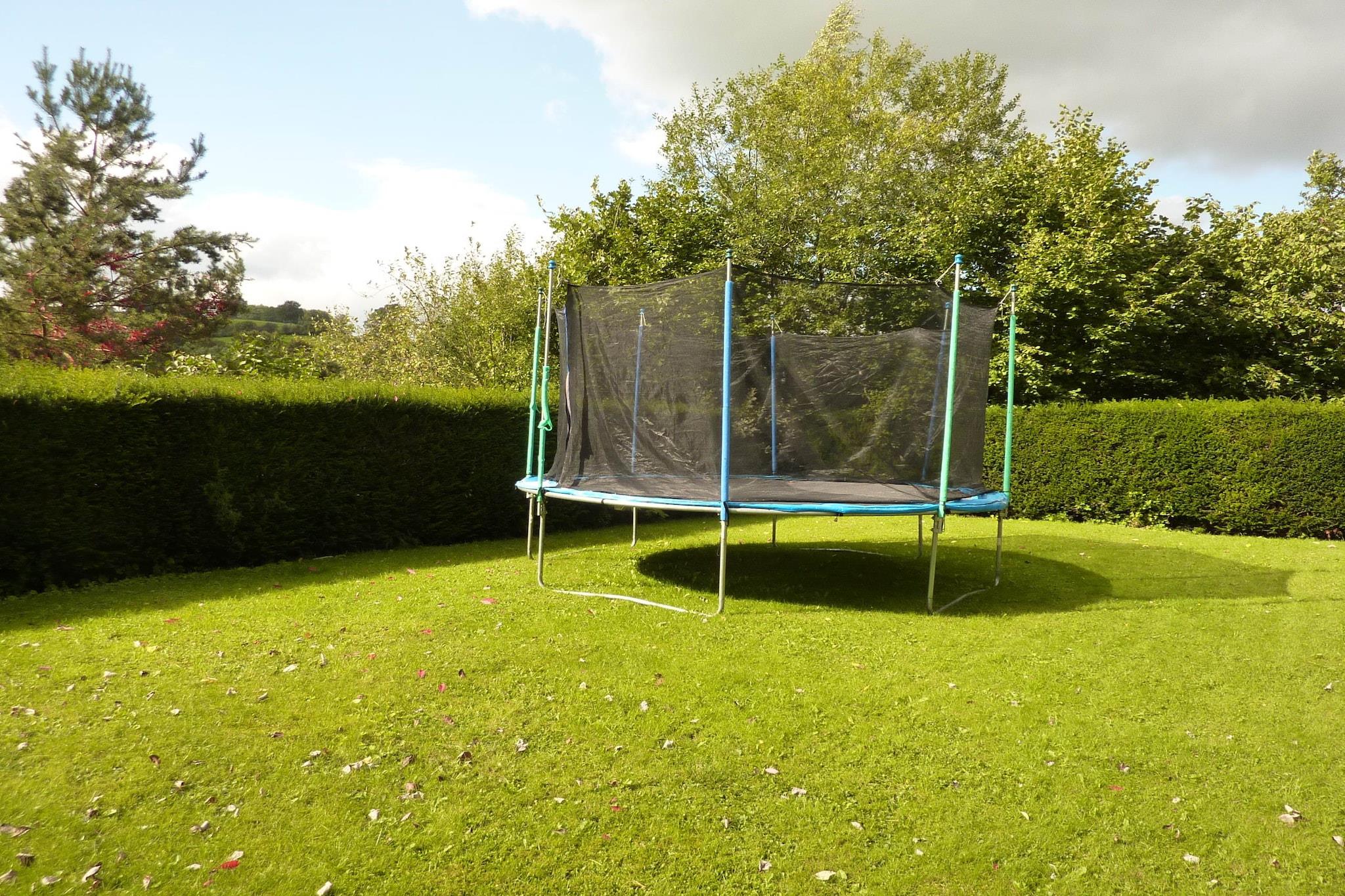 Parterre: (Aufenthaltsraum(Doppelschlafcouch(140 x 200 cm), TV, DVD-Spieler, Terrasse), Esszimmer(Herd), Küche(Mikrowelle, Kühl-/Gefrierkombination), Schlafzimmer(Doppelbett(140 x 200 cm)), Badezimmer(Dusche, Waschbecken, Toilette, Gasofen)) Ruheraum(Gemeinschaftliche Nutzung mit anderen Gästen)(Infrarotsauna, Fitnessgeräte), Ruheraum(Dusche, Sauna), Toilette, Heizung(Gas), Garten(alleinige Nutzung), Gartenmöbel, Grill, Trampolin(Gemeinschaftliche Nutzung mit anderen Gästen), Spielgeräte(Gemeinschaftliche Nutzung mit anderen Gästen)
