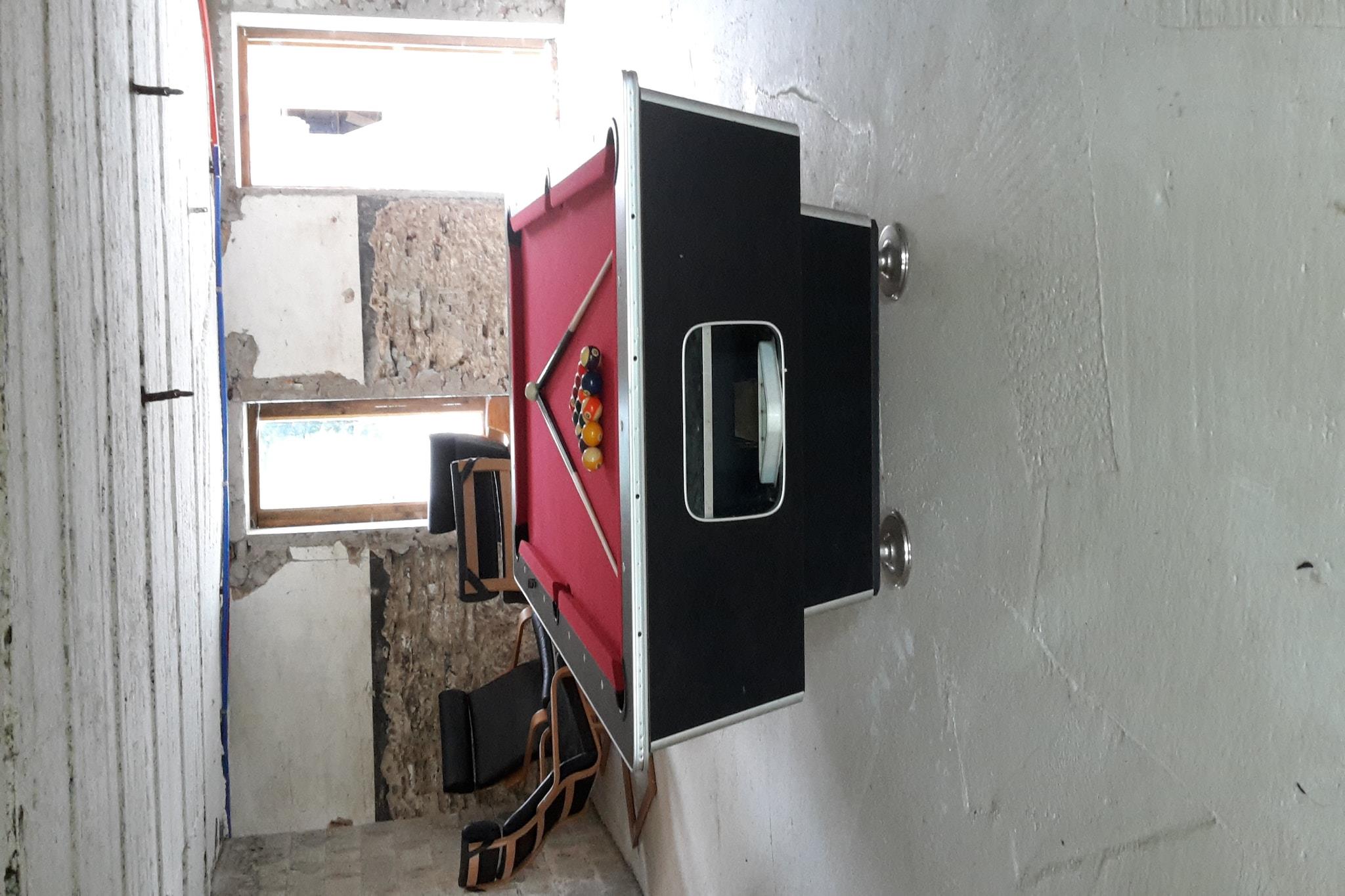 Dieses renovierte Ferienhaus mit 10 Schlafzimmern in Meyerode eignet sich ideal für Familientreffen oder Gruppenausflüge und bietet Platz für bis zu 22 Gäste. Das Haus verbindet modernes Interieur mit erhaltenen Originalelementen und verfügt über eine private Terrasse, einen möblierten Garten und einen Holzofen für gemütliche Abende. Der Freizeitraum bietet Tischfußball, Billard und einen Pelletofen für Indoor-Spaß. Ein Schlafzimmer im Erdgeschoss mit eigenem Bad ist für Gäste mit eingeschränkter Mobilität geeignet. Die voll ausgestattete Küche verfügt über mehrere Backöfen, Geschirrspüler und Kühlschränke. Kostenloses WLAN, eine Waschmaschine und Parkplätze stehen ebenfalls zur Verfügung. Erkunden Sie nahegelegene Städte wie Amel und St. Vith oder planen Sie Tagesausflüge nach Belgien, Deutschland und Luxemburg. Haustiere sind willkommen (max. 3). Aus Gründen der Ruhe wird das Haus nicht an Jugendgruppen vermietet. Ob Sie einen ruhigen Morgenkaffee genießen oder auf der Terrasse kochen – dieses Haus bietet das ganze Jahr über einen ruhigen und komfortablen Aufenthalt.