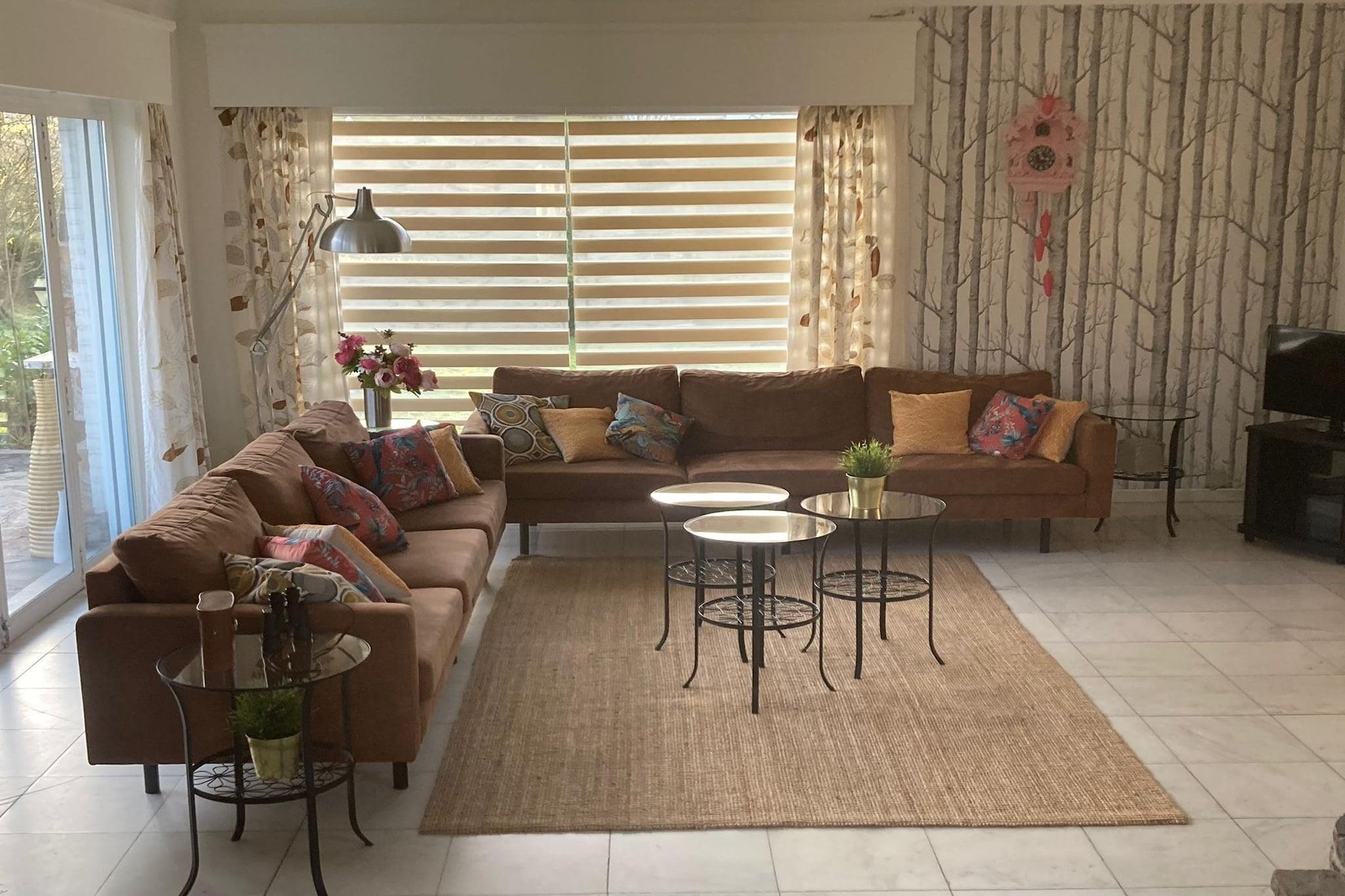 Willkommen im Le Beau Souvenir, einem charmanten Ferienhaus mit 4 Schlafzimmern in Noiseux, dem grünen Herzen der Ardennen. Mit einem 360°-Panoramablick über das Ourthetal bietet diese freistehende Villa im Stil der 1960er Jahre einen ruhigen Rückzugsort für bis zu 8 Gäste. Ob Familienurlaub oder erholsamer Rückzugsort - dieses Haus verbindet Vintage-Charme mit modernem Komfort. Im Innenbereich erwarten Sie ein geräumiges Wohnzimmer, eine voll ausgestattete Küche und zwei Badezimmer. Entspannen Sie in der privaten Sauna, im Whirlpool oder in der Kinder-/Männerhöhle mit Airhockey, Shuffleboard, Tischfußball und Darts. Die überdachte Terrasse mit fest installiertem Grill, der große Garten und die großzügigen Parkplätze machen das Ferienhaus ideal für kurze und längere Aufenthalte. Kinderbetten und Hochstühle stehen für die Kleinen zur Verfügung. Erkunden Sie die Region beim Kajakfahren, Wandern, Mountainbiken oder Langlaufen. Besuchen Sie Durbuy (9 km), die Grotten von Han (28 km) oder genießen Sie ein belgisches Bier in Ciney (24 km). Auch die französische Grenze ist leicht zu erreichen. Kontaktieren Sie den Hausbesitzer 1 Stunde vor Ankunft/Abreise zur Schlüsselübergabe. Bitte beachten Sie: Das Aufladen von Elektrofahrzeugen wird separat berechnet und Partys sind nicht gestattet.