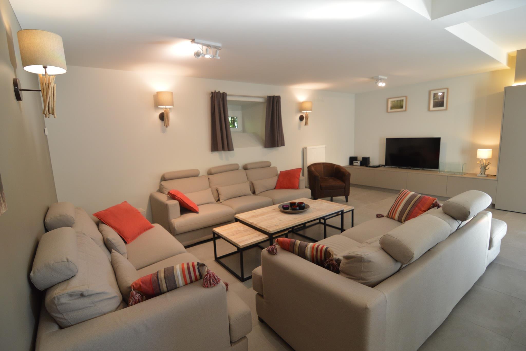 Dieses wunderschön renovierte Haus liegt auf einem großen Gelände mit 4 Hektar in einem Tal im belgischen Ondenval. Dieses Haus liegt sehr ruhig inmitten der unangetasteten Natur und Sie haben eine wunderschöne Aussicht auf das Tal. Die geräumige, gemütliche Essküche ist vollständig eingerichtet und bietet Platz für die ganze Reisegruppe. Das separate Wohnzimmer bietet eine gemütliche Sitzecke mit einem Tisch, an dem Sie mit einer kleineren Reisegruppe ein Spiel spielen oder essen können. Im Obergeschoss befindet sich auch die Sauna. Das Haus liegt auf einem großen Privatgelände und von der Terrasse aus blicken Sie ins Tal und in die Wälder. Das Haus ist ein idealer Ausgangspunkt für Wanderungen, Radtouren oder Ausflüge. Ondenval ist ein kleines Dorf in den Ardennen, südlich der Gemeinde Waimes und am Rand des Hohen Venns. Auf diesem Grundstück liegen zwei Häuser, die den gleichen Parkplatz nutzen. Die Häuser können auch zusammen gebucht werden, dann steht Ihnen eine Unterkunft für 24 Personen zur Verfügung.