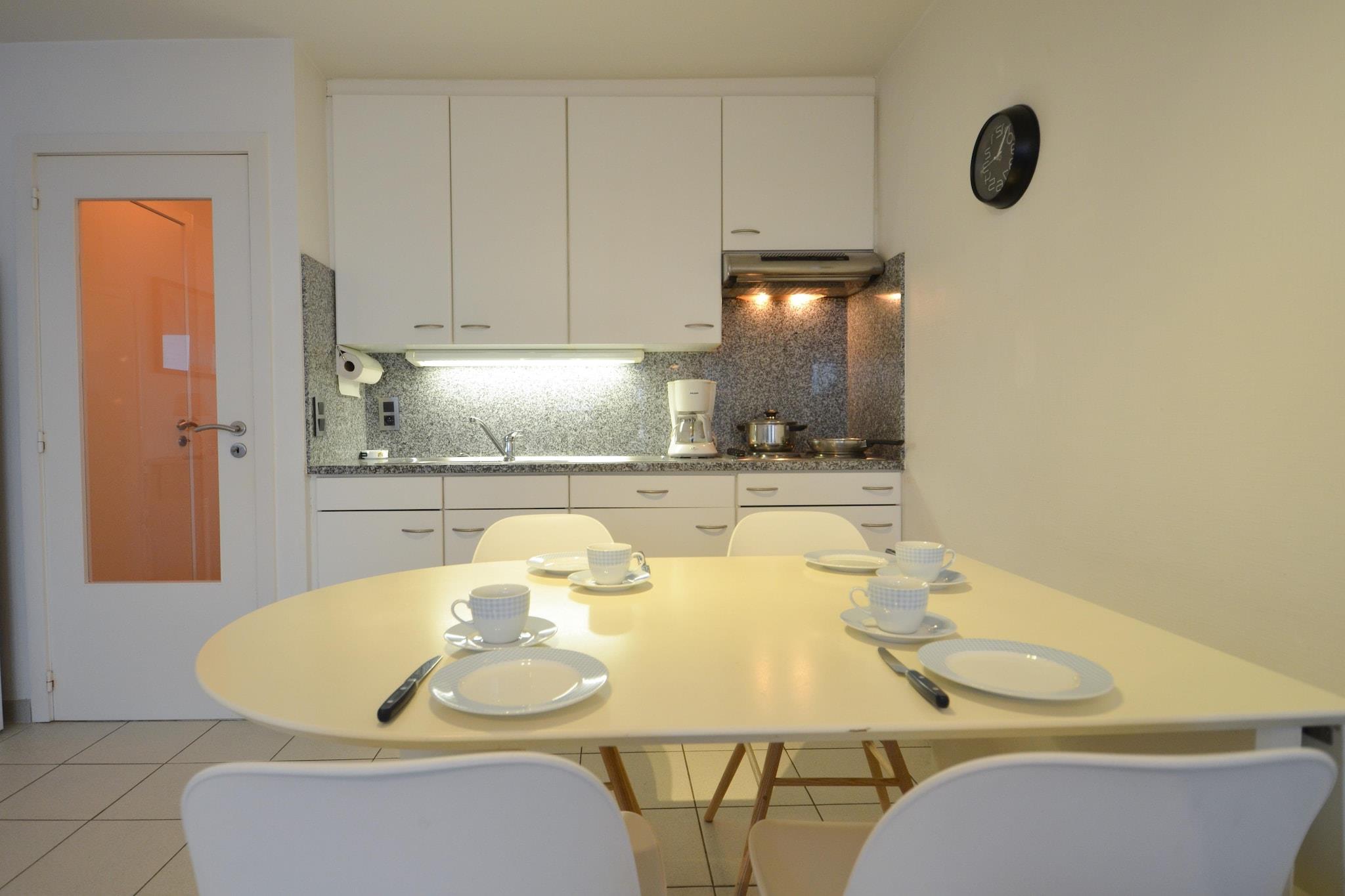 Dieses gepflegte und gut erhaltene Apartment bietet einen modernen und komfortablen Rückzugsort für bis zu vier Gäste. Es befindet sich im Erdgeschoss und verfügt über ein gemütliches Schlafzimmer und einen hellen Wohnbereich. Das Apartment ist geschmackvoll eingerichtet und bietet eine ruhige Atmosphäre, perfekt für einen erholsamen Aufenthalt. Ein Highlight ist die schöne Sonnenterrasse, die vom Schlafzimmer aus zugänglich ist und einen privaten Außenbereich zum Entspannen bietet. Eine sichere Garagenbox ist im Preis inbegriffen und sorgt für bequemes Parken. Bitte beachten Sie, dass Haustiere nicht erlaubt sind, was es zu einer idealen Wahl für diejenigen macht, die einen ruhigen Urlaub verbringen möchten. Dieses Apartment liegt nur einen kurzen Spaziergang von den Dünen, dem Strand und dem Meer entfernt und bietet eine erstklassige Lage, um die natürliche Schönheit der Küste zu genießen. Die malerische Promenade ist perfekt für gemütliche Spaziergänge, während das nahe gelegene Zentrum von Oostduinkerke eine Vielzahl von Cafés, Restaurants und lokalen Märkten bietet. Gäste können charmante Boutiquen erkunden, frische Meeresfrüchte probieren oder in der lebhaften Atmosphäre der Stadt entspannen. Mehrere Rad- und Wanderwege in der Umgebung bieten Möglichkeiten für Abenteuer im Freien. Das Apartment ist für einen komfortablen Aufenthalt konzipiert und verfügt über eine moderne, voll ausgestattete Küche mit Geräten wie Backofen, Mikrowelle und Kaffeemaschine. Das stilvolle Badezimmer verfügt über eine geräumige Dusche, ein Waschbecken und eine Toilette. Ein heller Wohnbereich mit Essbereich sorgt für eine einladende Atmosphäre, während große Fenster für viel natürliches Licht sorgen.
