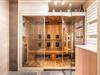 In der 2. Etage: (offene Küche(Herd, Kochplatte, Dunstabzugshaube, Kaffeemaschine(pads), Mikrowelle, Spülmaschine, Tiefkühlschrank), Wohn/Esszimmer(TV(Flatscreen, digital), Esstisch, Sitzecke, DVD-Spieler, Radio), Schlafzimmer(Doppelbett(Doppelbettdecke, 160 x 200 cm), Balkon), Schlafzimmer(Etagenbett(Bettdecke, 160 x 200 cm), Etagenbett(160 x 200 cm)), Badezimmer(Badewanne, Dusche(ebenerdige Dusche), Infrarotsauna, Waschbecken, Waschbecken, Toilette)) Heizung(Gas), Aufzug