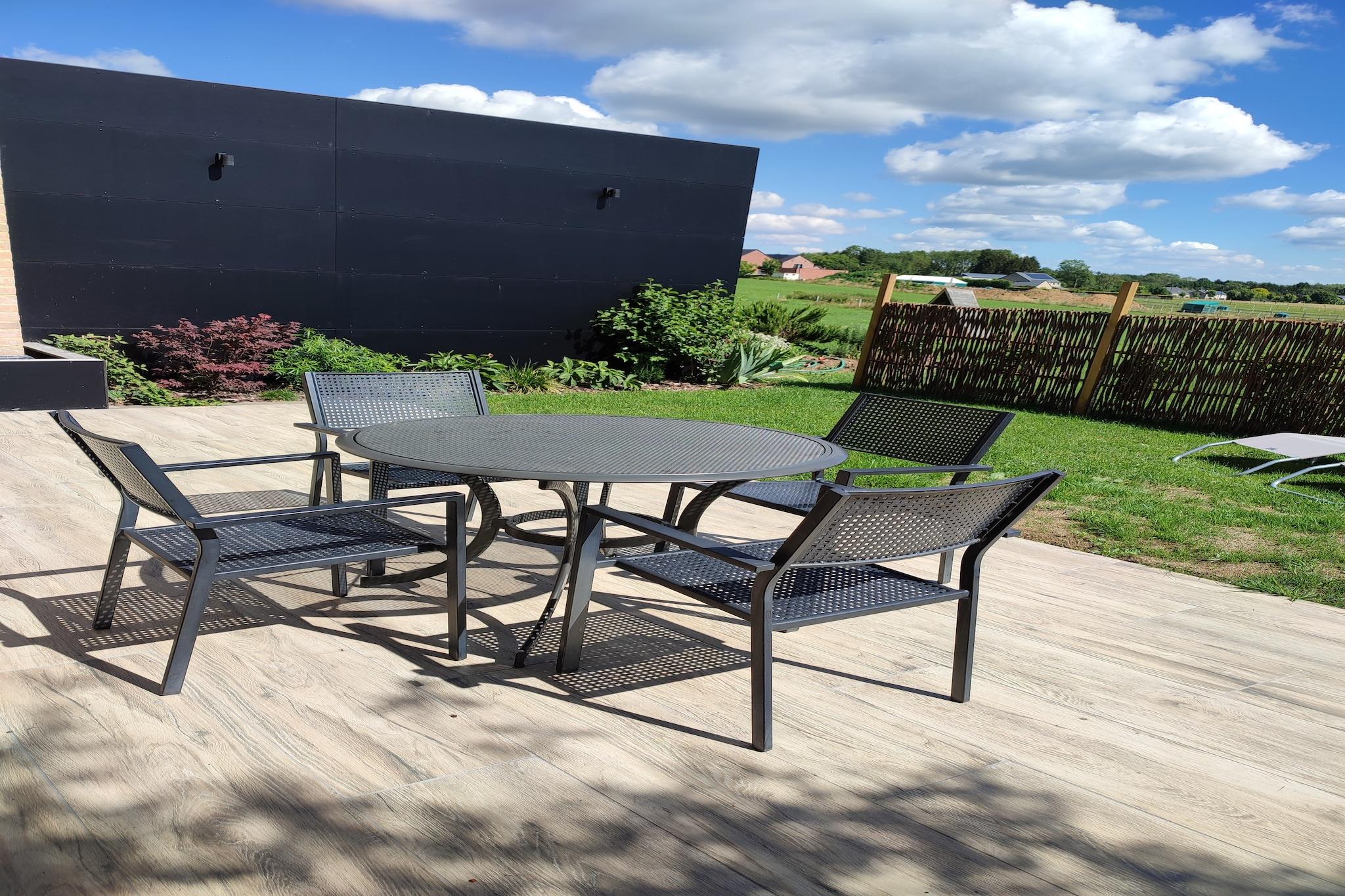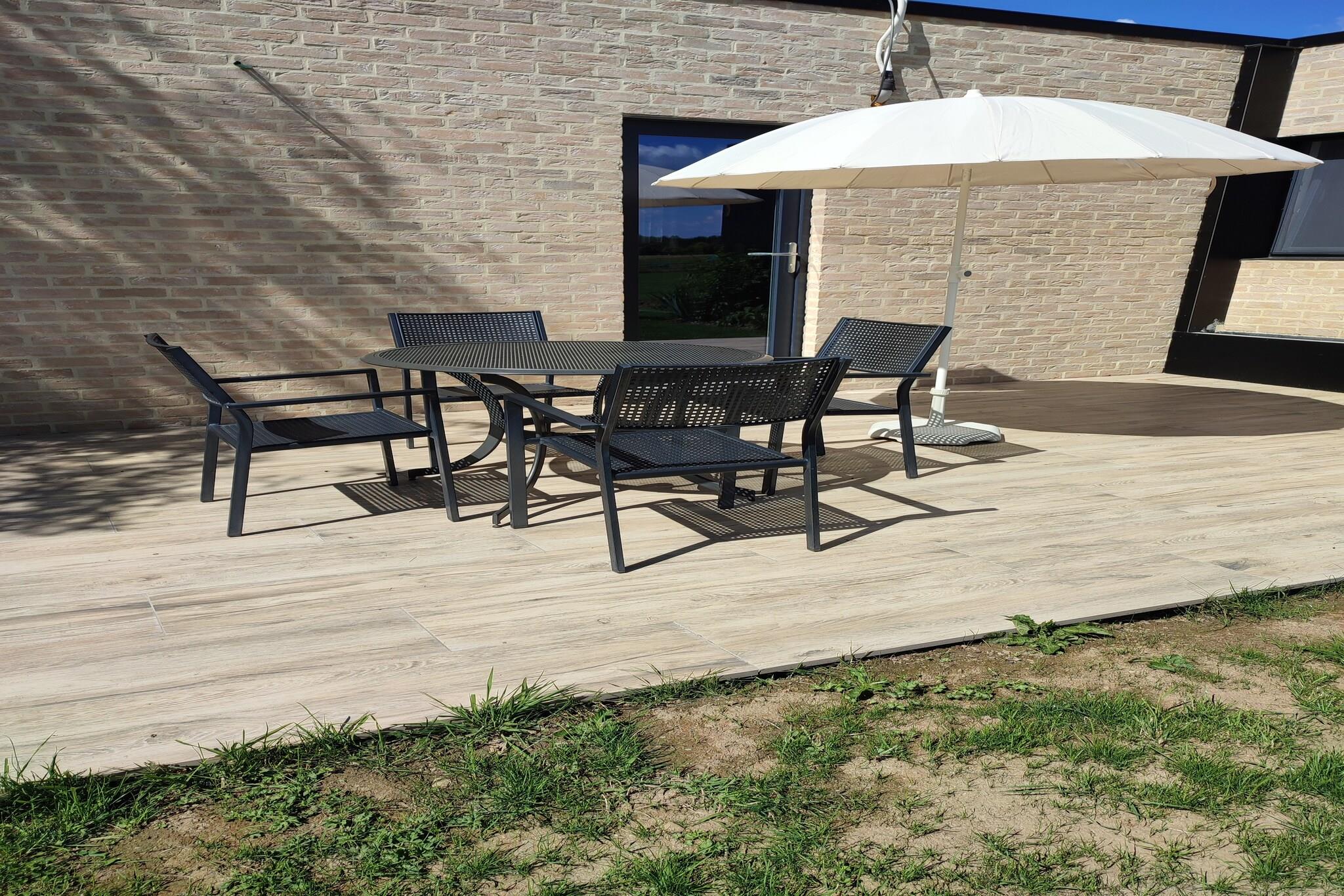 Parterre: (Wohnzimmer(TV, Esstisch, Sitzecke), Küche(Kochherd, Kaffeemaschine, Backofen, Mikrowelle), Schlafzimmer(Doppelbett), Schlafzimmer(Doppelbett), Badezimmer(Dusche, Waschbecken)) Terrasse, Grill, Parkplatz