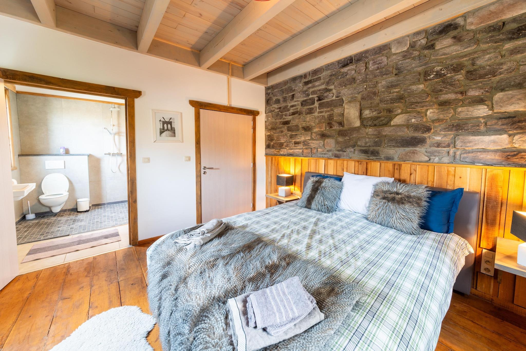 Dieses stilvolle und moderne Ferienhaus in der ruhigen Region Somme-Leuze bietet einen erholsamen Rückzugsort für Familien oder Gruppen von bis zu 14 Personen. Dank der geschmackvollen Einrichtung und der durchdachten Ausstattung werden Sie sich wie zu Hause fühlen. Das Anwesen verfügt über 4 Schlafzimmer, darunter 2 Familienzimmer mit Mezzaninen und eigenem Bad, und bietet viel Platz und Privatsphäre. Erkunden Sie die Schönheit der Umgebung bei Tagesausflügen in nahegelegene Städte wie Durbuy, La-Roche-en-Ardenne oder Marche-en-Famenne. Ob Wandern, Radfahren oder Rafting – die Region bietet eine große Auswahl an Outdoor-Aktivitäten für Naturliebhaber und Abenteuerlustige. Entspannen Sie im privaten Wellness-Nebengebäude mit Whirlpool und Sauna oder genießen Sie einen sonnigen Nachmittag auf der Terrasse mit Grill und Blick in den Garten. Kinder können sich auf dem kleinen Spielplatz austoben, während Erwachsene entspannen und neue Energie tanken. Dieses Haus in Somme-Leuze vereint Komfort und Entspannung für einen unvergesslichen Urlaub in den Ardennen.