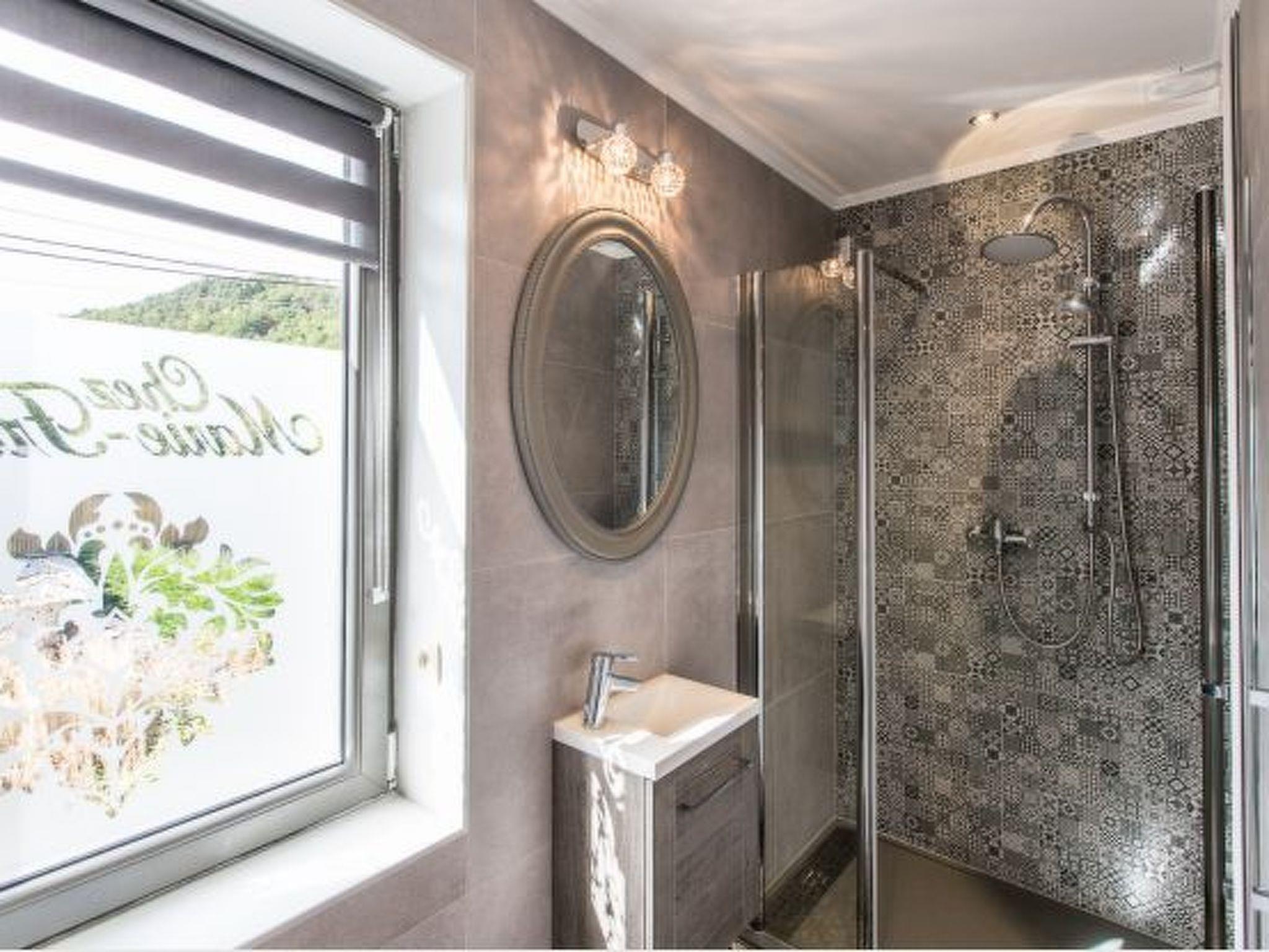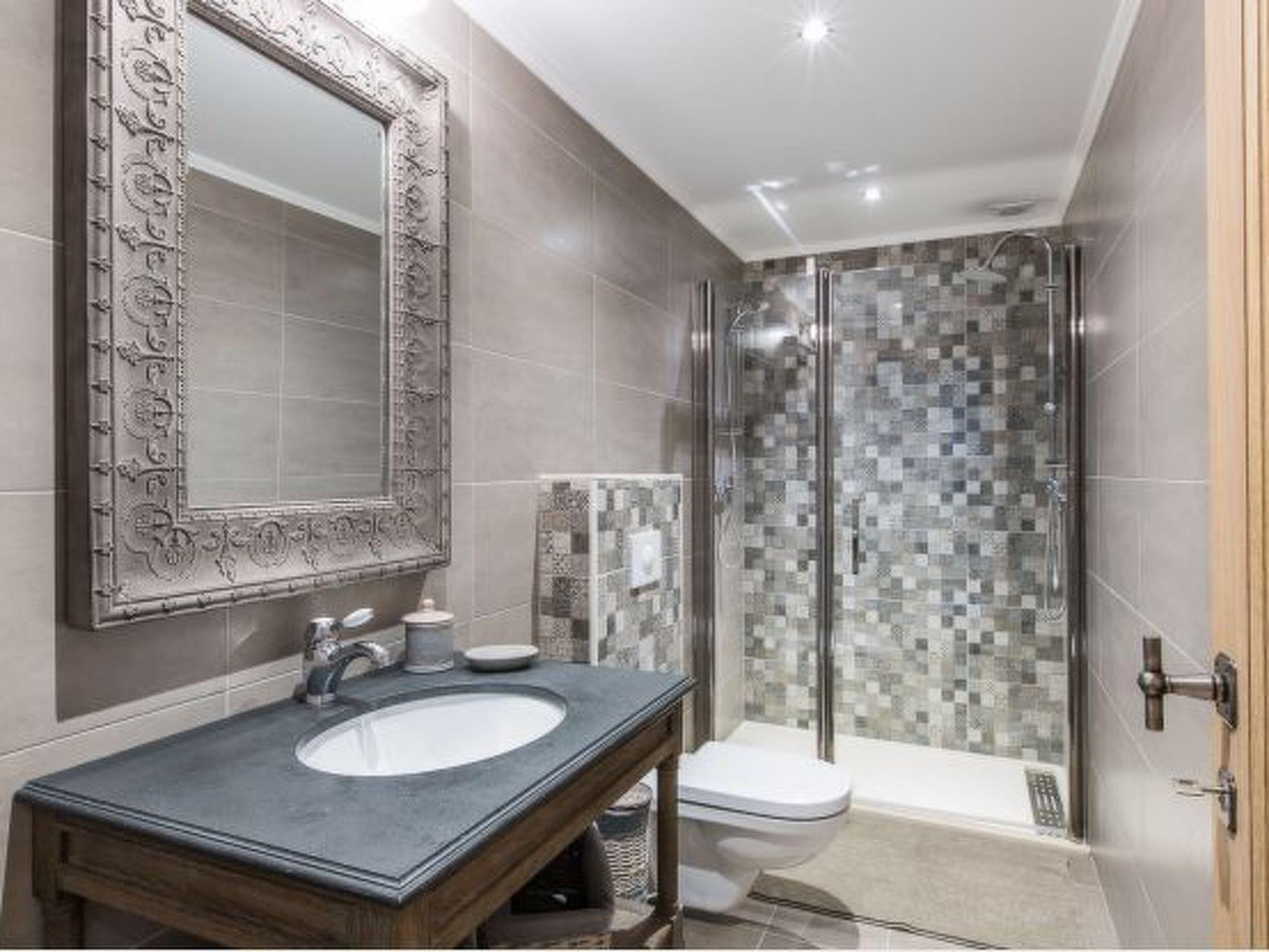 Im ersten Stock: erstes Schlafzimmer mit eigenem Duschbad, zweites und drittes Schlafzimmer, Badezimmer und schließlich ein viertes Schlafzimmer mit eigenem Duschbad.