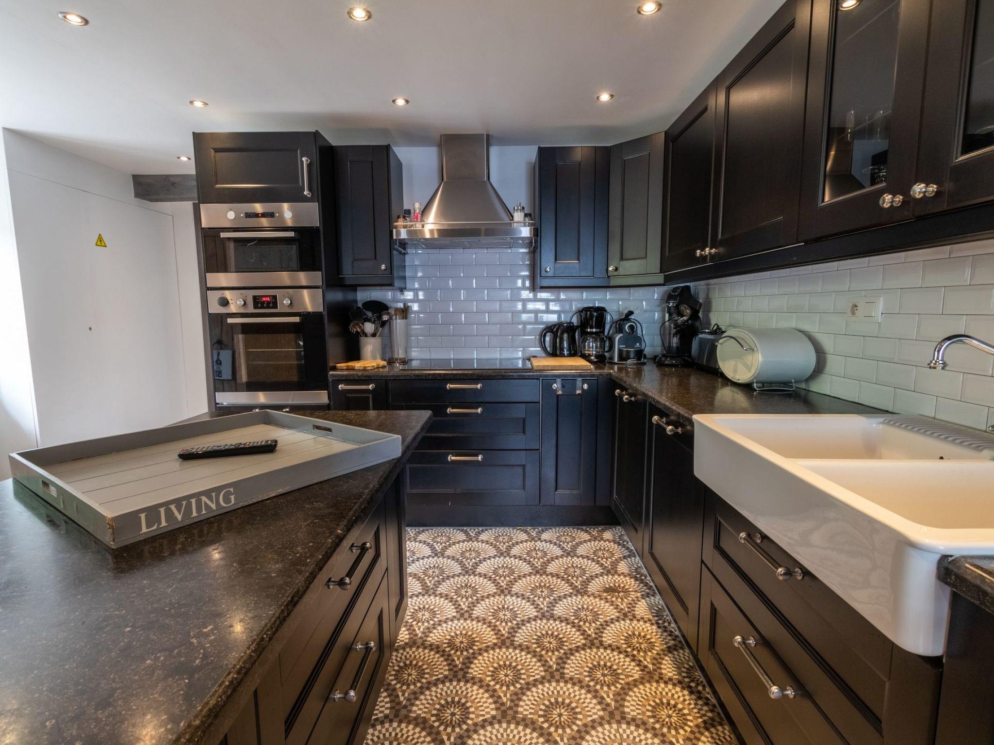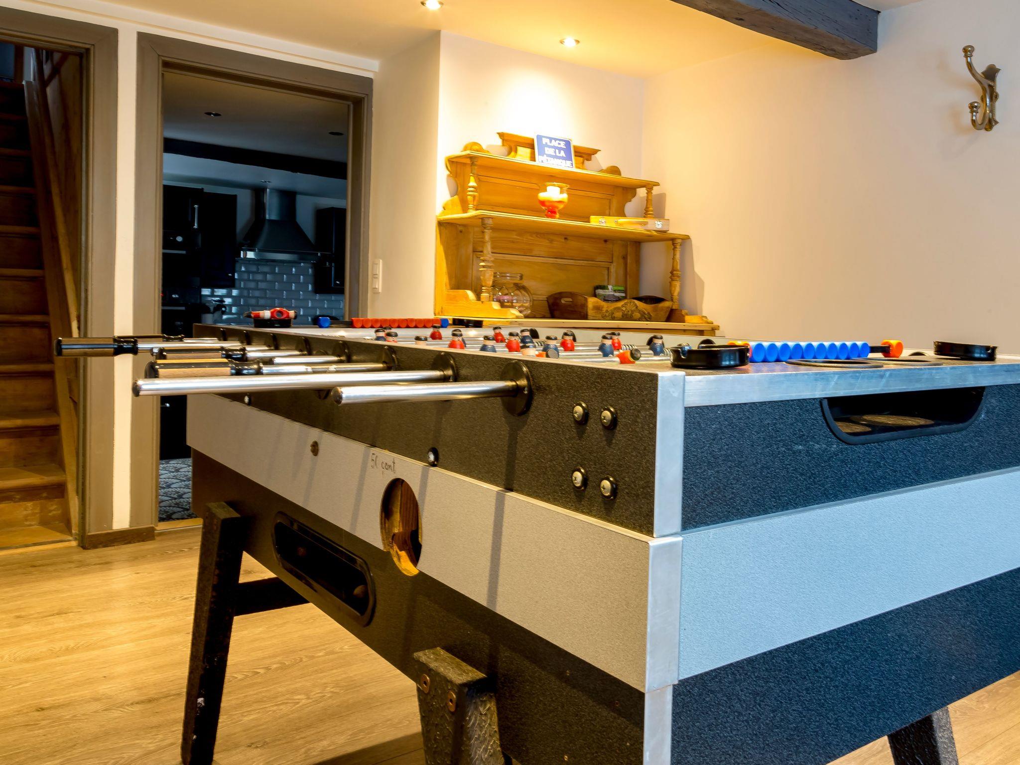Im Erdgeschoss betreten Sie die Halle, Gästetoilette und Waschküche. Entdecken Sie dann das Wohnzimmer mit Holzofen und Zugang zur Terrasse. Die Küche ist super ausgestattet und befindet sich neben dem Spielzimmer mit Kicker.