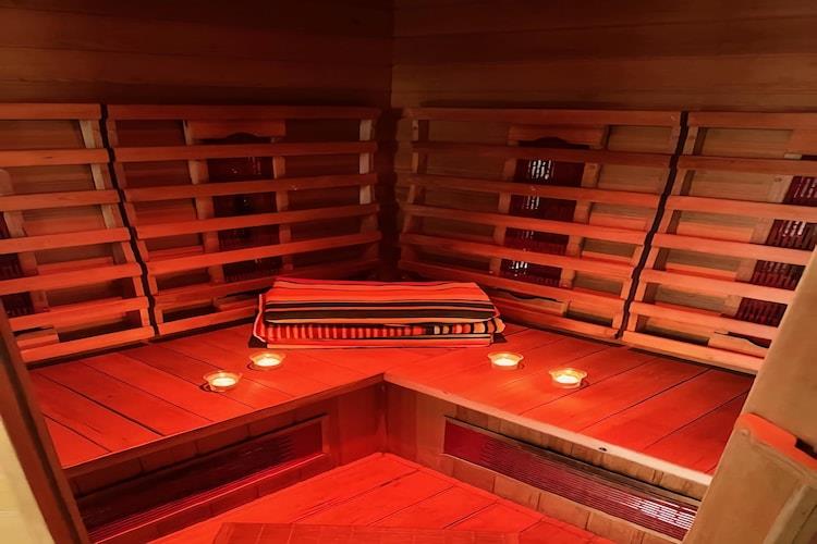 Parterre: (Eingangshalle, Aufenthaltsraum(5 Personen)(TV(Flatscreen), Kaminofen, DVD-Spieler, Radio, CD-Spieler, Stereoanlage), Esszimmer(Esstisch(8 Personen)), Küche(Kochherd, 2x Kaffeemaschine(Filter, pads), Backofen, Kombi-Mikrowelle, Spülmaschine, Kühlschrank, Hochstuhl), Toilette(private Infrarotkabine)) In der 1. Etage: (Schlafzimmer mit Badezimmer(Doppelbett(140 x 200 cm), Dusche, Waschbecken), Schlafzimmer mit Badezimmer(Doppelbett(140 x 200 cm), TV, Badewanne, Waschbecken, Toilette), Schlafzimmer mit Badezimmer(Doppelbett(200 x 160 cm), Dusche, Waschbecken, Toilette), Badezimmer(Dusche, Waschbecken), Toilette, Toilette) In der 2. Etage: (Aufenthaltsraum(TV, Tischfußball), Esszimmer, Kochnische, Schlafzimmer(Doppelbett(140 x 200 cm)), Schlafzimmer(2x Einzelbett(90 x 200 cm))) Mikrowelle, Badewanne oder Dusche, Heizung(Zentral), Terrasse(55 m2), Garten, Gartenmöbel, Liegen, Parkplatz, Bügelbrett, Gesellschaftsspiele