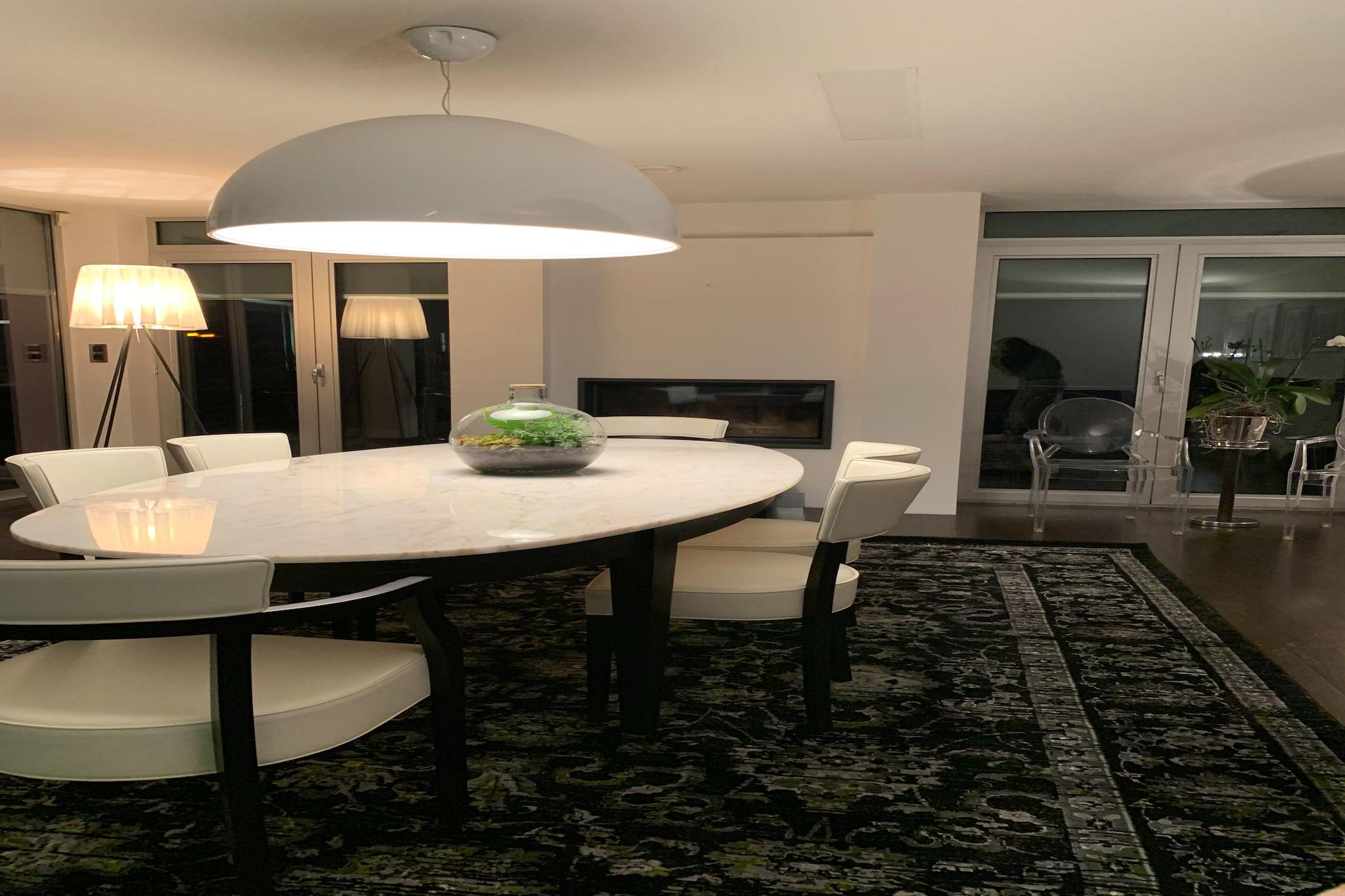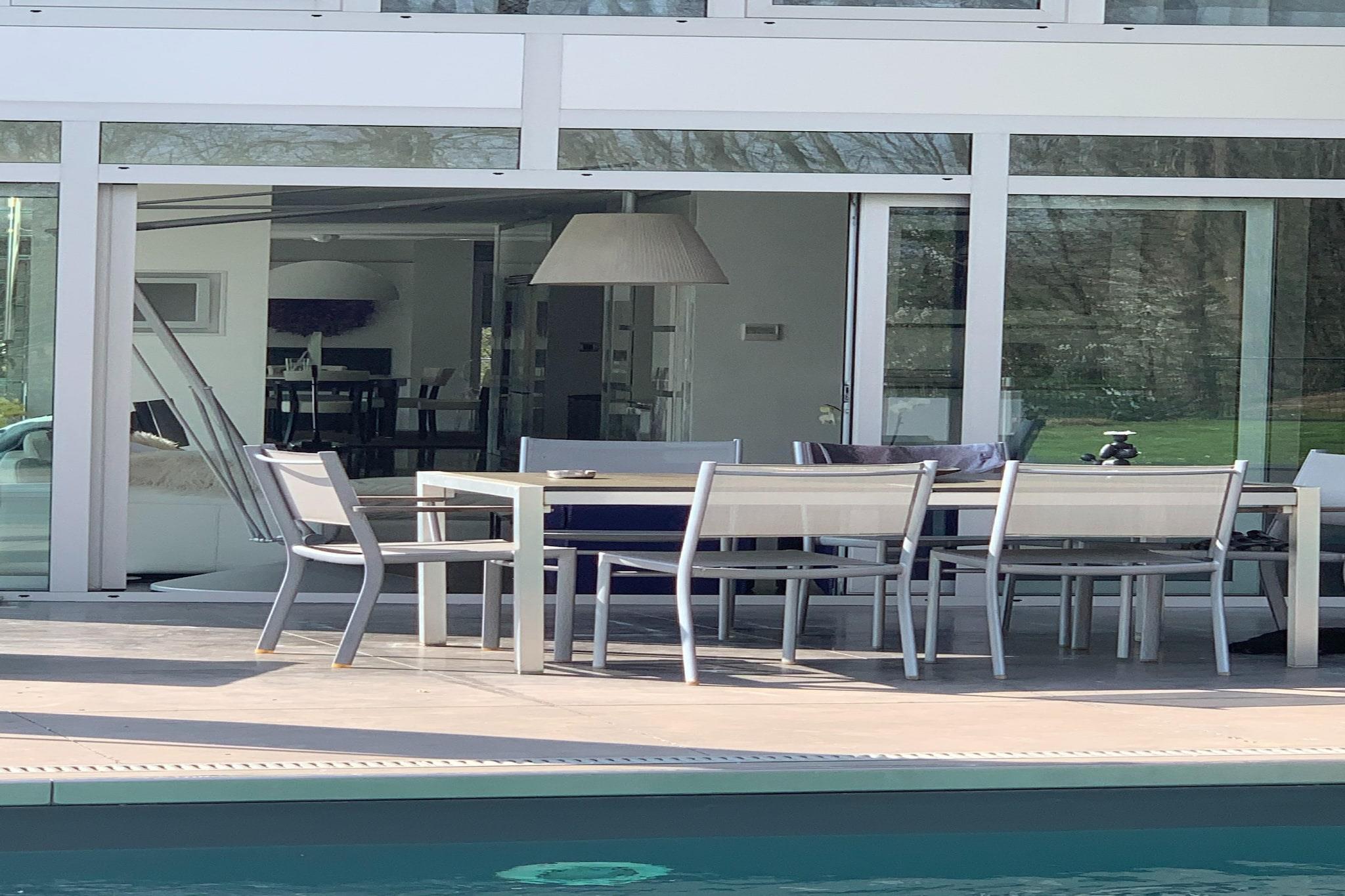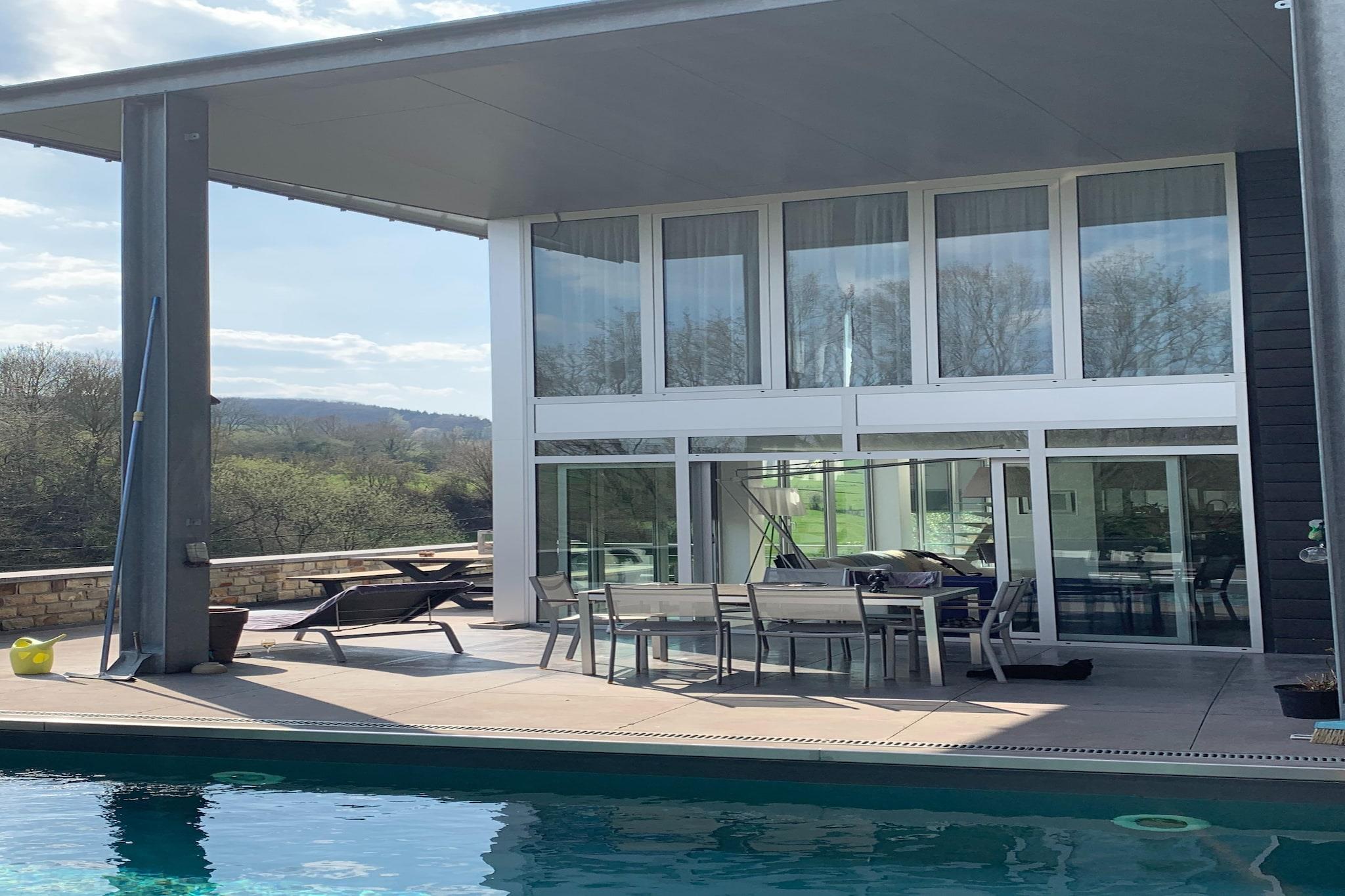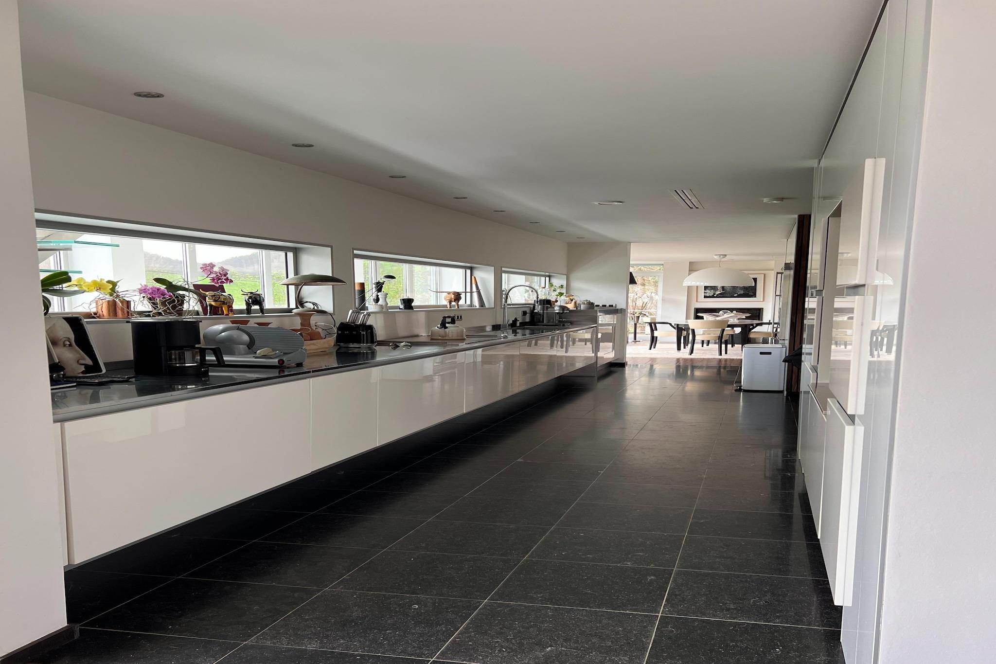 Hoch oben in den grünen Hügeln von Theux, im Herzen der belgischen Ardennen, bietet diese außergewöhnliche Villa eine raffinierte Kombination aus Luxus, Großzügigkeit und Panoramablick. Das 2007 erbaute Anwesen besticht durch seine elegante Architektur, die hellen Innenräume und die hochwertige Ausstattung und schafft so ein exklusives Ambiente für unvergessliche Aufenthalte mit Familie oder Freunden. Die Villa erstreckt sich über fast 360 m² auf zwei großzügigen Wohnebenen und wird durch einen 100 m² großen, voll ausgestatteten Freizeitbereich ergänzt. Mit edlen Materialien und einem modernen, architektonisch anspruchsvollen Stil gestaltet, legt sie größten Wert auf Komfort und Privatsphäre. Drei elegante Schlafzimmer verfügen jeweils über ein eigenes Badezimmer, darunter eine Master-Suite mit Ankleidezimmer. Ein zusätzliches Duschbad im Erdgeschoss, vier WCs, Fußbodenheizung und Klimaanlage sorgen für ganzjährigen Komfort. Die Wohnräume sind großzügig und einladend. Eine voll ausgestattete Küche mit integrierten Geräten ist ideal für gemeinsame Mahlzeiten, während mehrere harmonische Bereiche zum Entspannen einladen, darunter ein lichtdurchflutetes Wohn- und Esszimmer, eine gemütliche Leseecke und eine zweite TV-Lounge mit Blick auf den Pool. Eine elegante Glastreppe verbindet die Ebenen auf stilvolle Weise. Im Erdgeschoss befindet sich ein außergewöhnliches Spielzimmer mit Billardtisch, Tischfußball, einer Jukebox im Vintage-Stil, Retro-Elementen und einer Lounge im Chesterfield-Stil – Unterhaltung für Jung und Alt. Auch im Außenbereich beeindruckt die Villa mit einem beheizten Swimmingpool, einem Whirlpool, einem Holzkohlegrill und weitläufigen Terrassen, darunter eine zweite Terrasse, die sich perfekt für Sonnenuntergänge eignet. Besonders in der Nebensaison und während großer regionaler Veranstaltungen in der Nähe von Spa-Francorchamps ist diese Villa sehr begehrt und ein seltenes und elegantes Refugium – eine zeitlose Oase in einer der schönsten Gegenden der Ardennen.